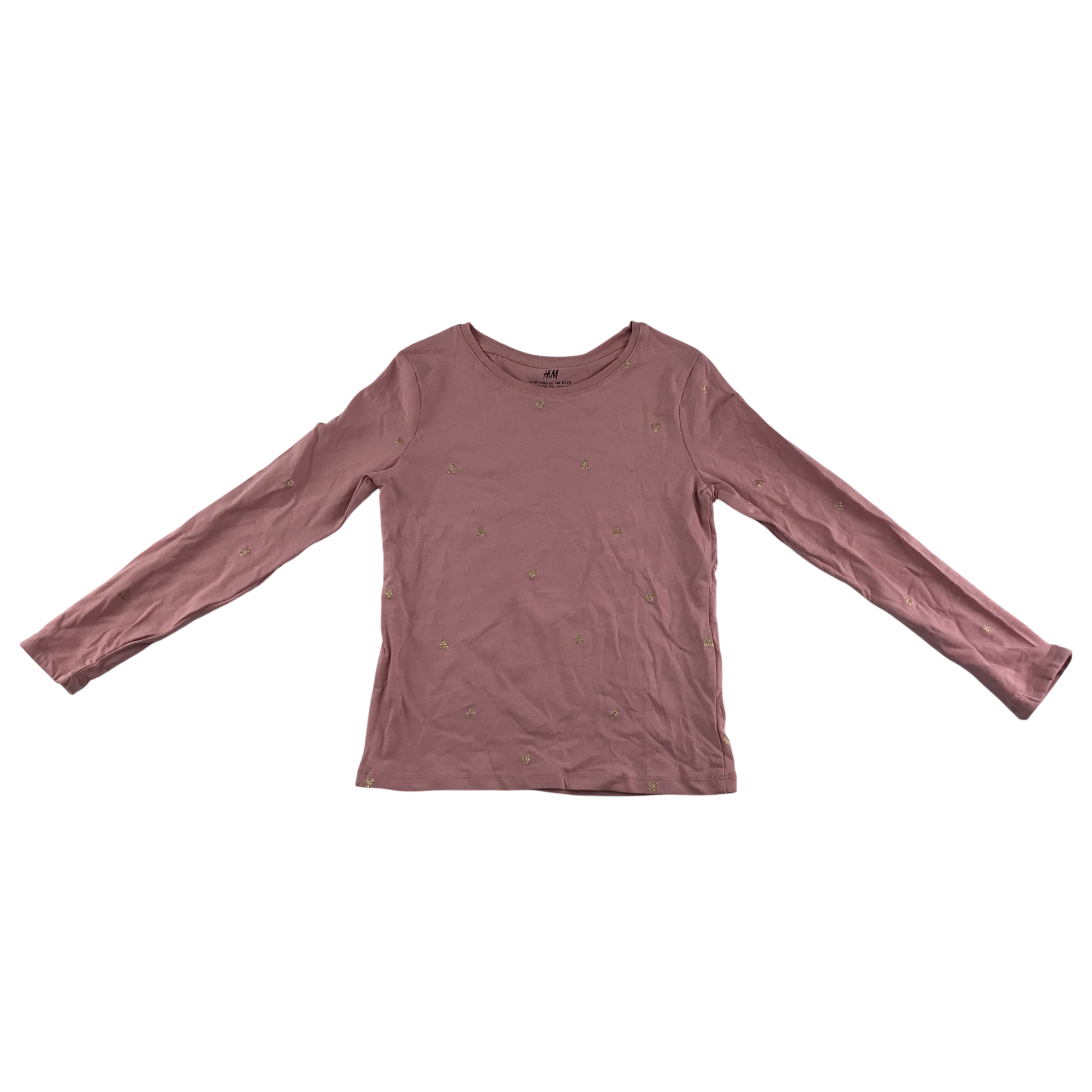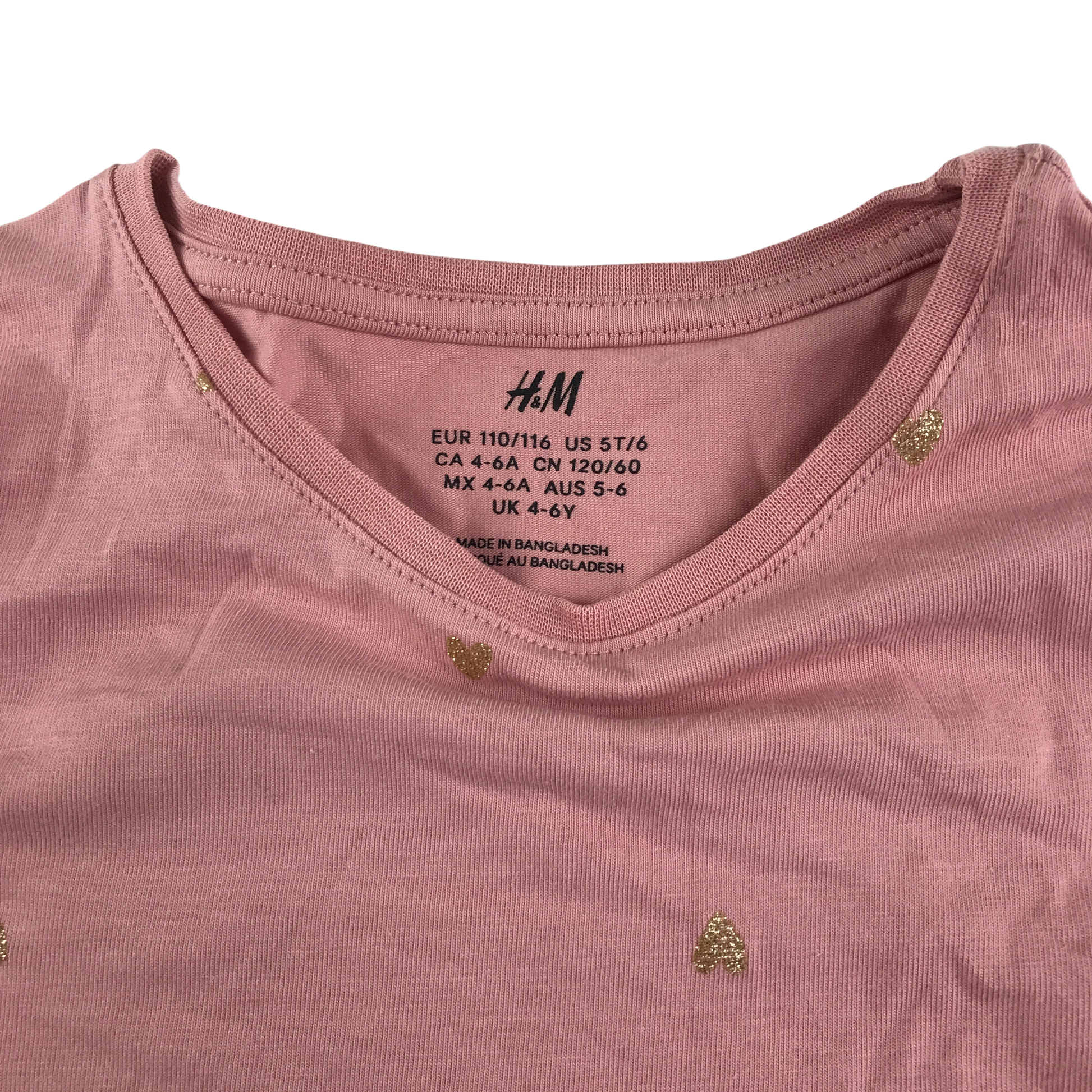 H&M T-Shirt 5-6 Years Pink with Gold Heart Print Long Sleeve Cotton