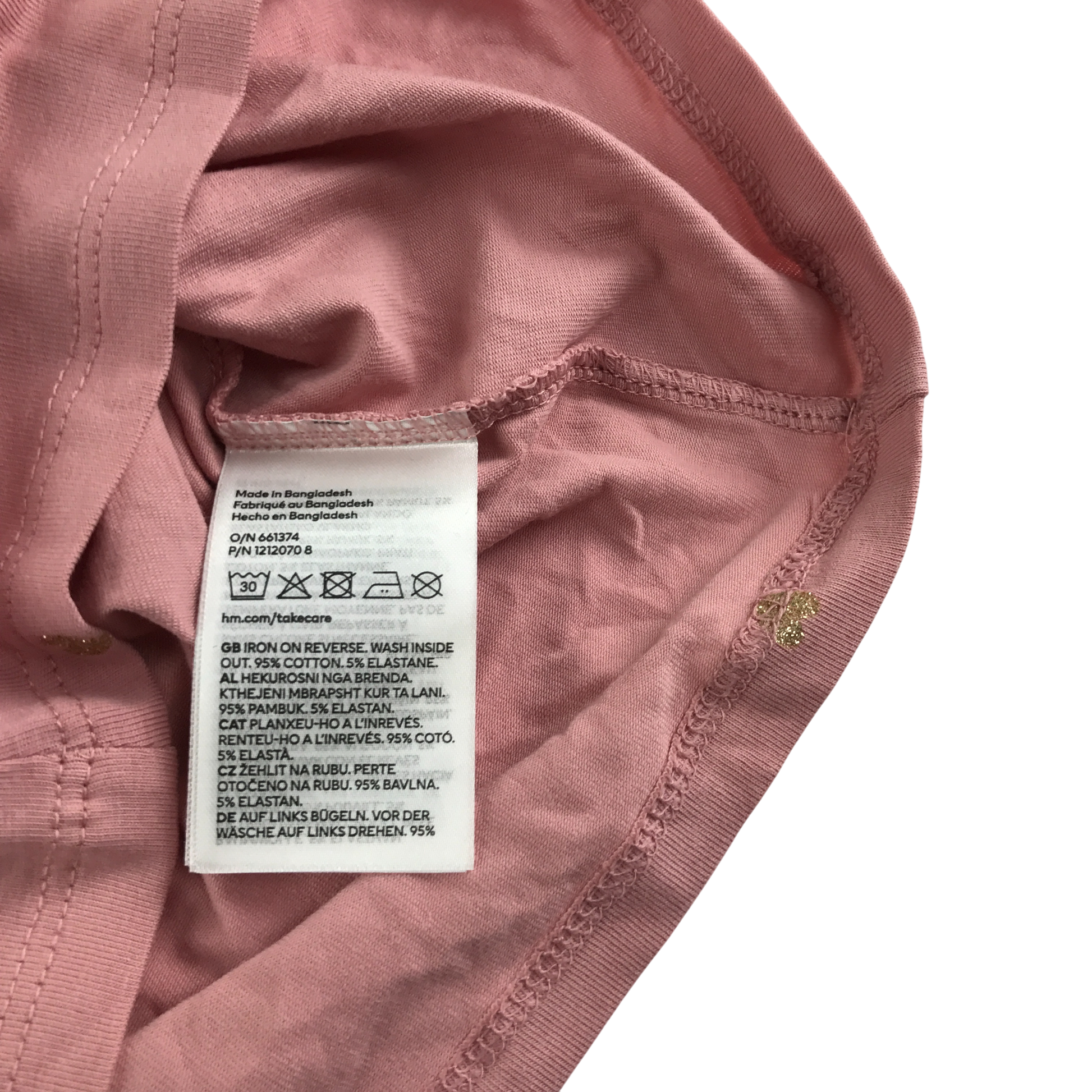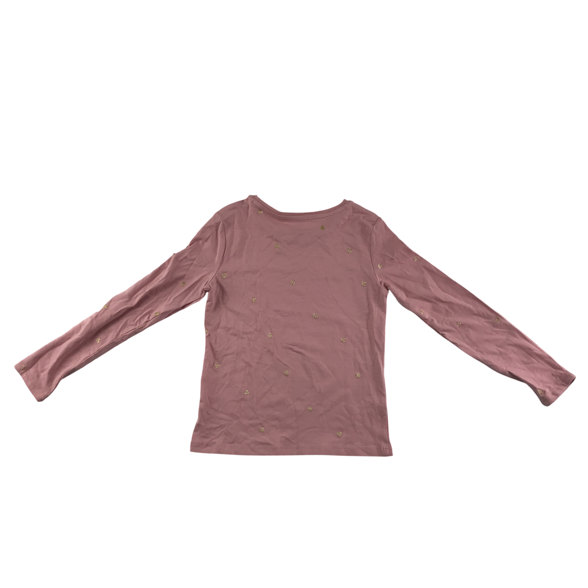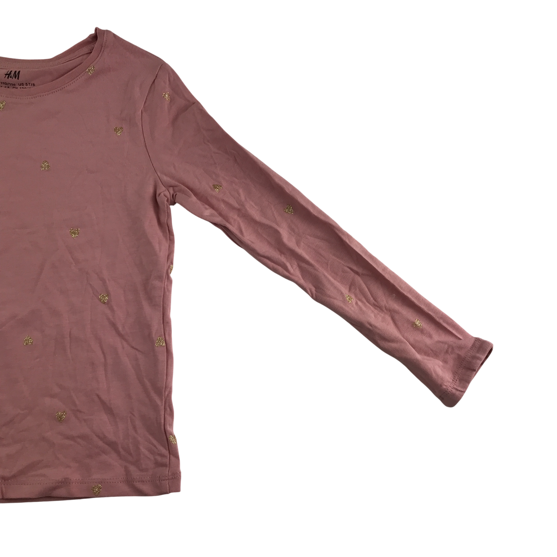 Preloved second hand H&M T-Shirt 5-6 Years Pink with Gold Heart Print Long Sleeve Cotton