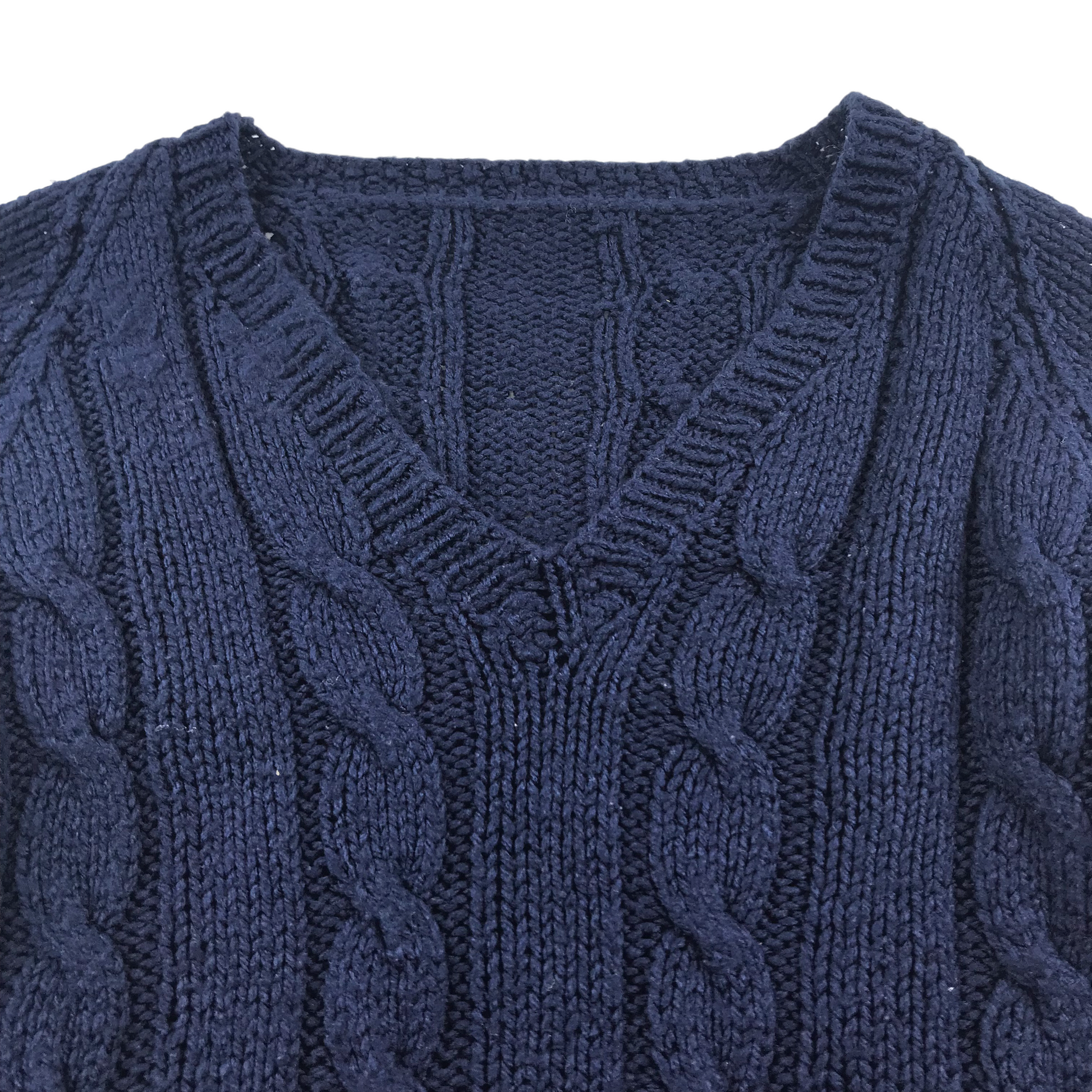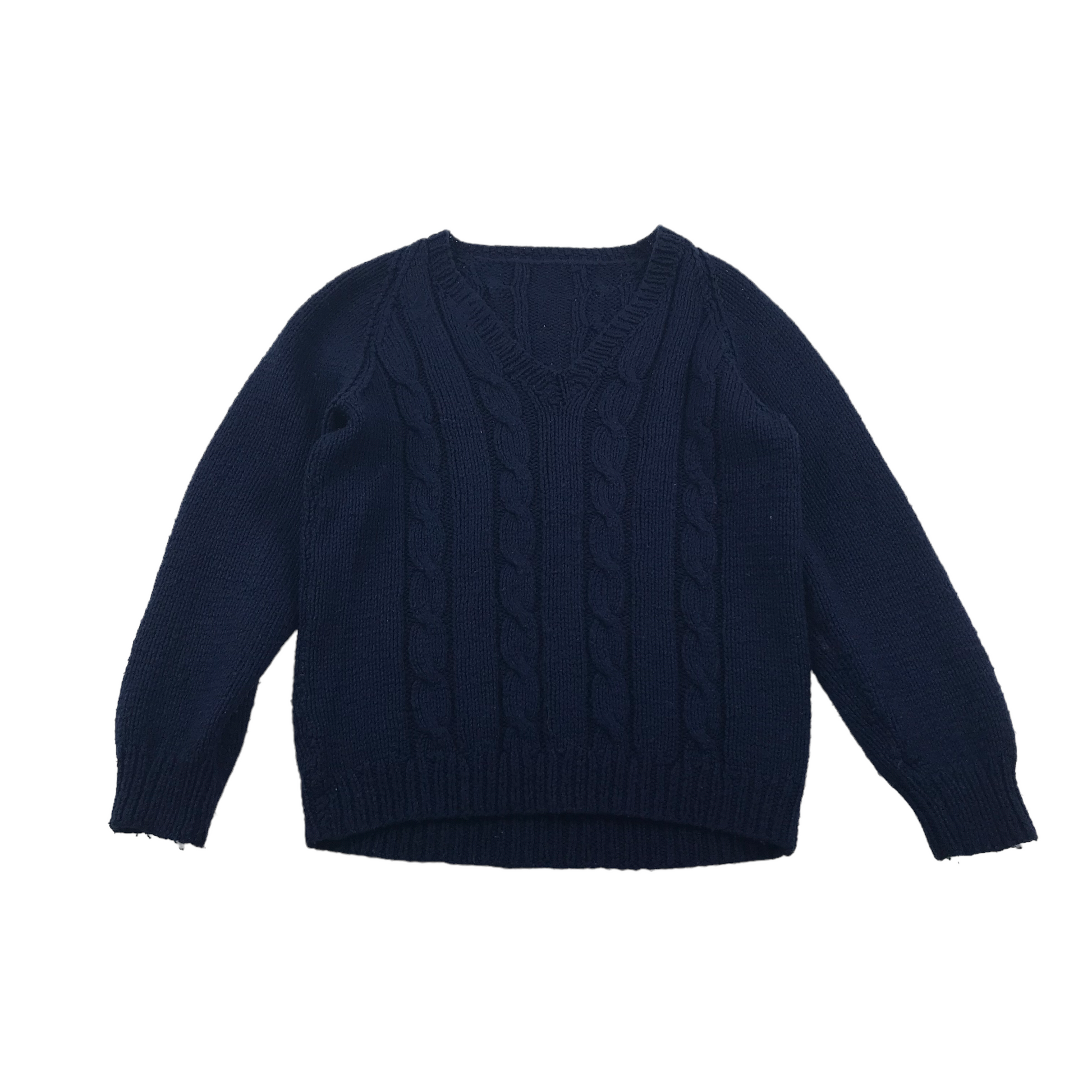 Hand Knitted Navy Blue V-neck Jumper Age 7-8