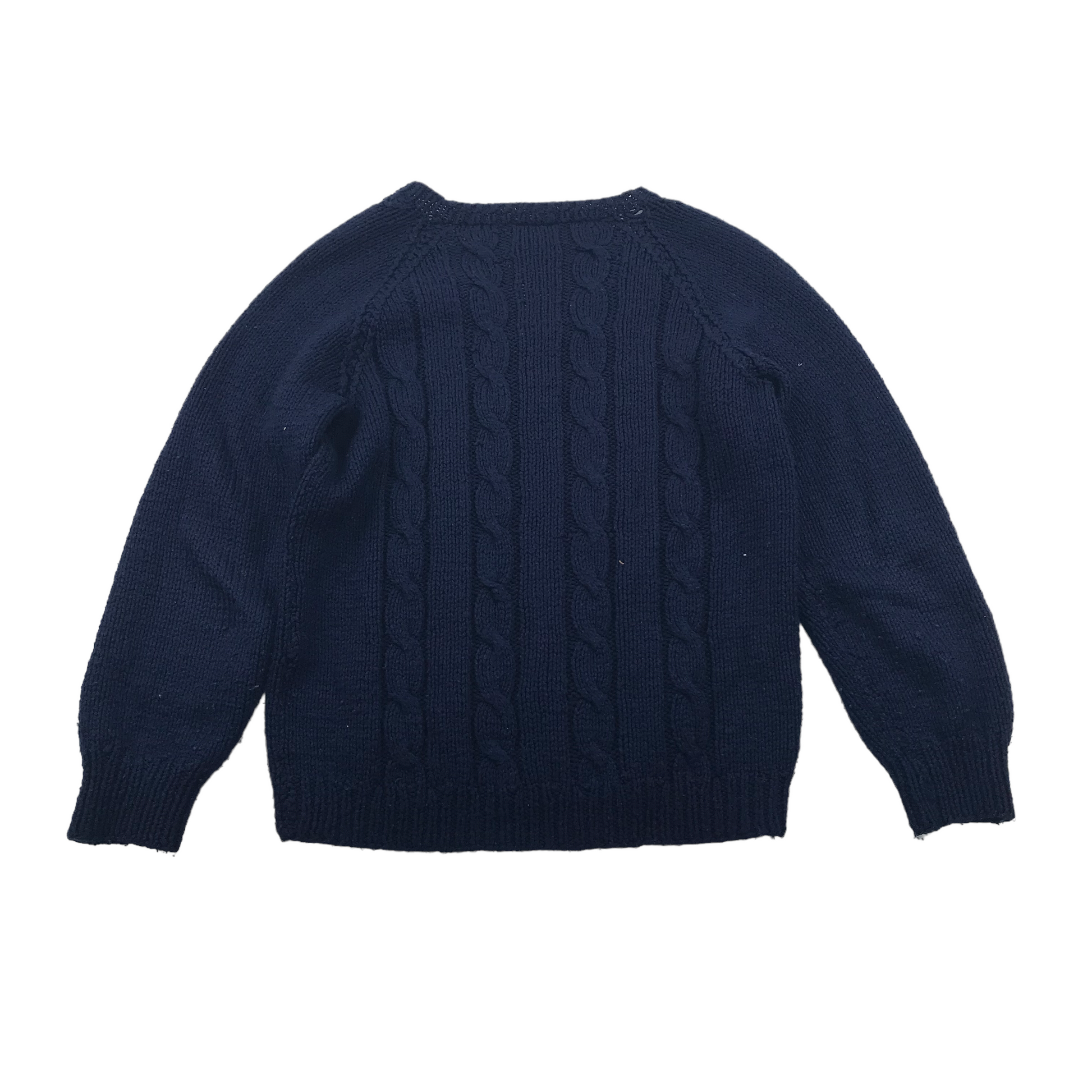 Preloved second hand Hand Knitted Navy Blue V-neck Jumper Age 7-8