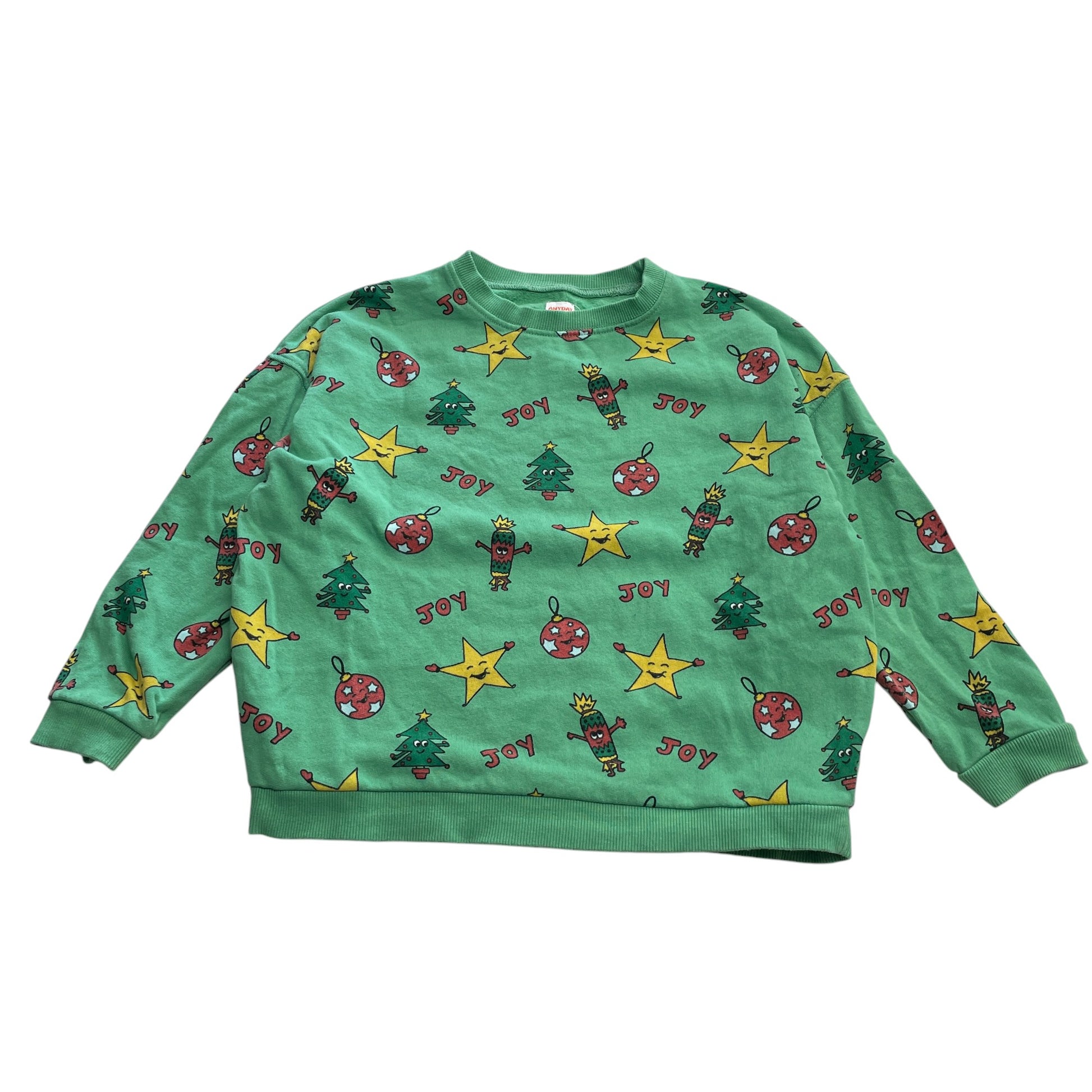Preloved second hand John Lewis festive sweater 6-7 years green fun Christmas printed jersey