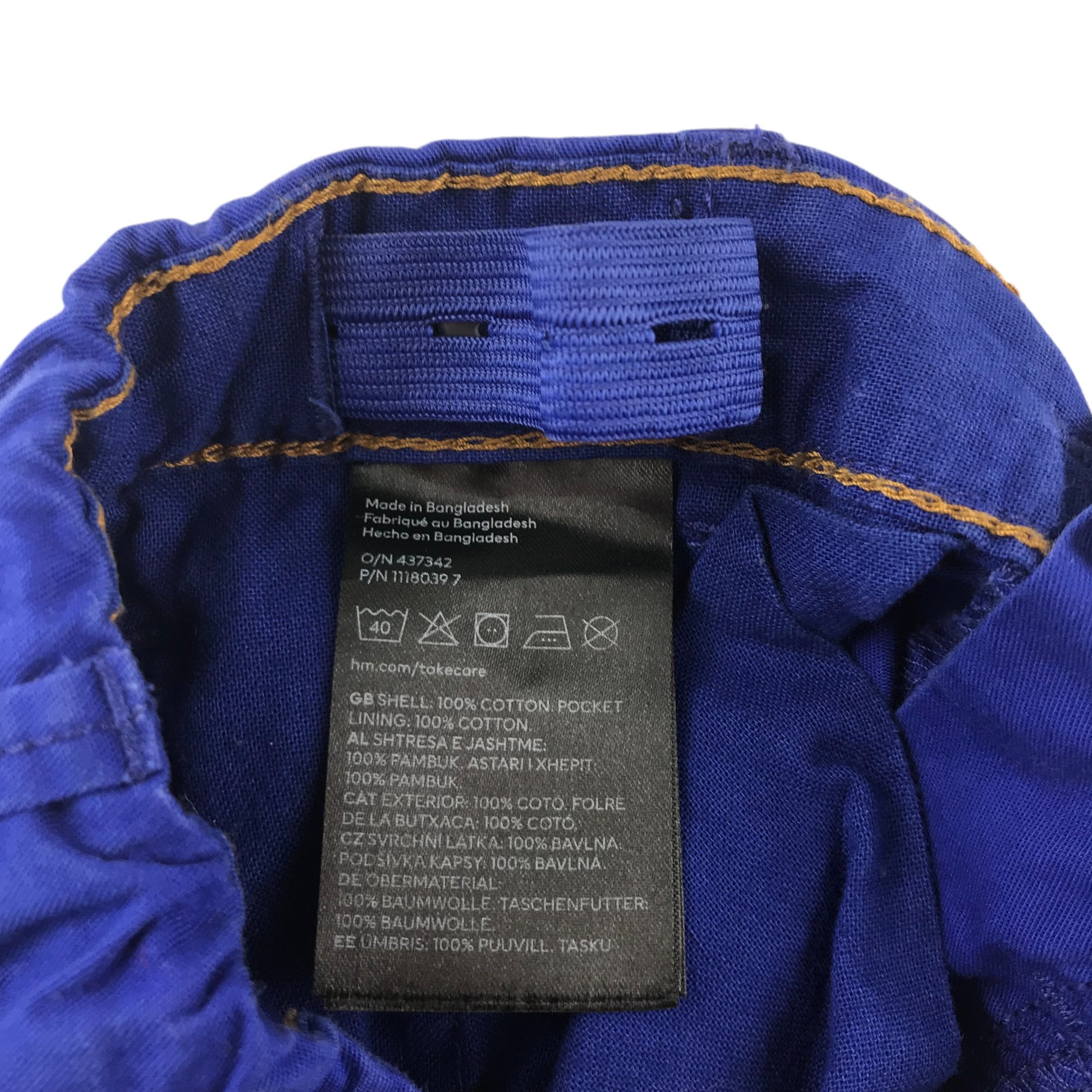 Preloved second hand H&M trouser 5-6 years blue plain adjustable waist cotton