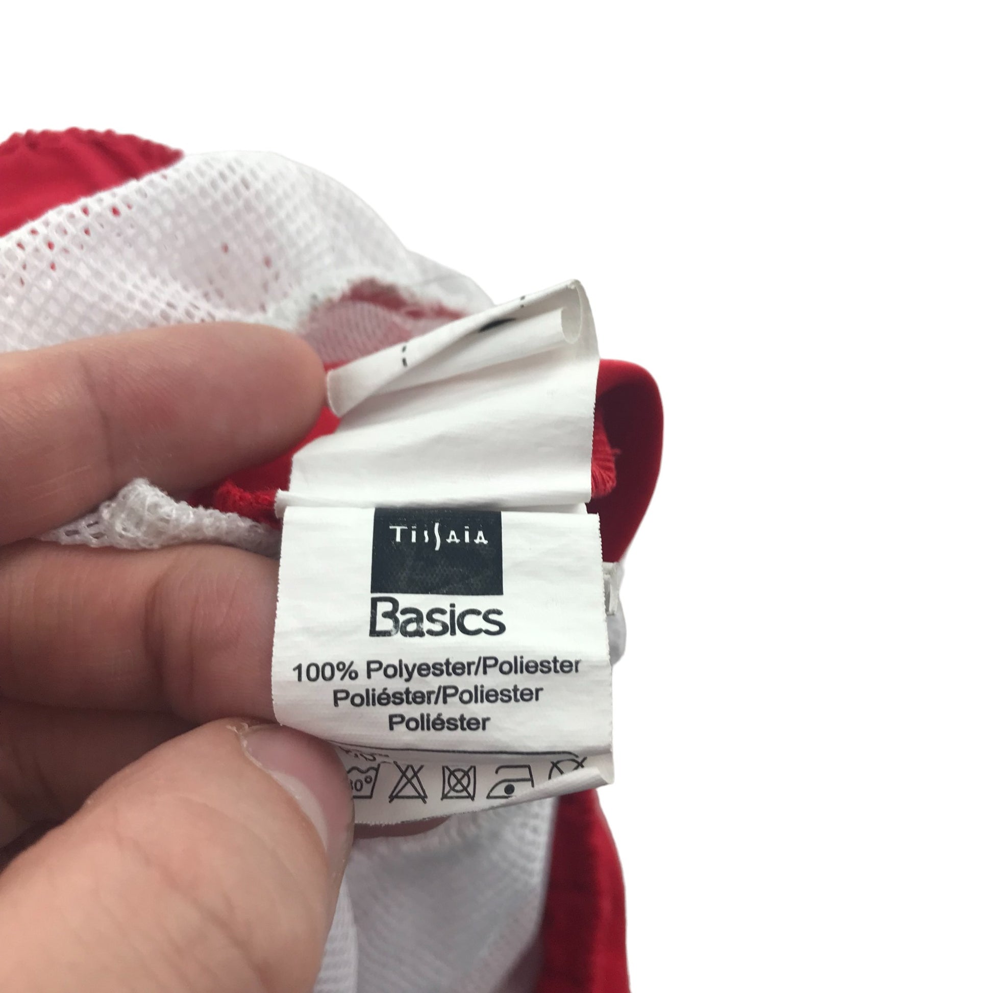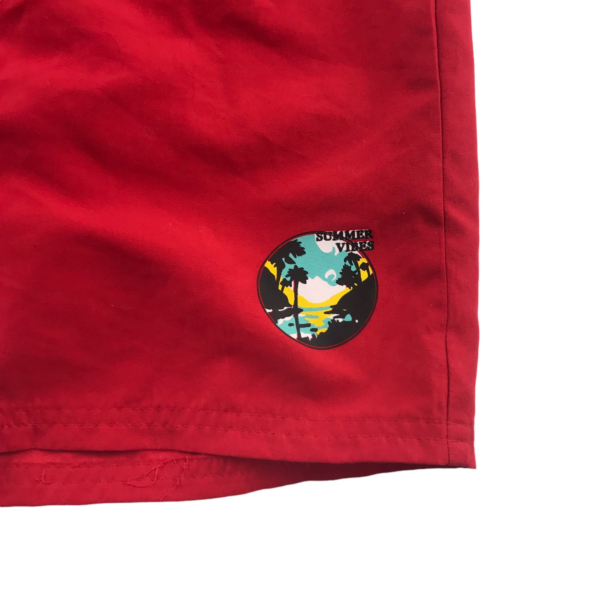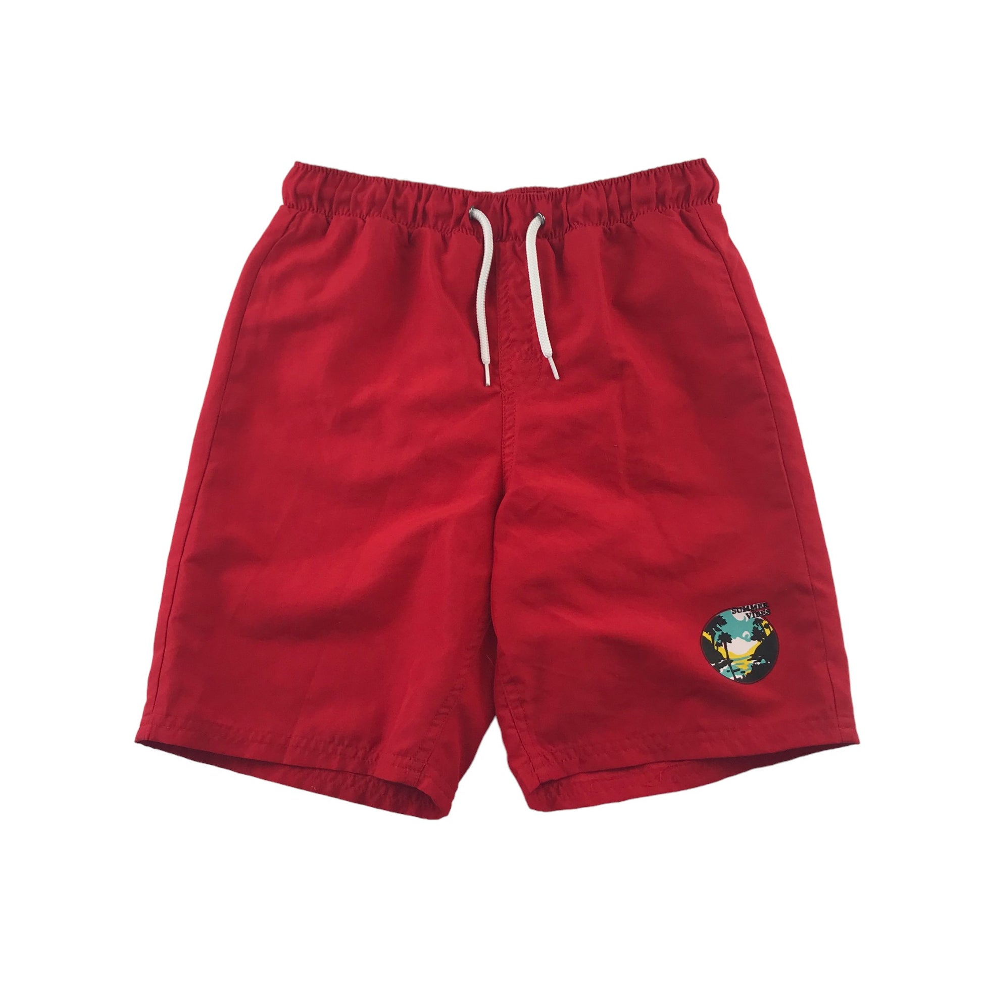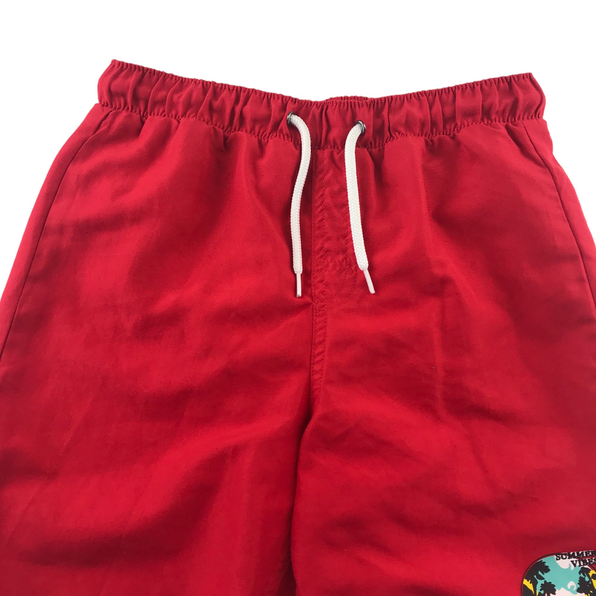 Preloved second hand Tissaia swim trunks 10 years red plain with small circle graphic