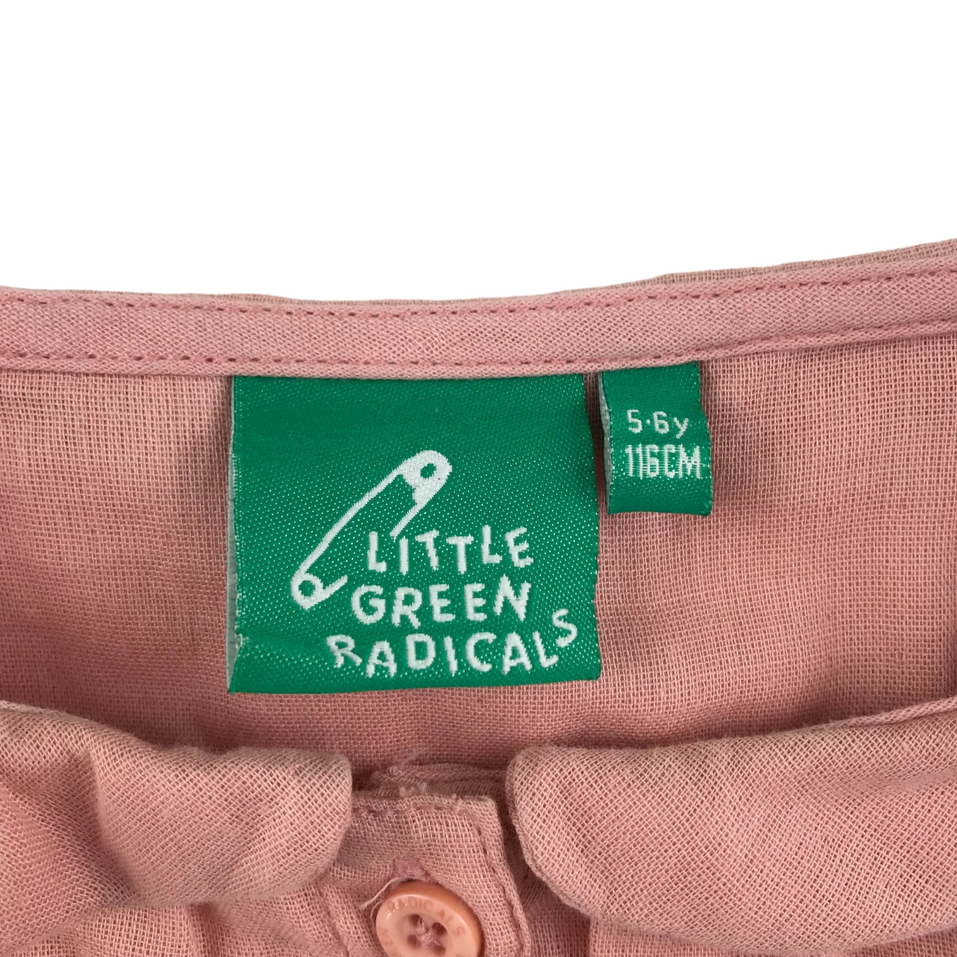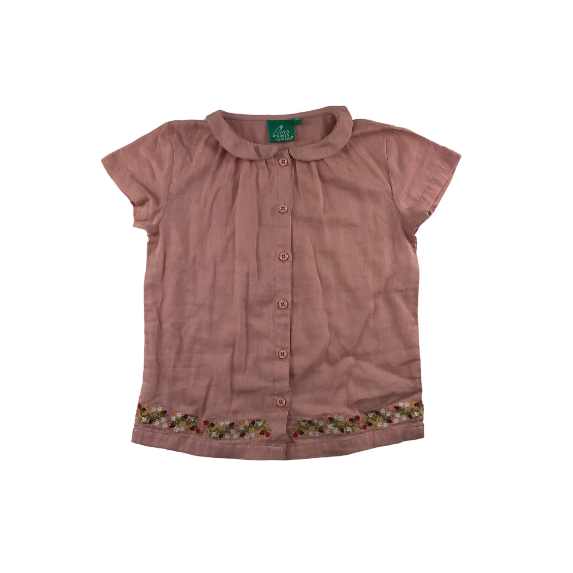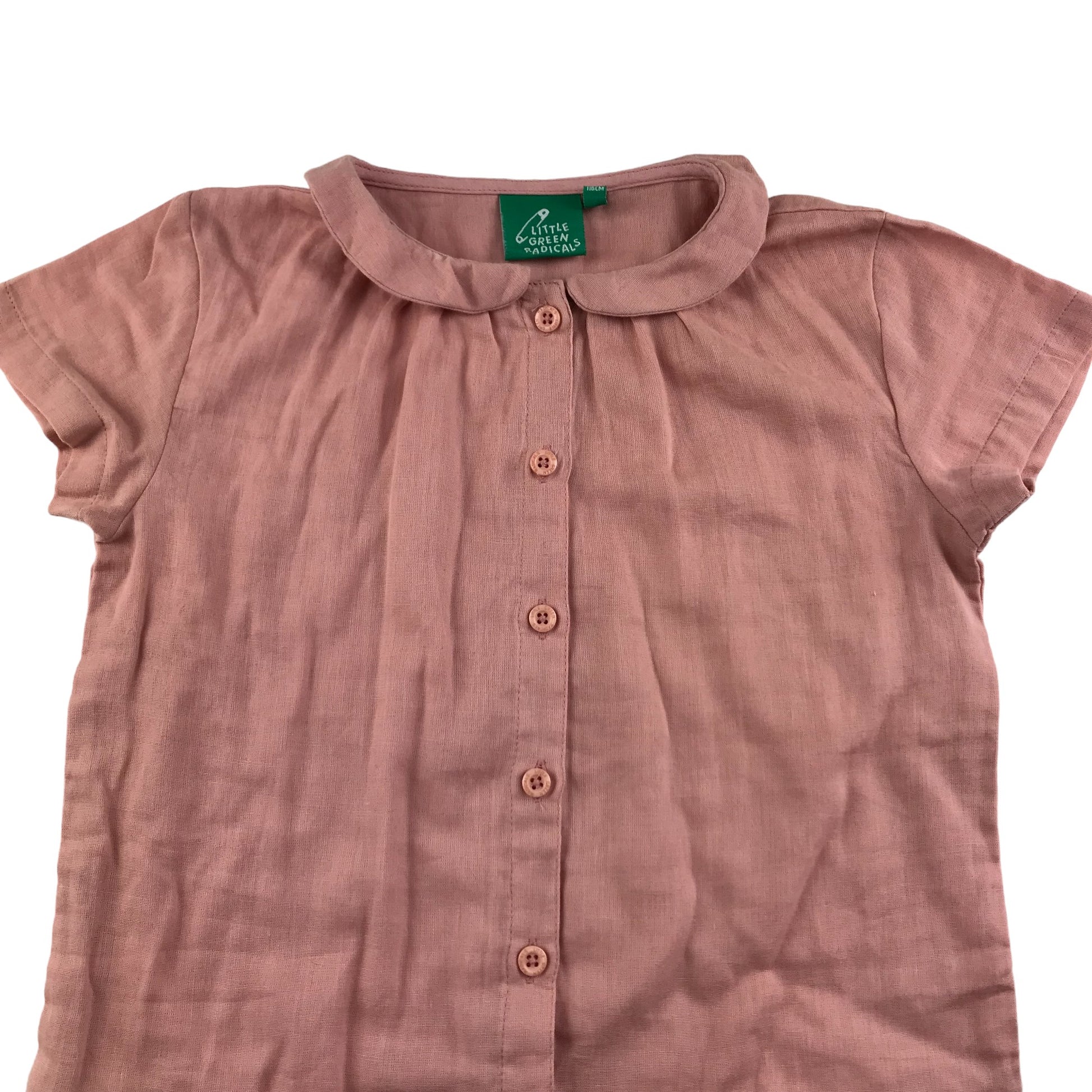 Preloved second hand Little Green Radicals Blouse Age 5 Vintage Pink Short Sleeve Button Up Cotton