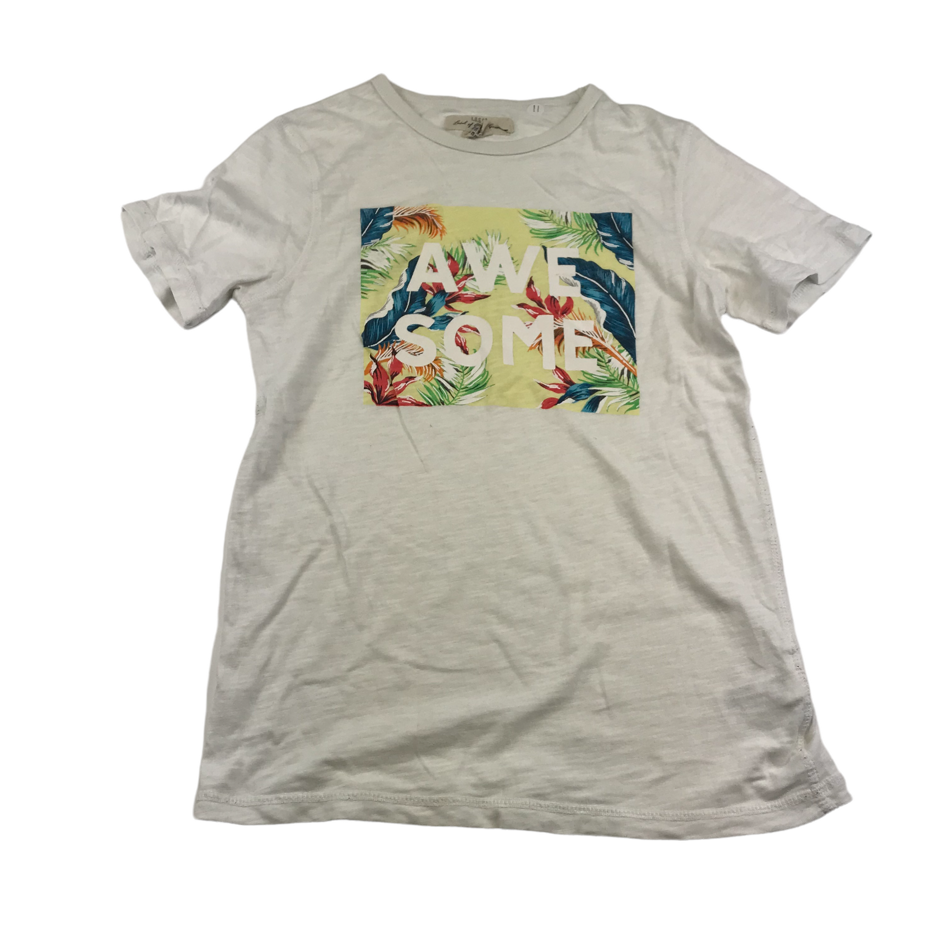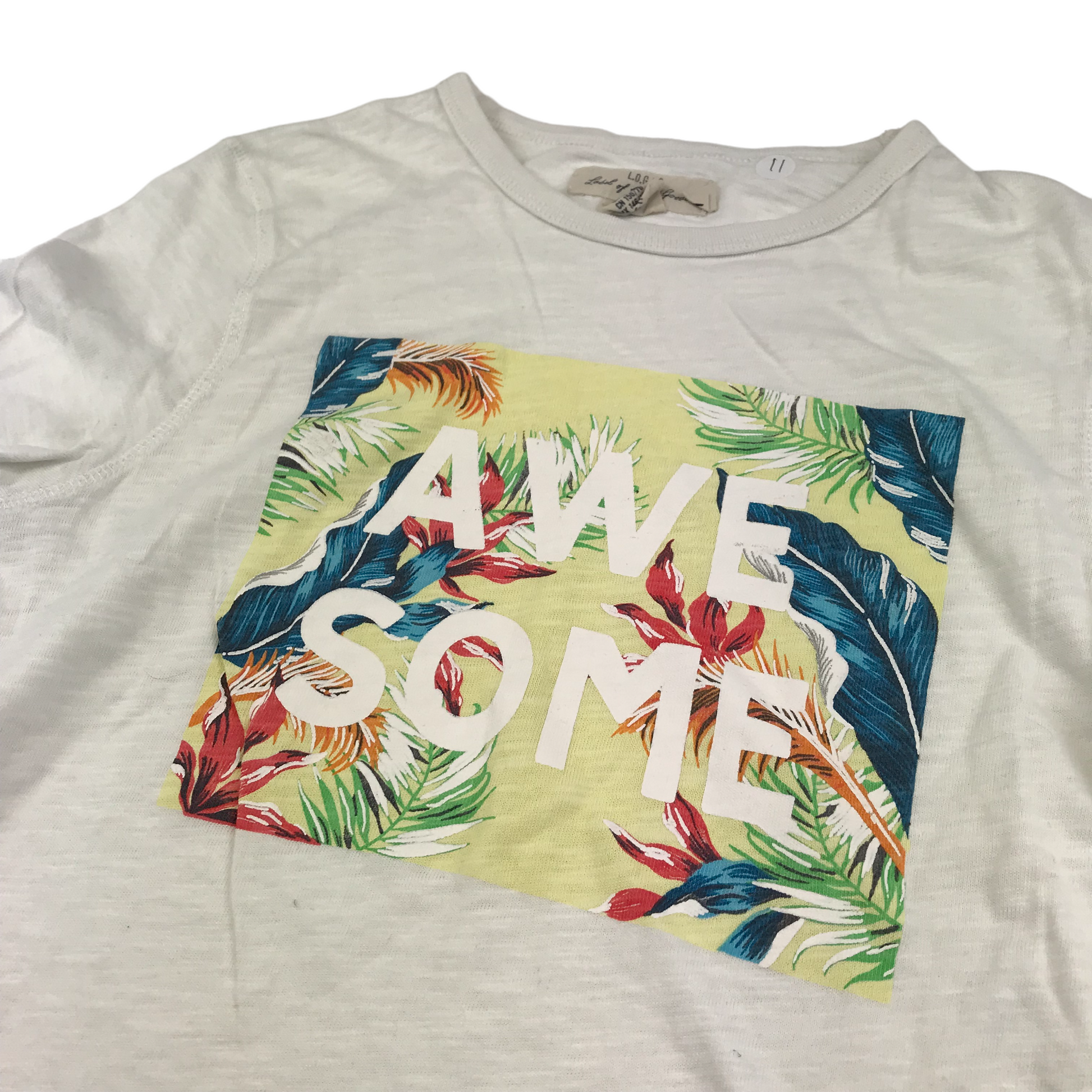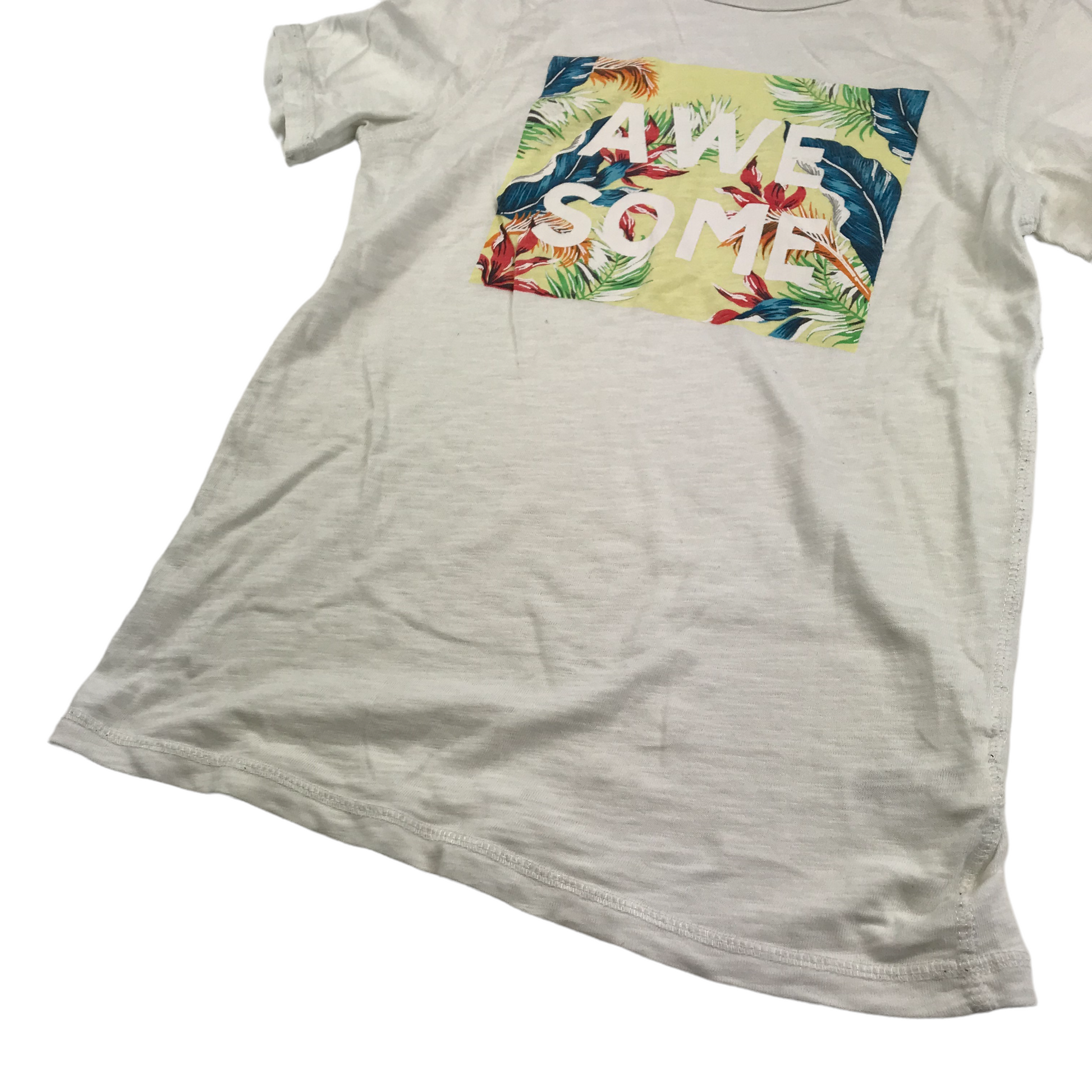 Preloved second hand H&M White Awesome Floral Graphic T-shirt Age 11