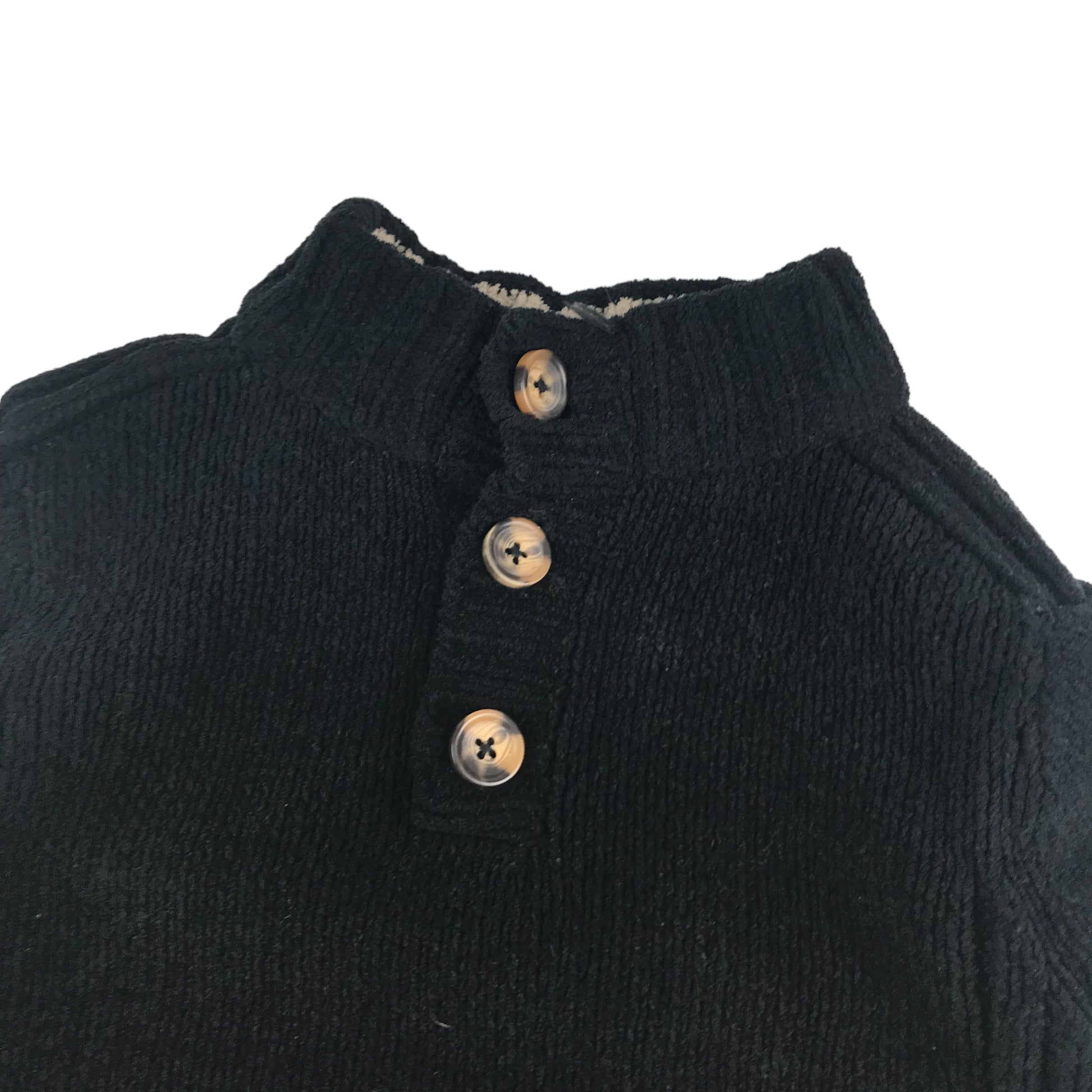 - Description: High collar knitted jumper with button up collar, fleece like knitted polyester