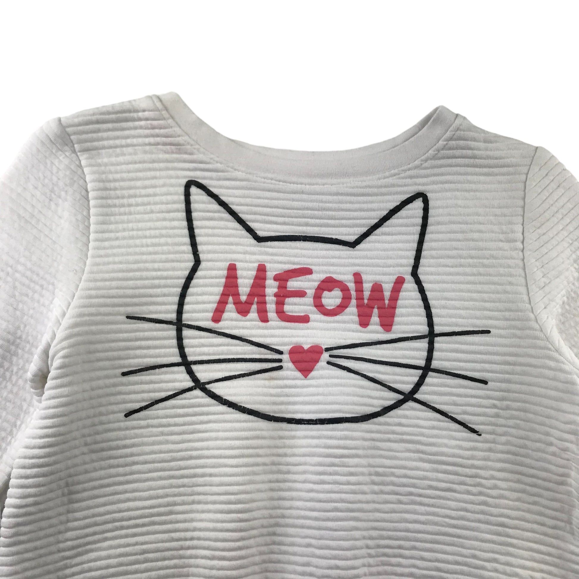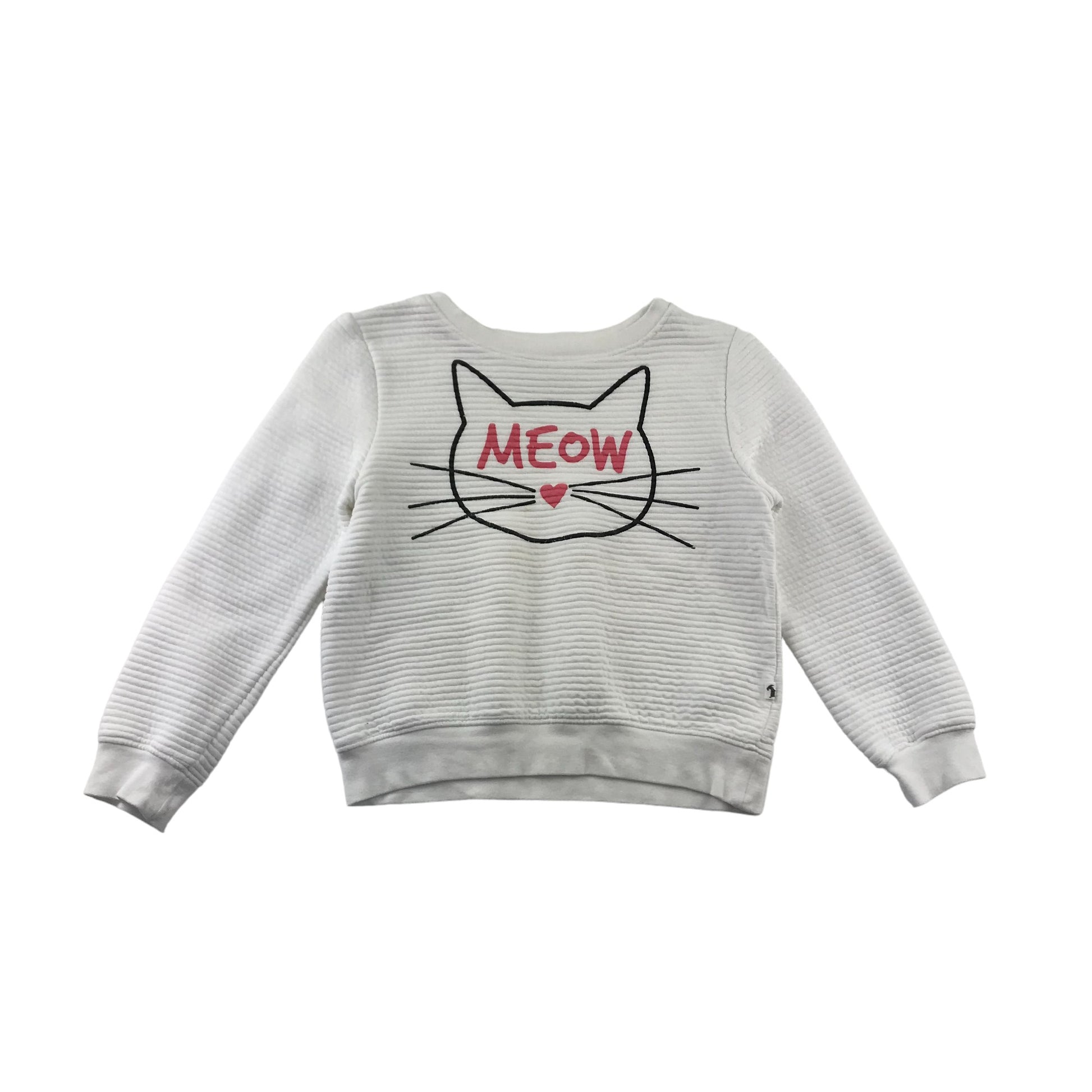 M&Co Sweater Age 5 White Cat Meow Face Stripy Texture Cotton
