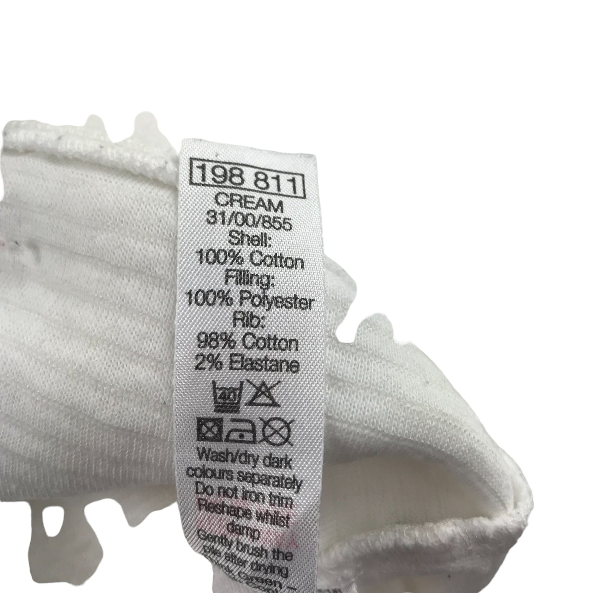 - Materials: shell 100% cotton, filling 100% polyester, rib 98% cotton, 2% elastane