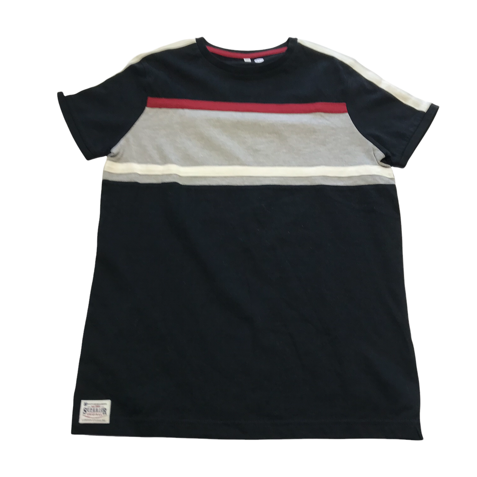 Preloved second hand M&S Black Grey Stripe T-shirt Age 11