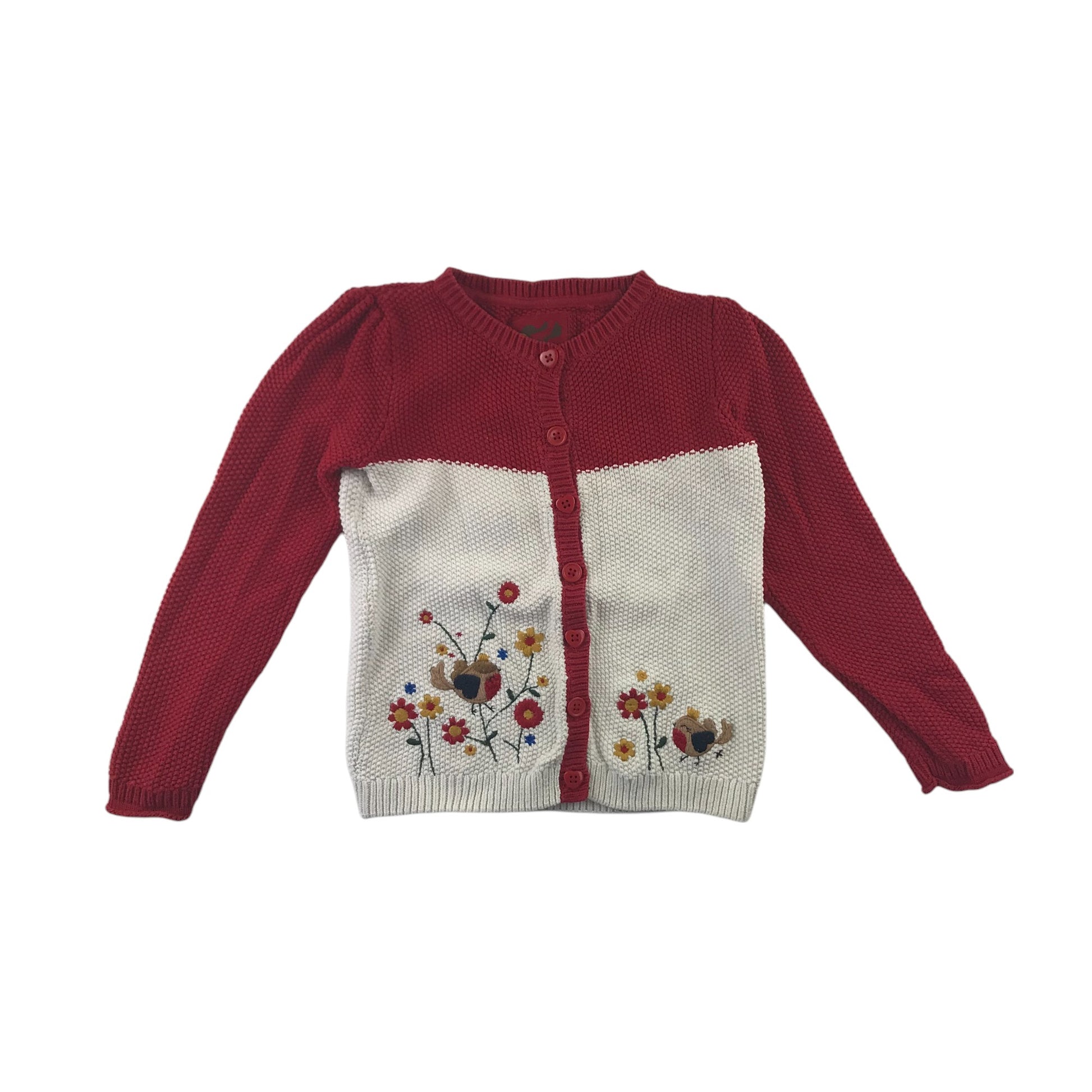 Preloved second-hand Tu cardigan 4-5 years red and white floral embroidered cotton