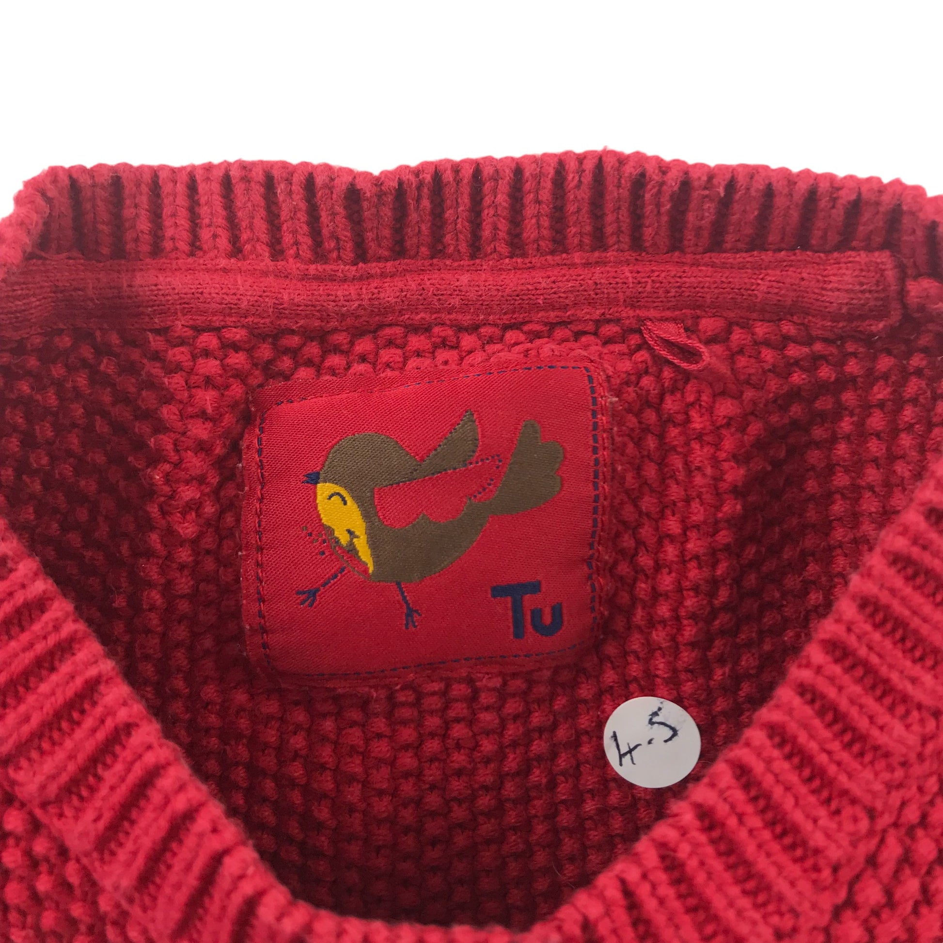 Tu cardigan 4-5 years red and white floral embroidered cotton