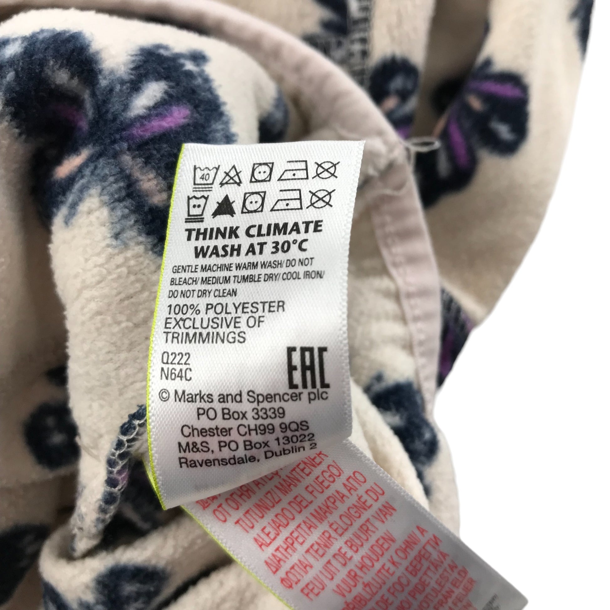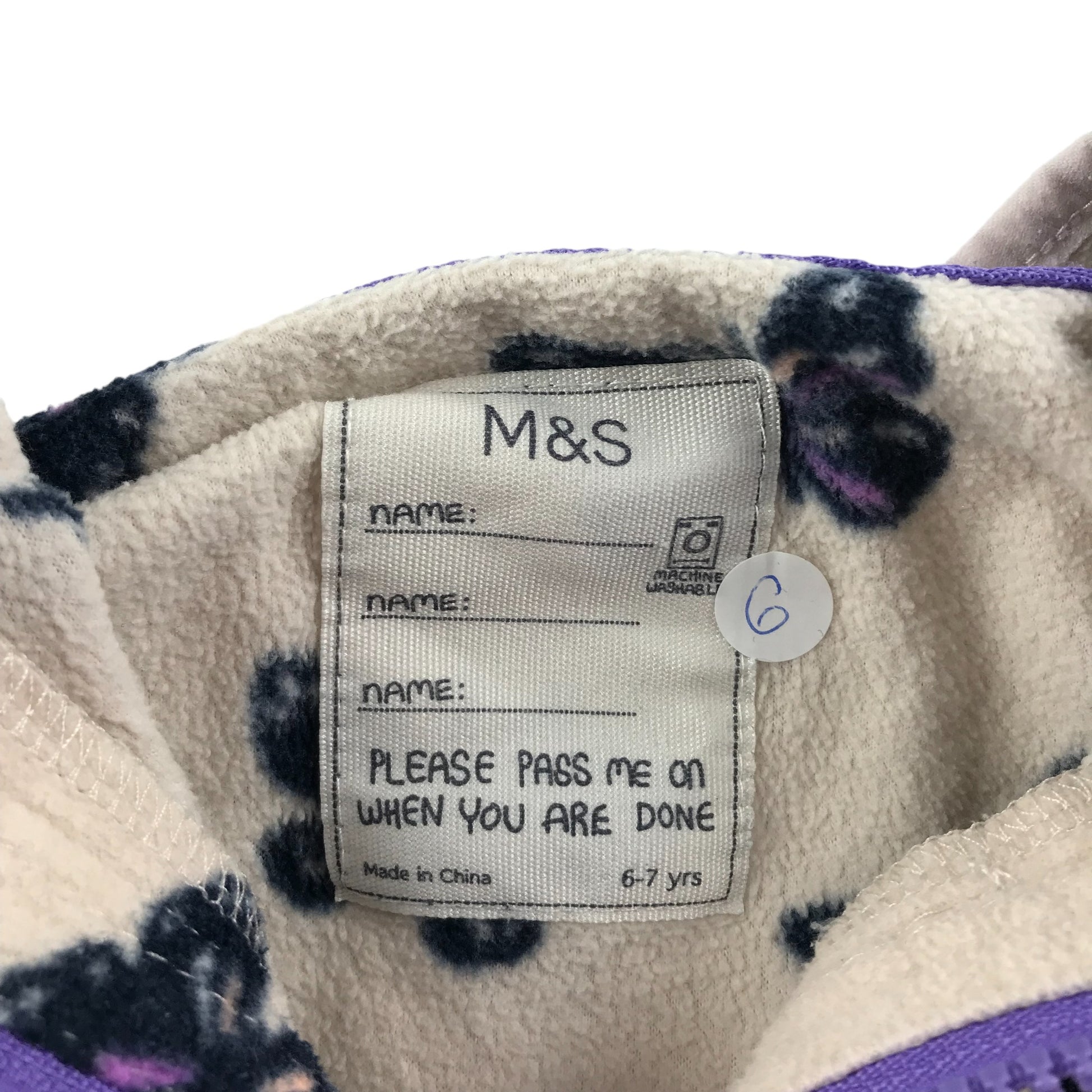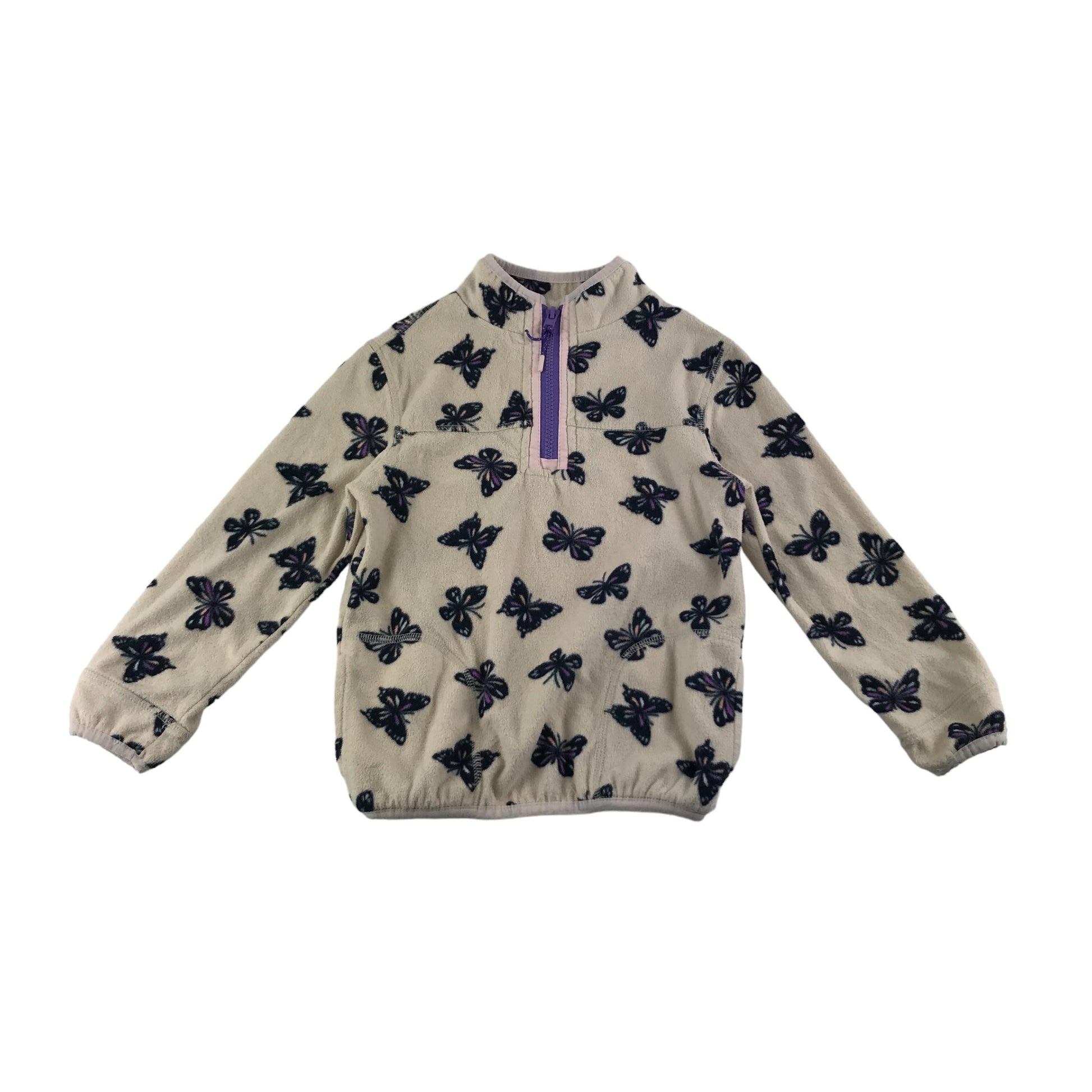Preloved second-hand M&S Fleece Age 6 Light Cream White Purple Butterfly Print Pattern