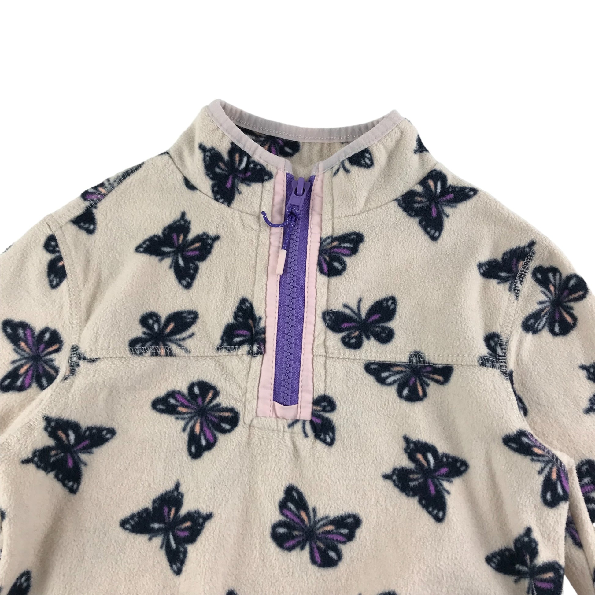 - Description: Long sleeve fleece with half zipper and butterfly print pattern