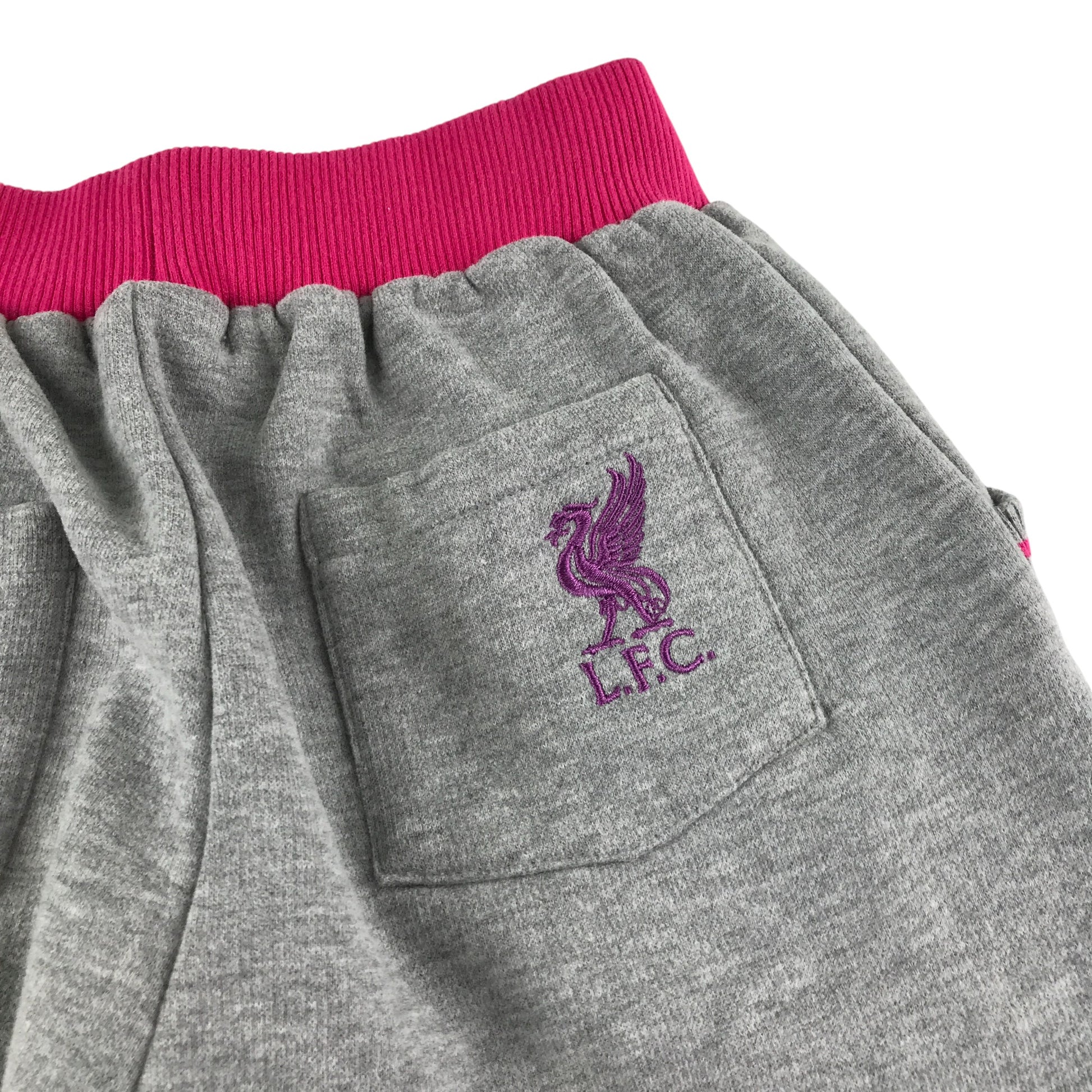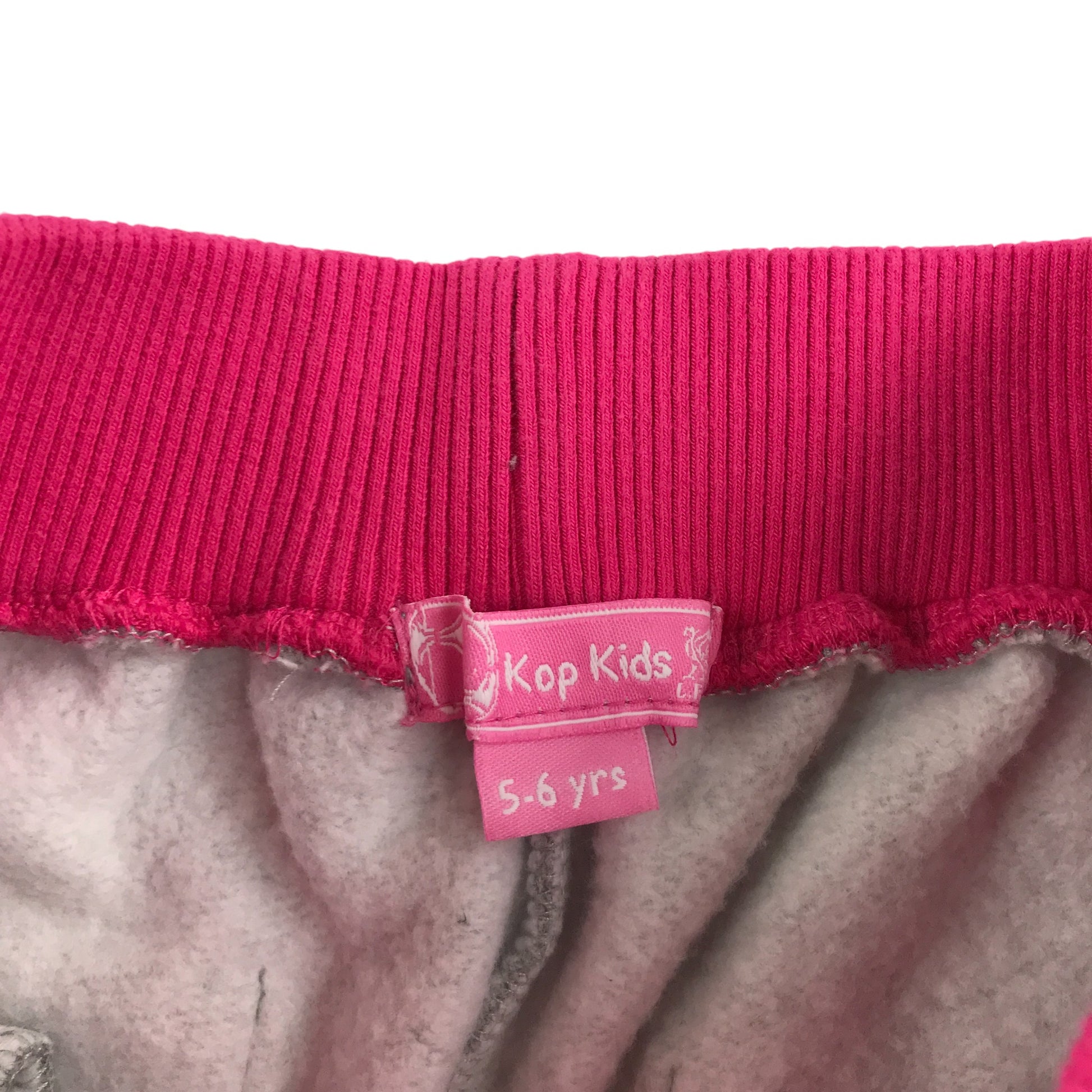 Kop Kids joggers 5-6 years light grey with pink waist band and purple logo Liverpool FC