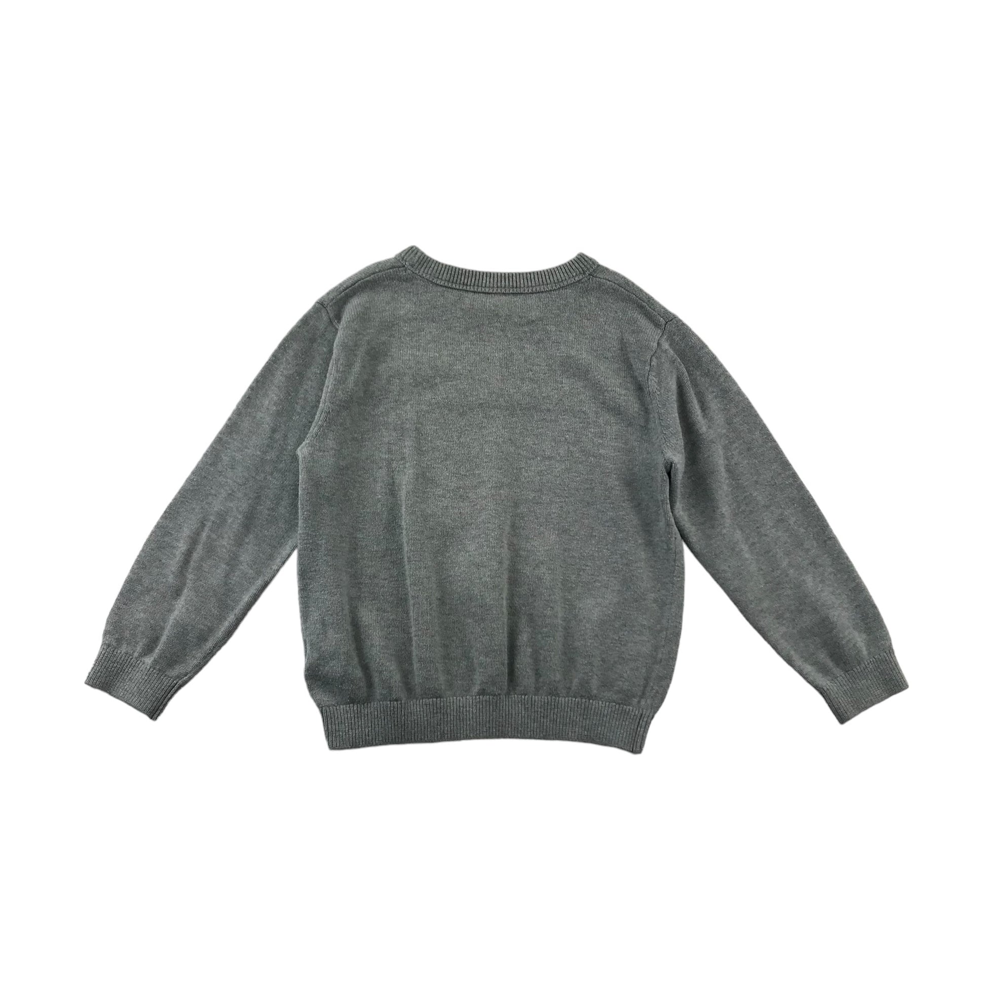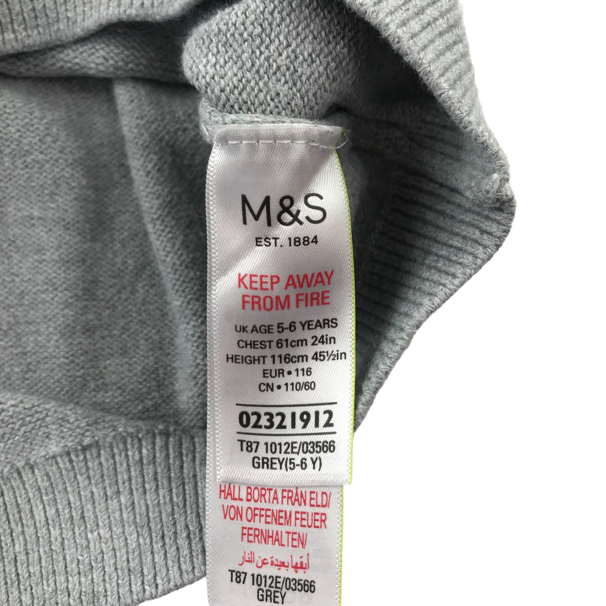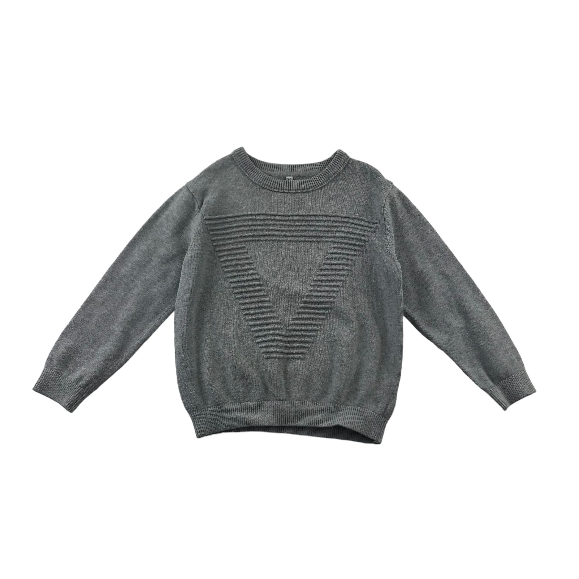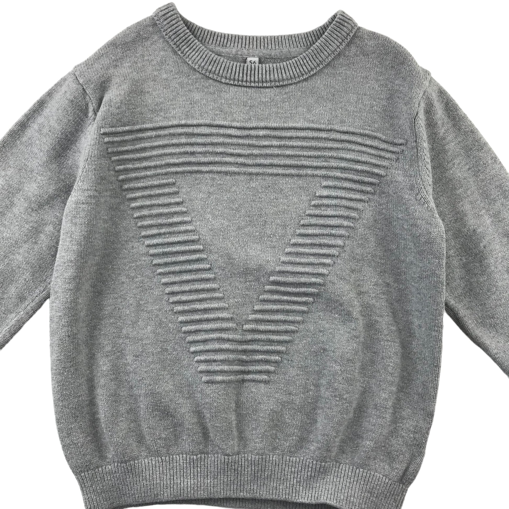 M&S Jumper Age 5 Grey Plain Stripy Triangle Cotton