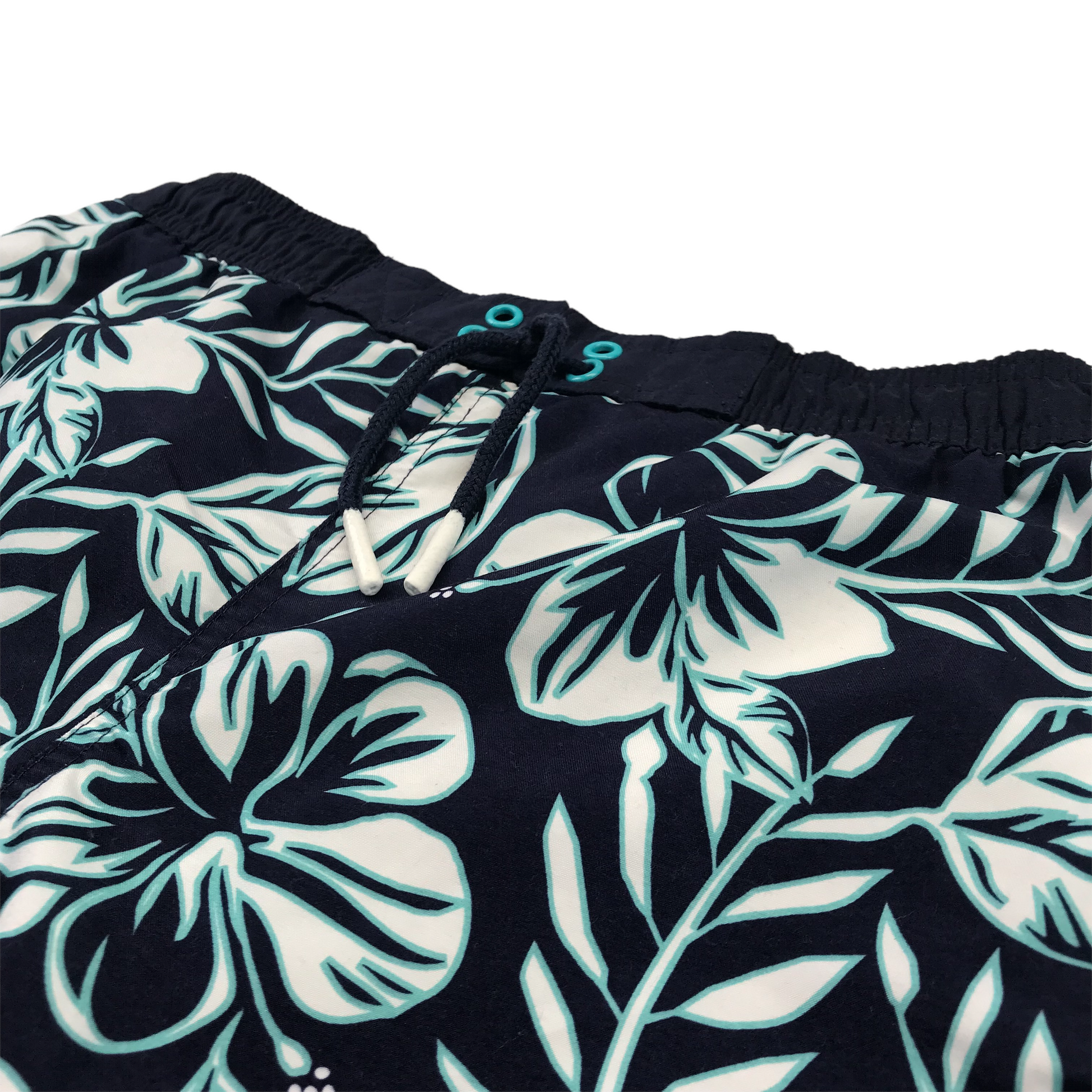 M&S Navy Blue and White Floral Swim Trunks Age 11