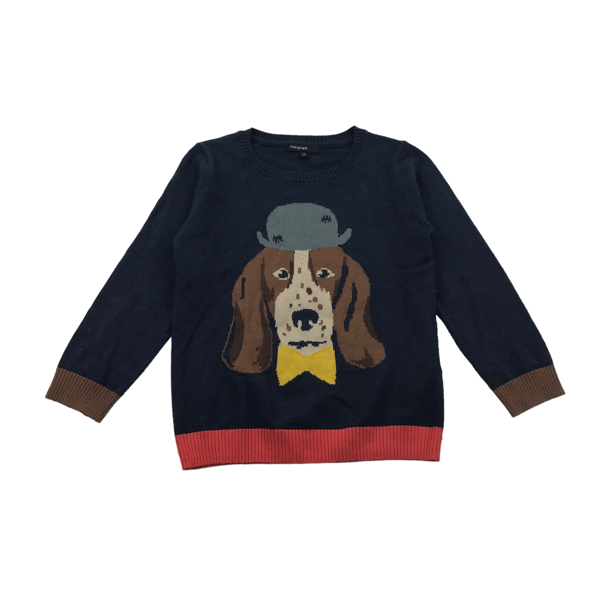M&S Navy Blue Dog with a Bowler Hat Jumper Age 5