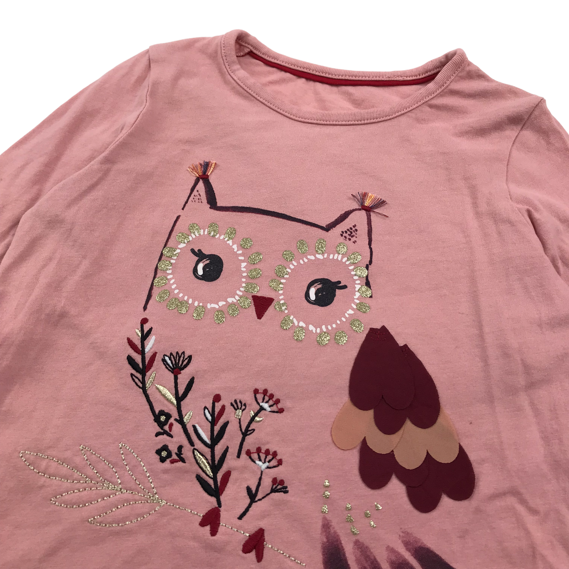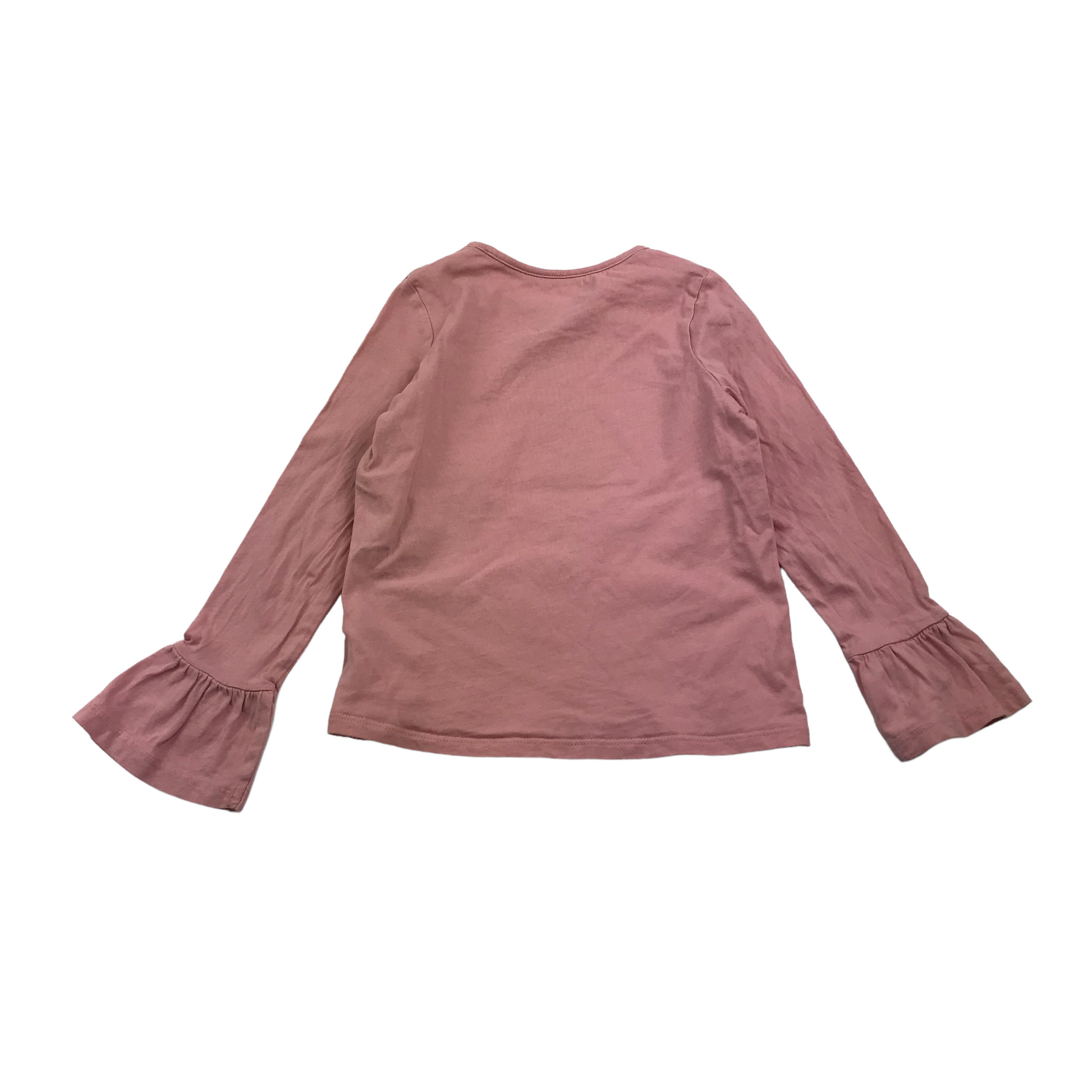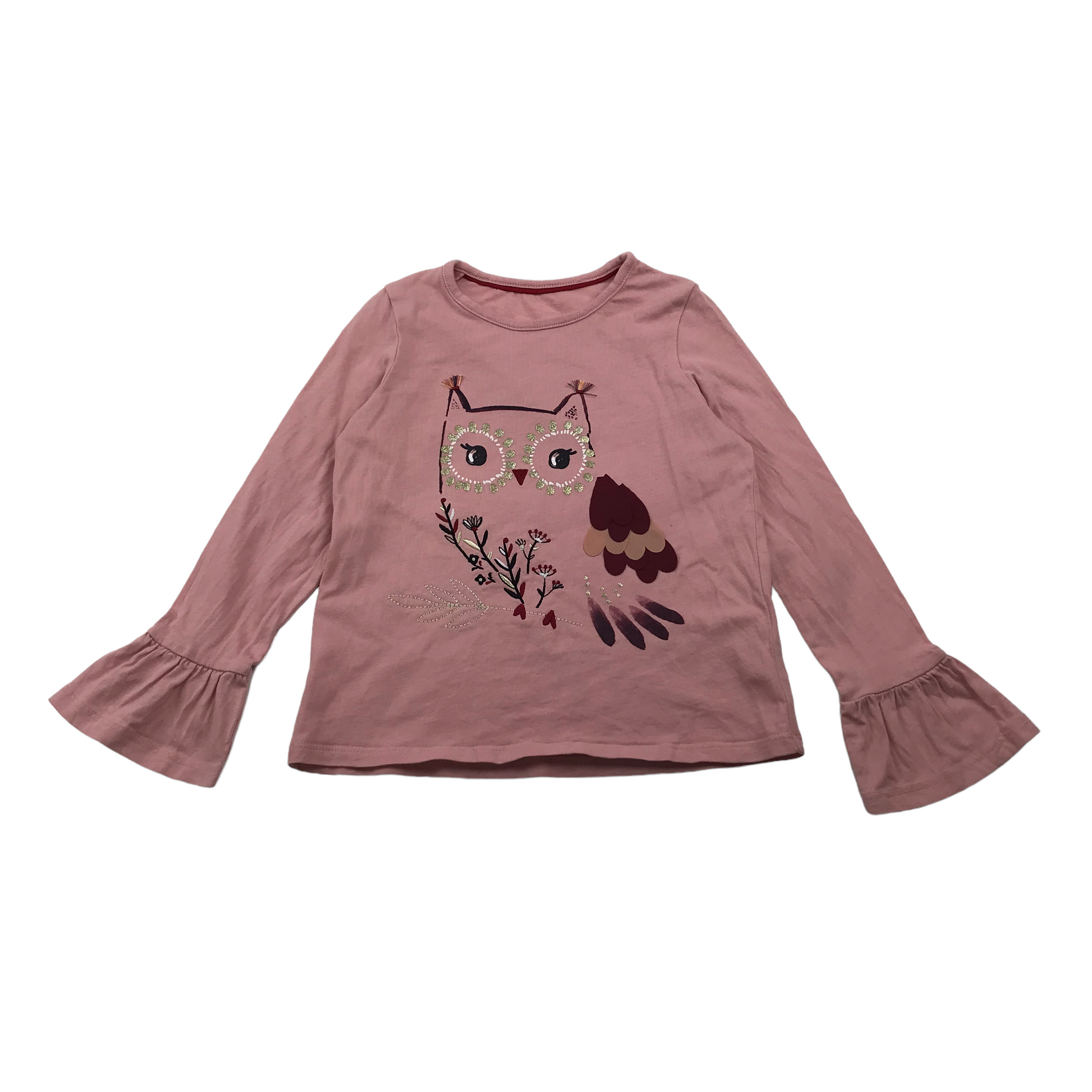 Preloved second hand M&S Pink Frilled Sleeve Owl T-shirt Age 5