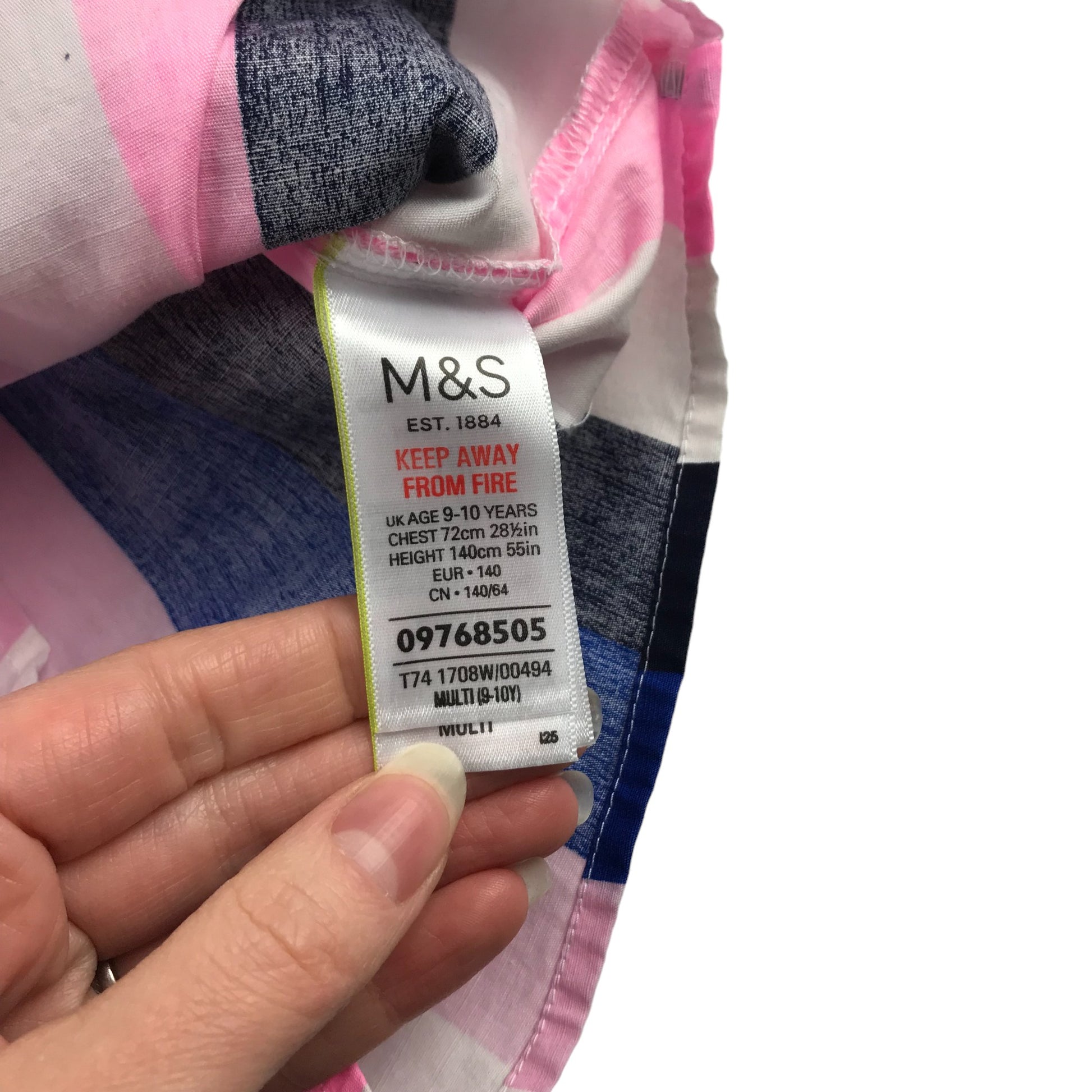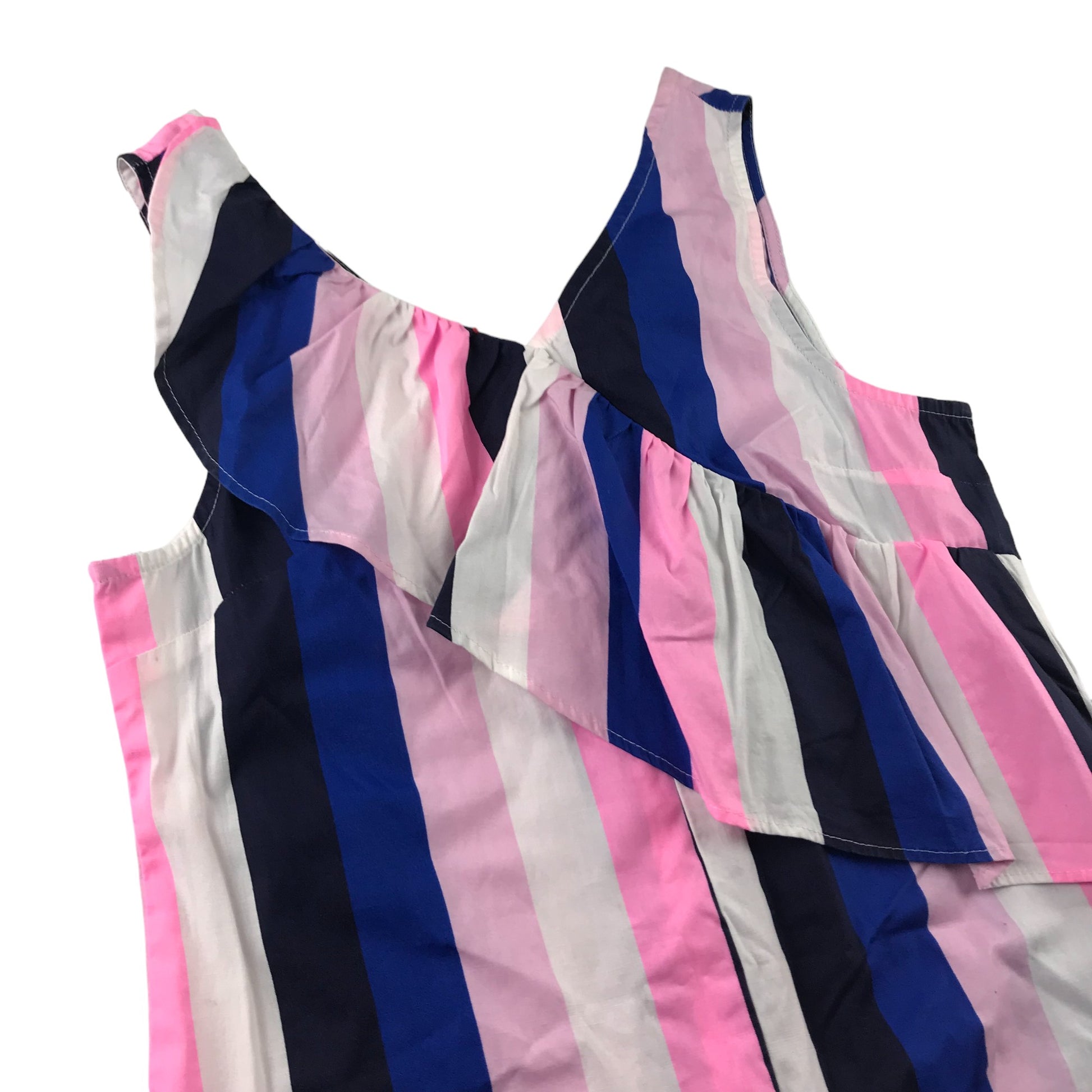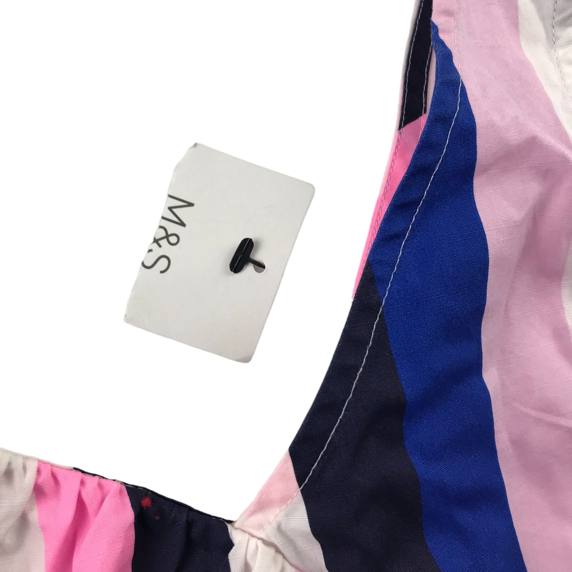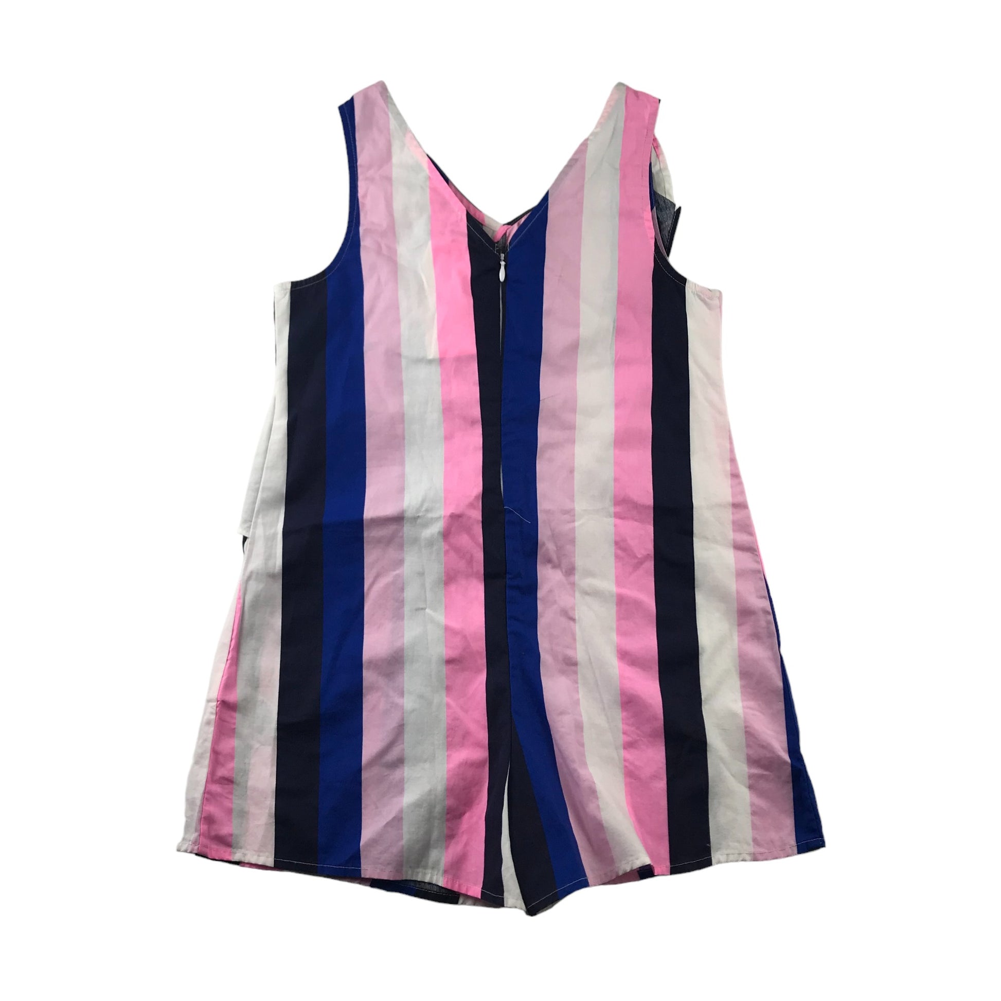 M&S Playsuit Age 9 Pink and Blue Stripy Loose Fit Cotton
