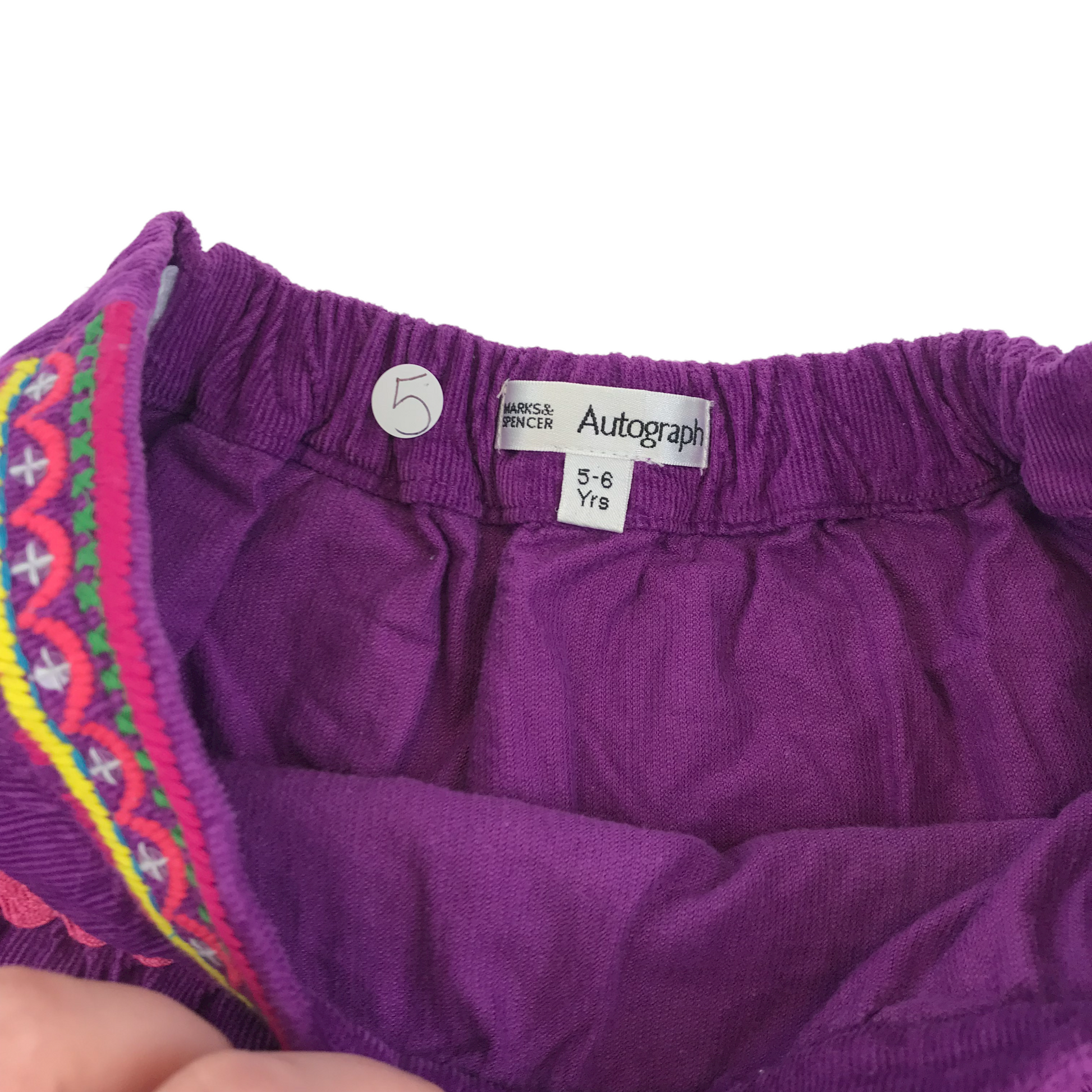M&S Purple Corduroy Embroidery Skirt Age 5