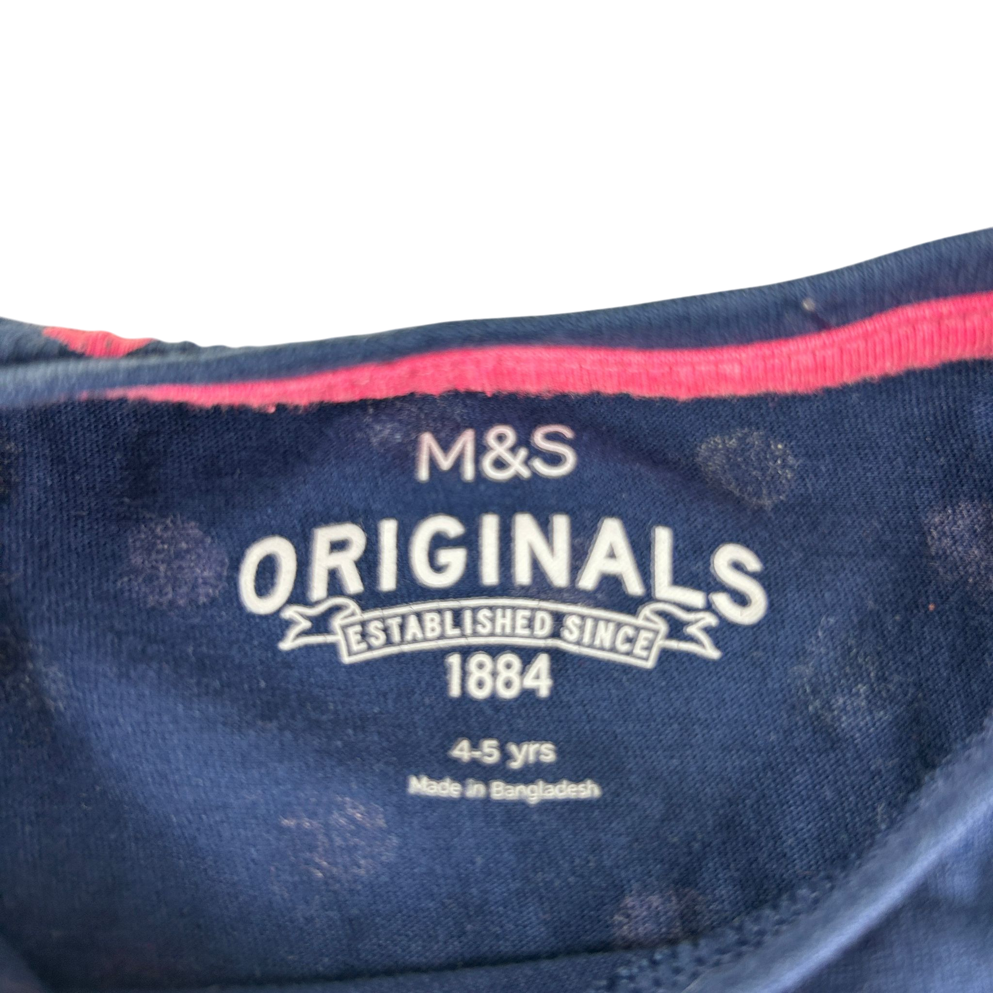M&S Pyjama Set 4-5 Years Navy Polka Dot Print Cotton