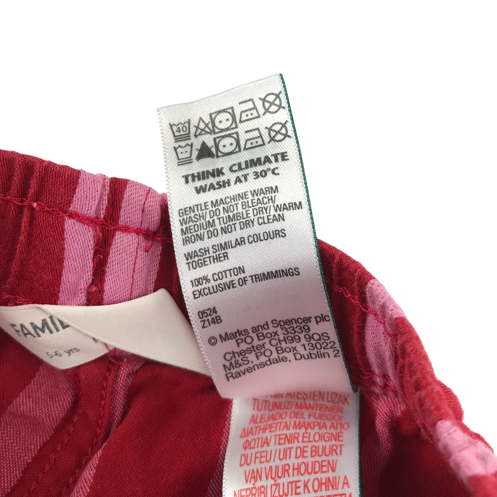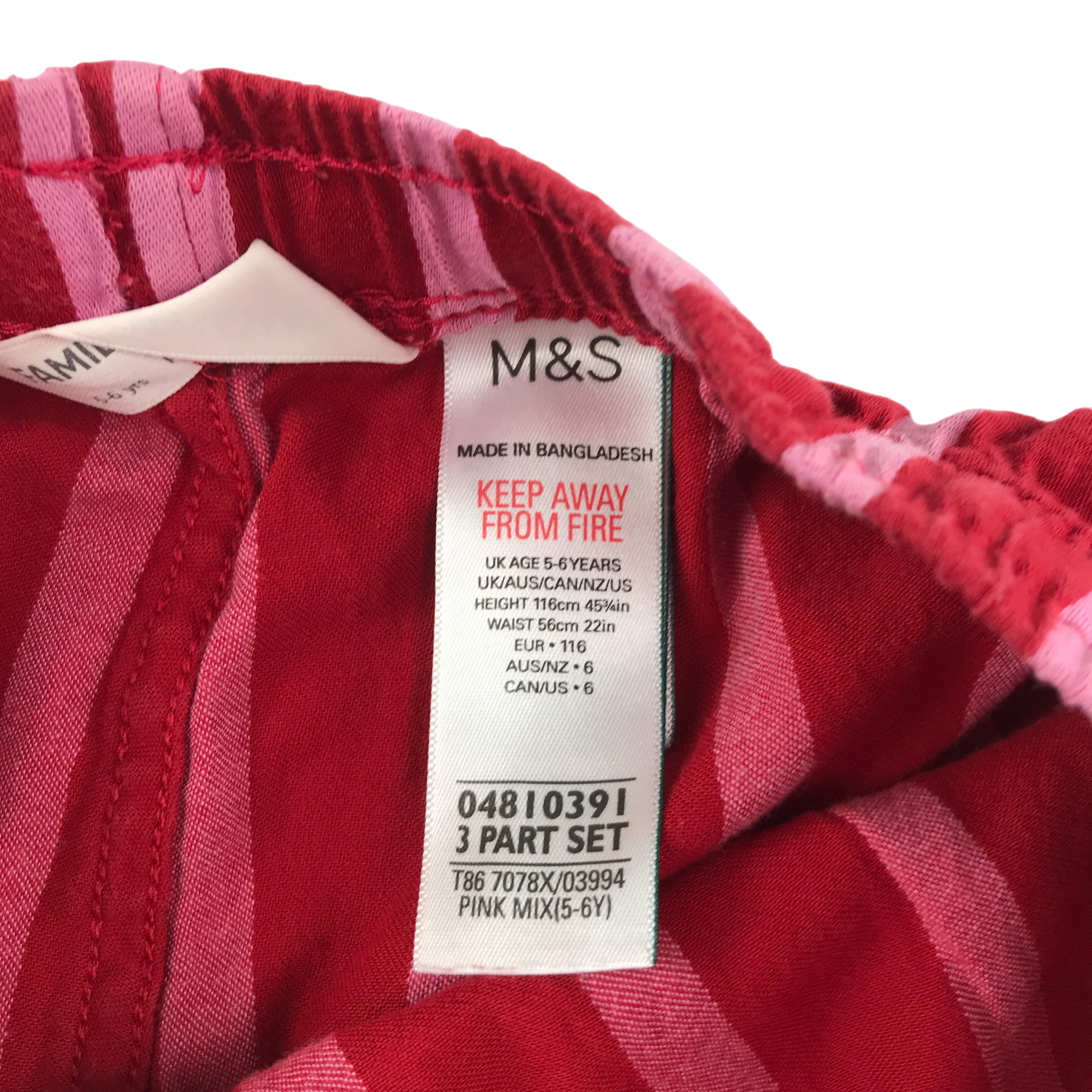 M&S Pyjama Set 5-6 Years Red Pink Stripe Cotton