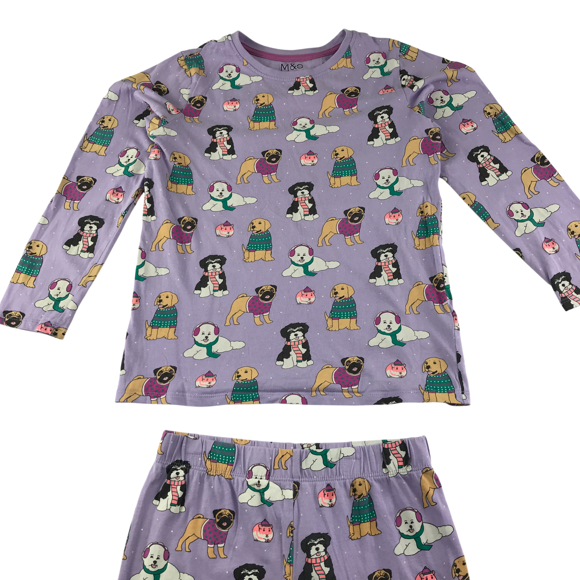 M&S Pyjama Set 9-10 Years Lilac Dog Pattern Cotton