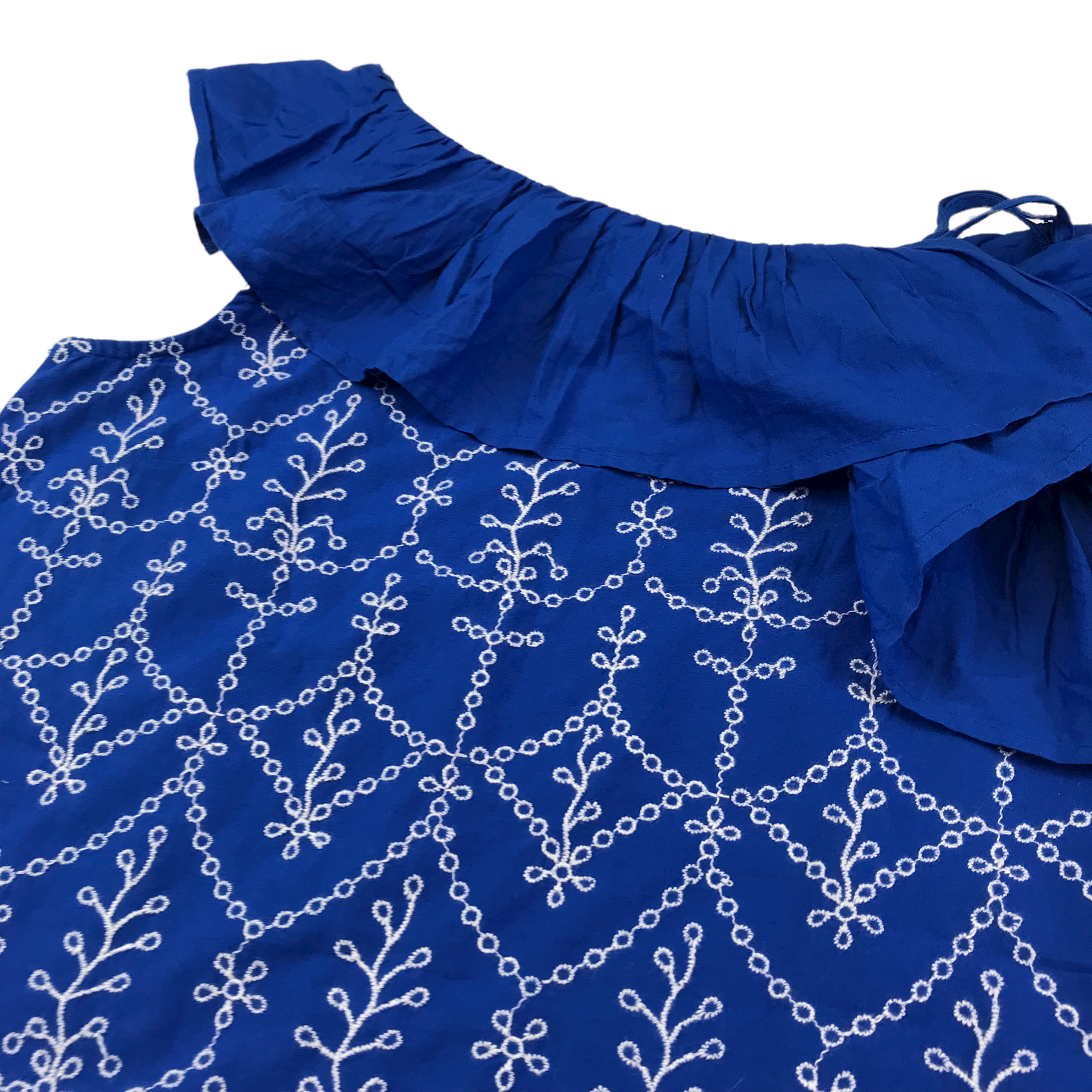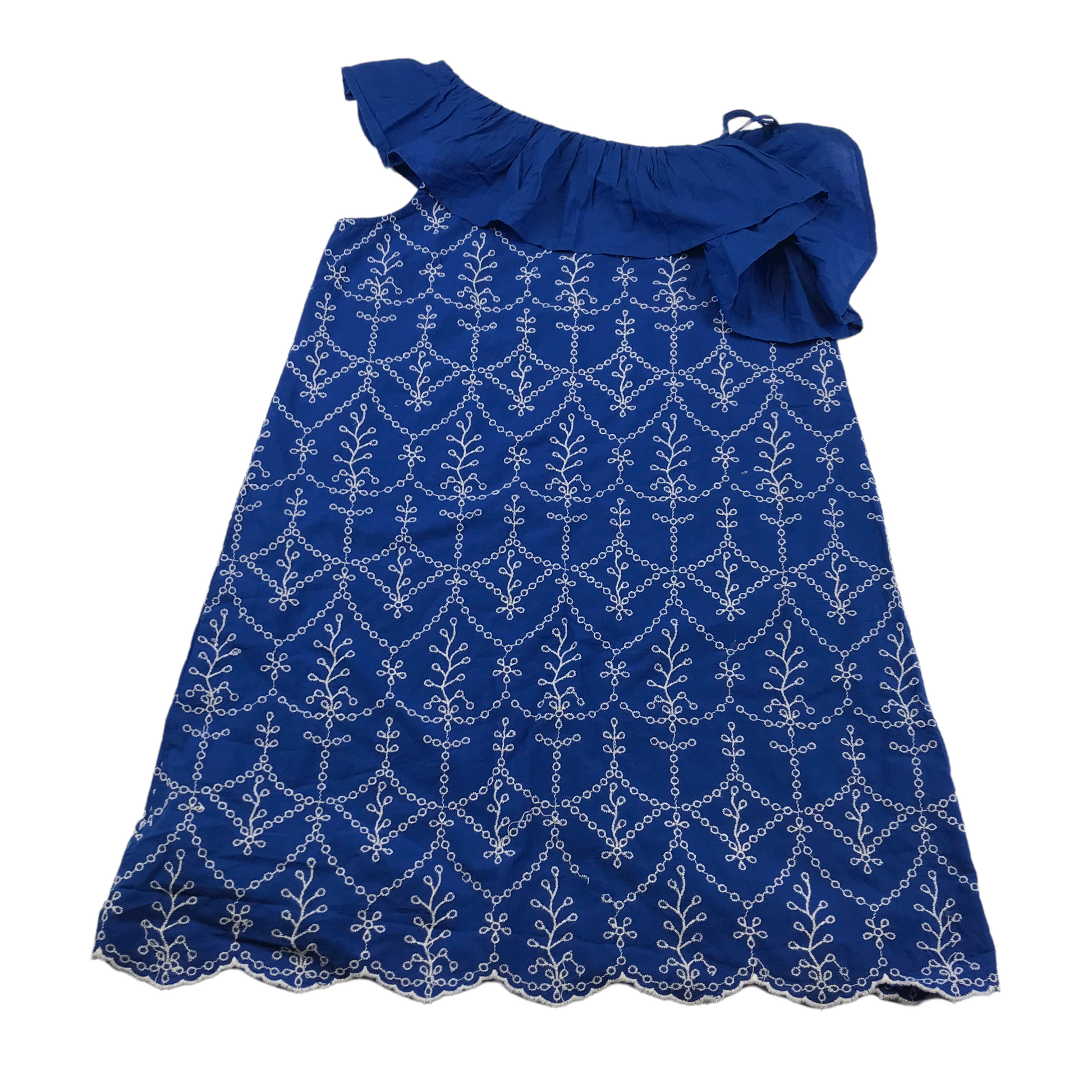 Preloved second hand M&S Royal Blue and White Pattern Dress Age 10
