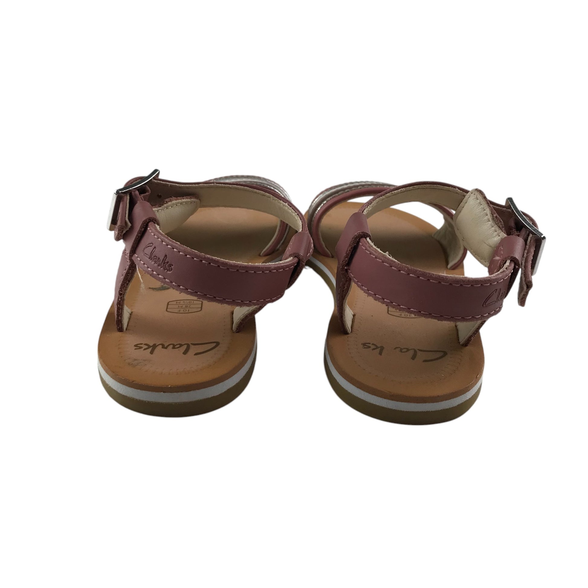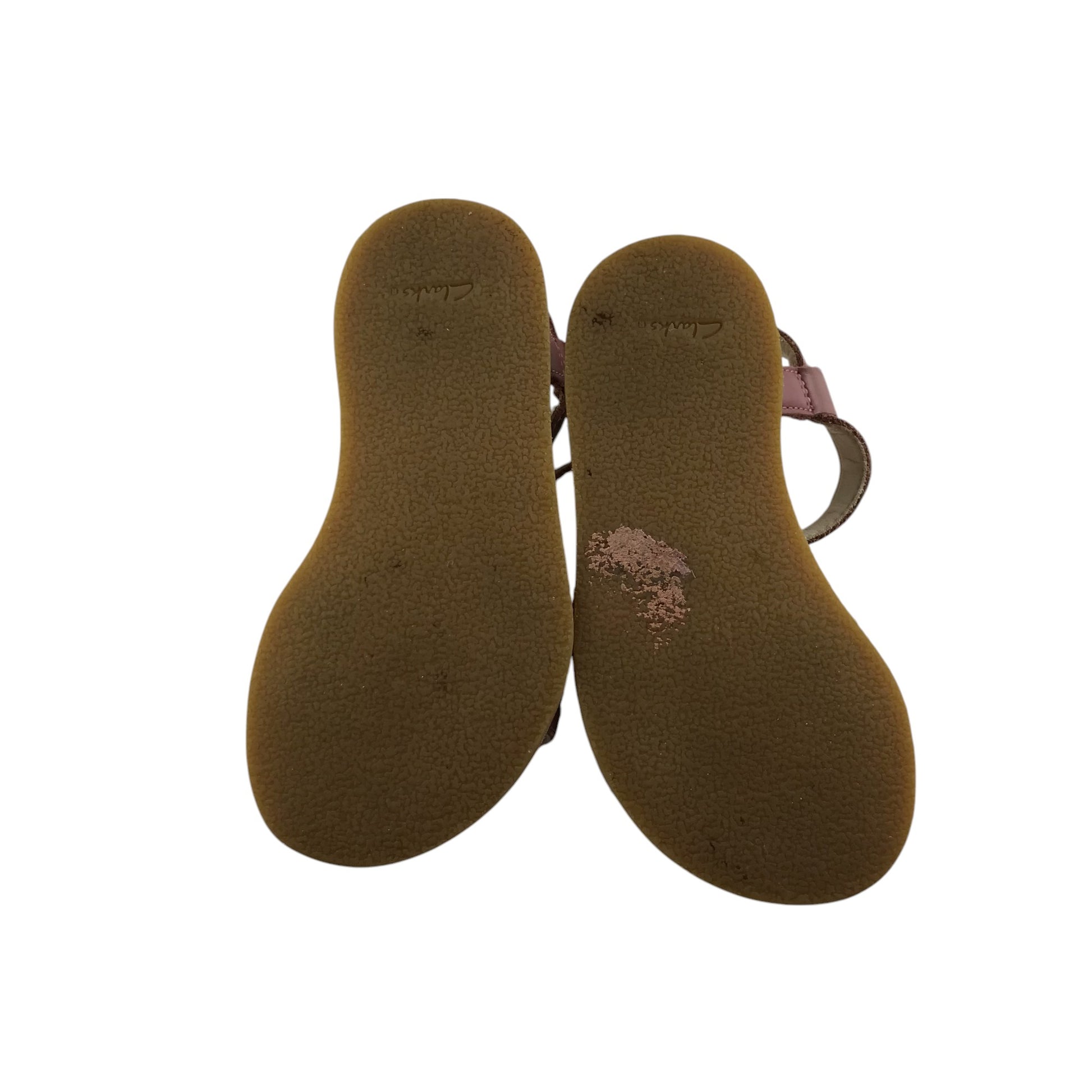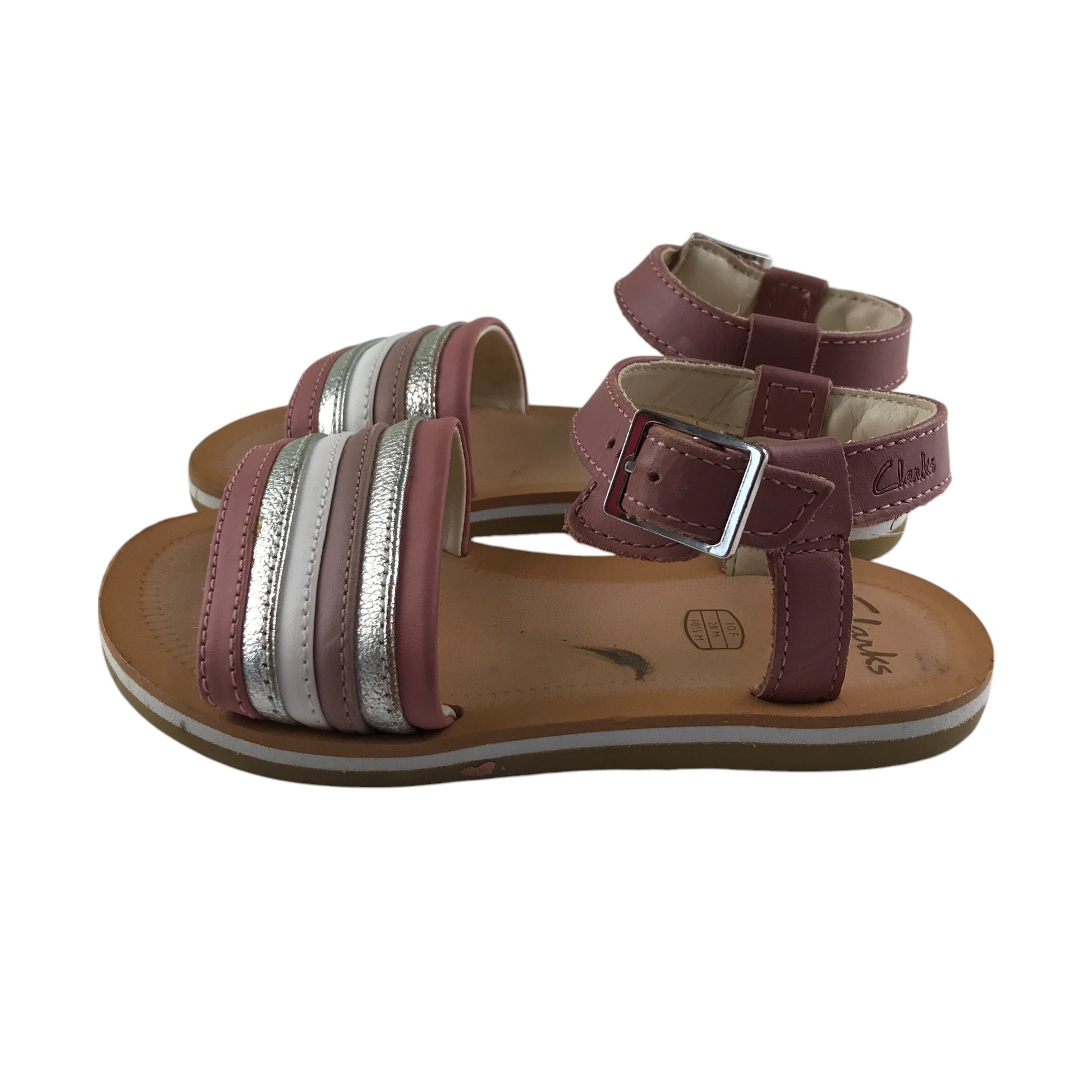 Preloved second hand Clarks sandal shoe size 10 junior red clay and sliver straps with brown soles