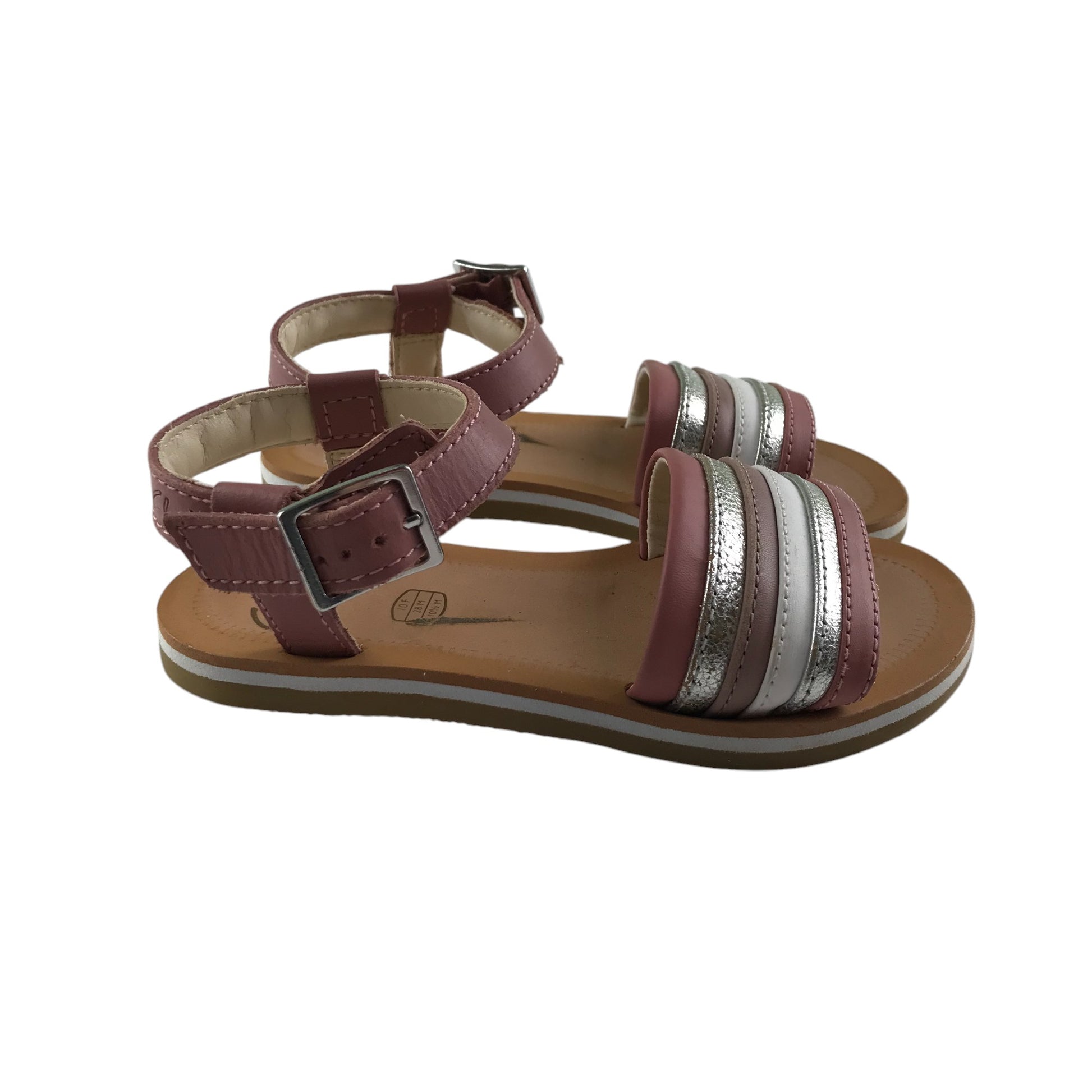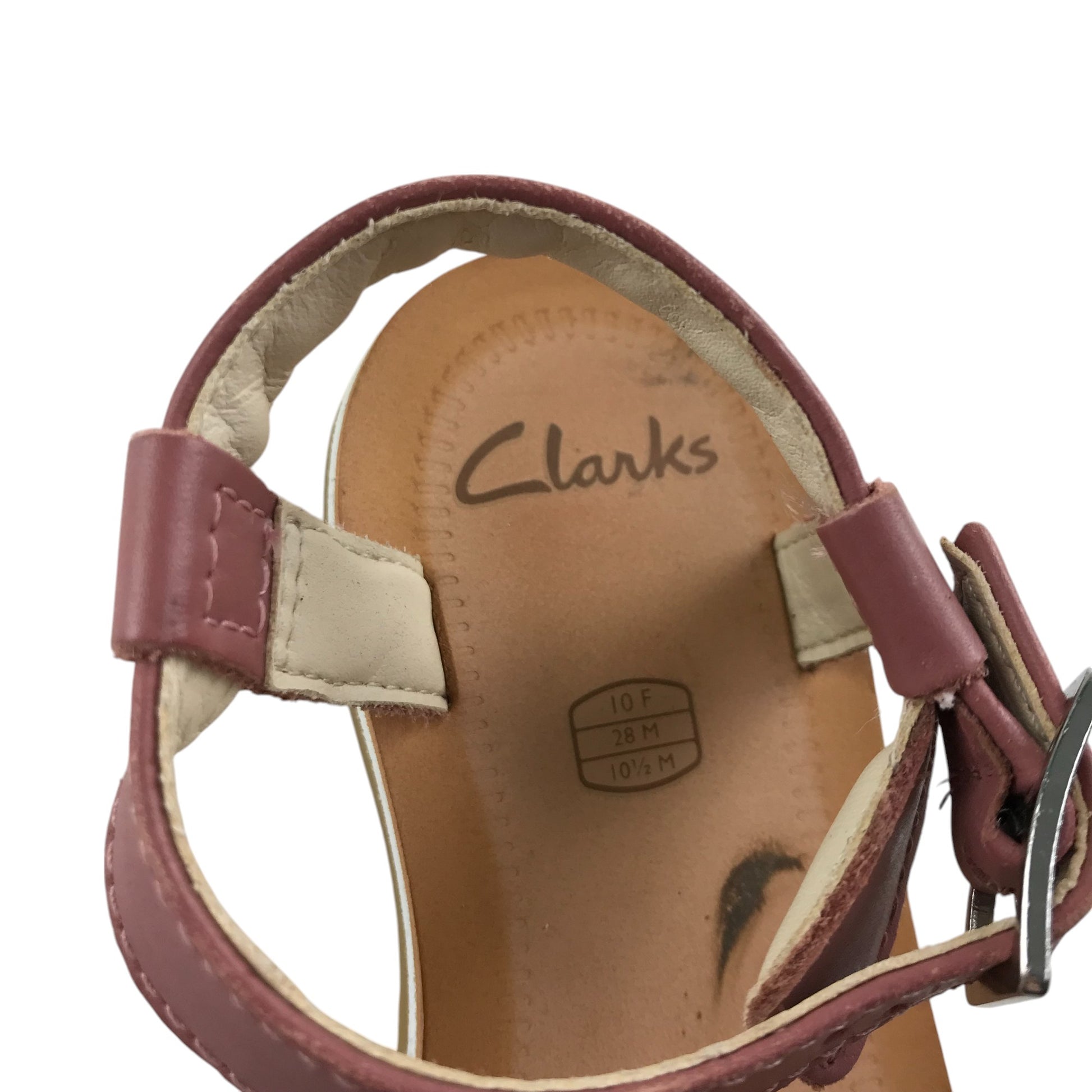 Clarks sandal shoe size 10 junior red clay and sliver straps with brown soles
