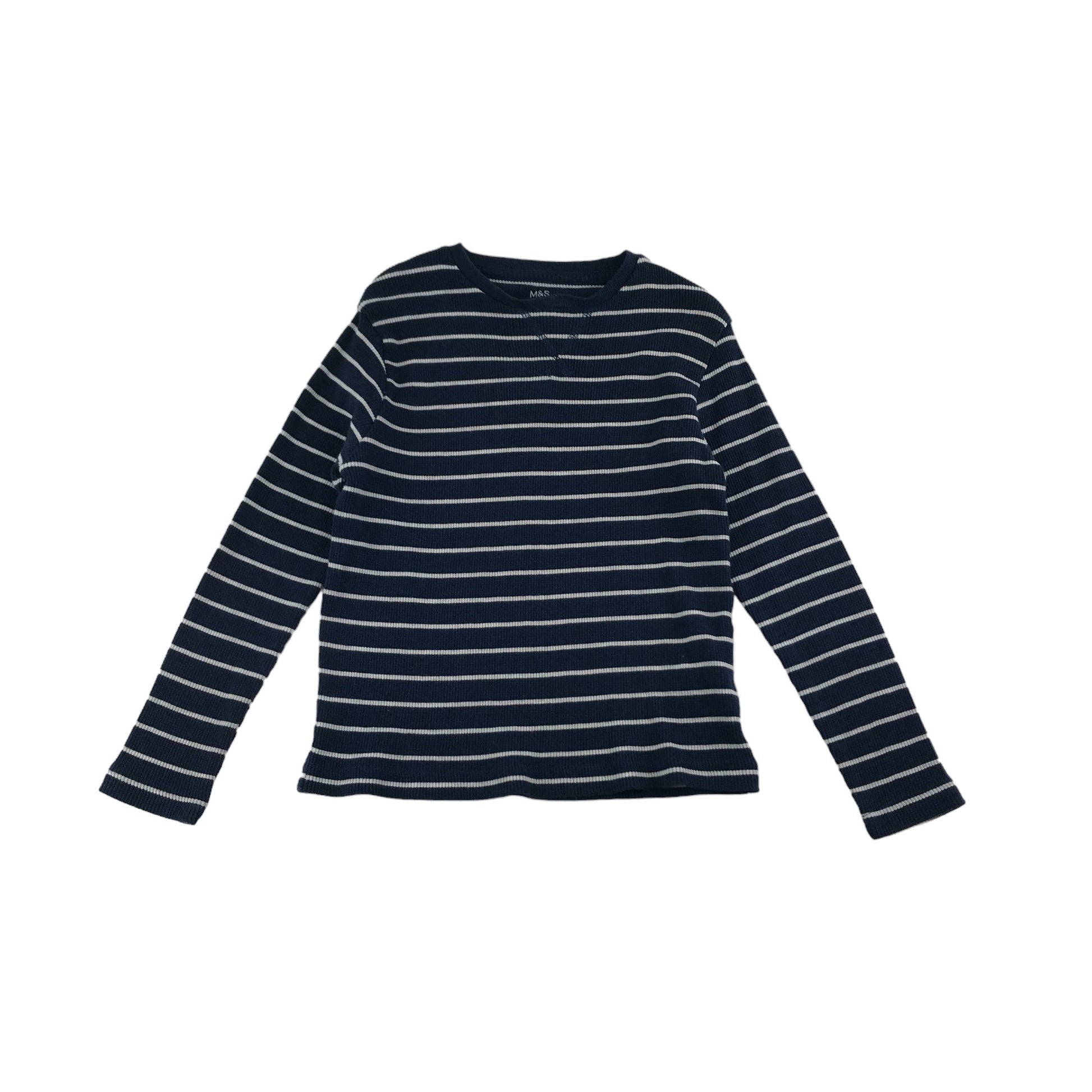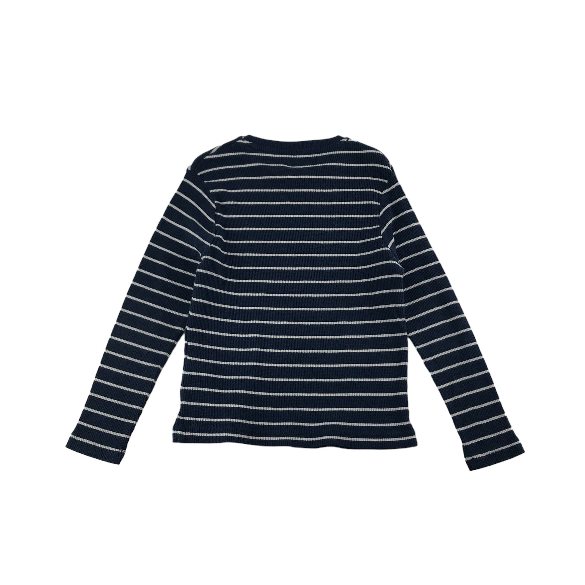 Preloved second-hand M&S T-shirt Age 6 Navy Blue Long Sleeve Stripy Pattern