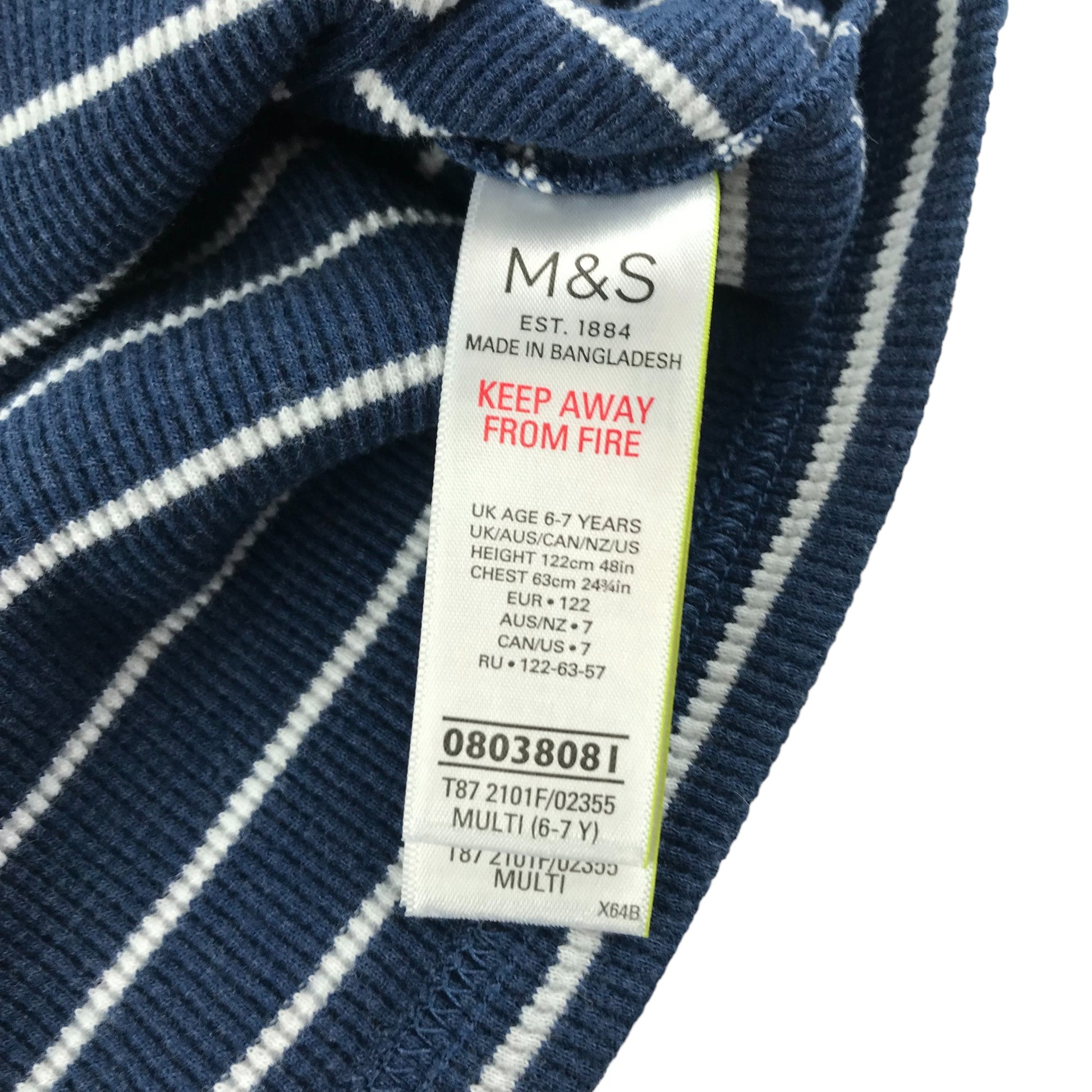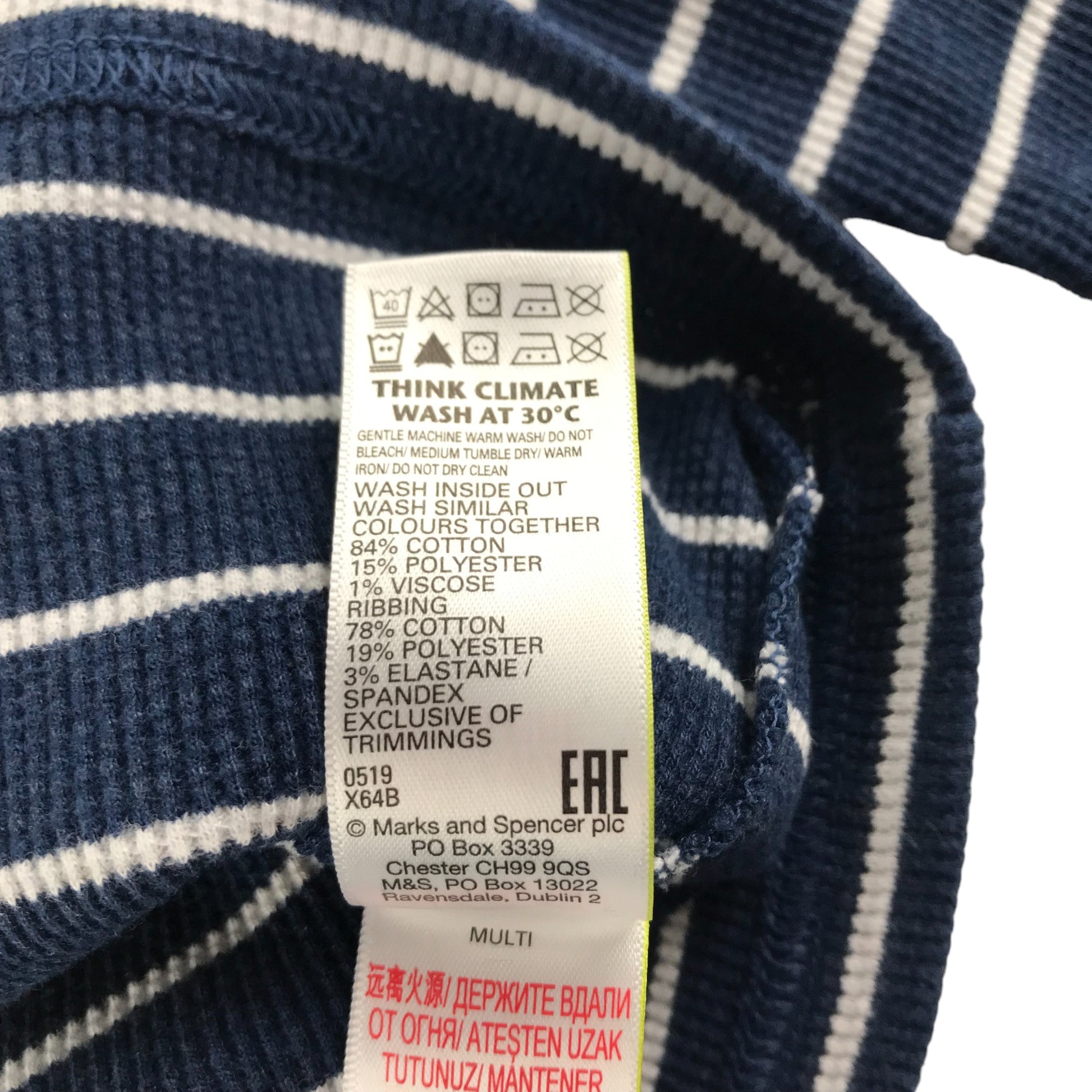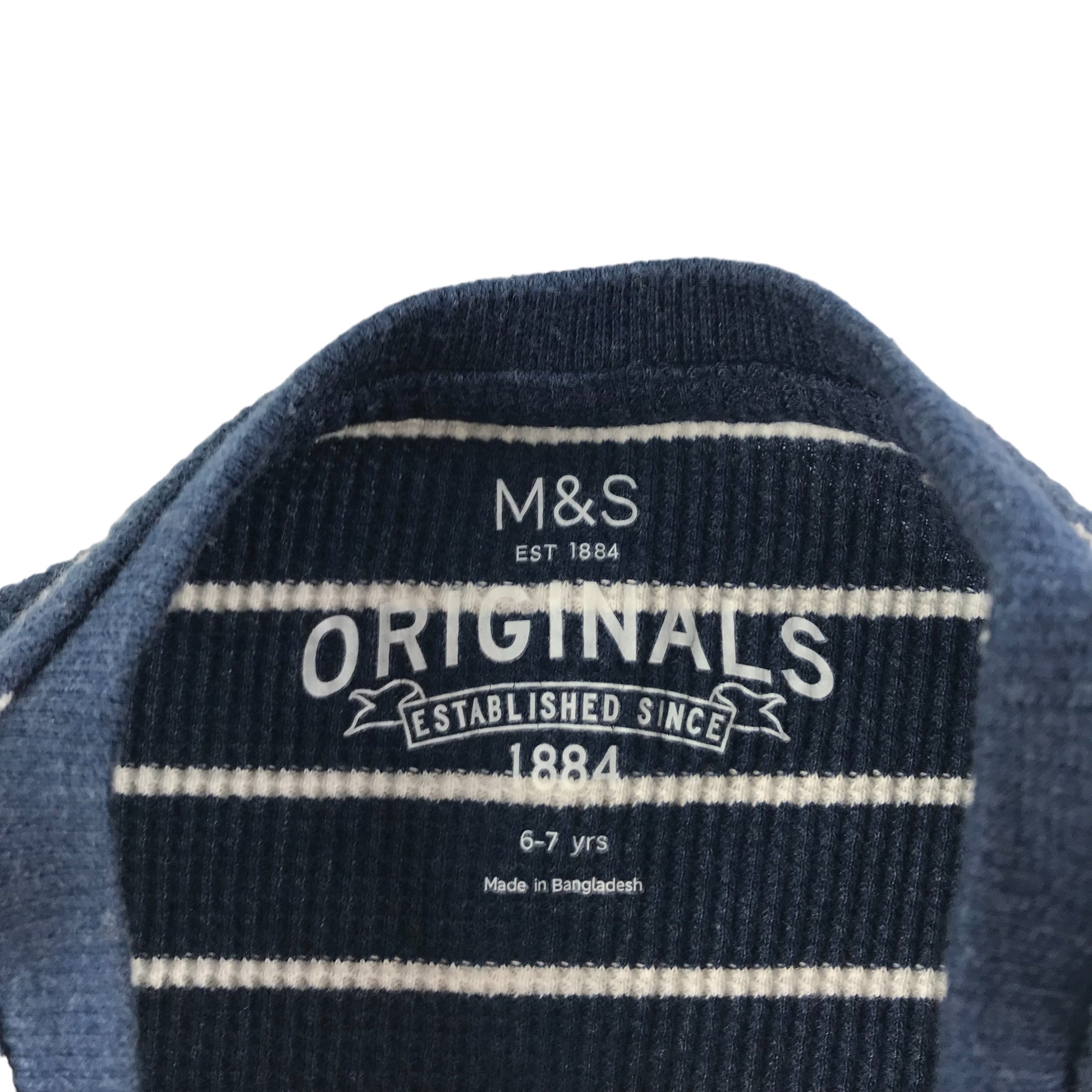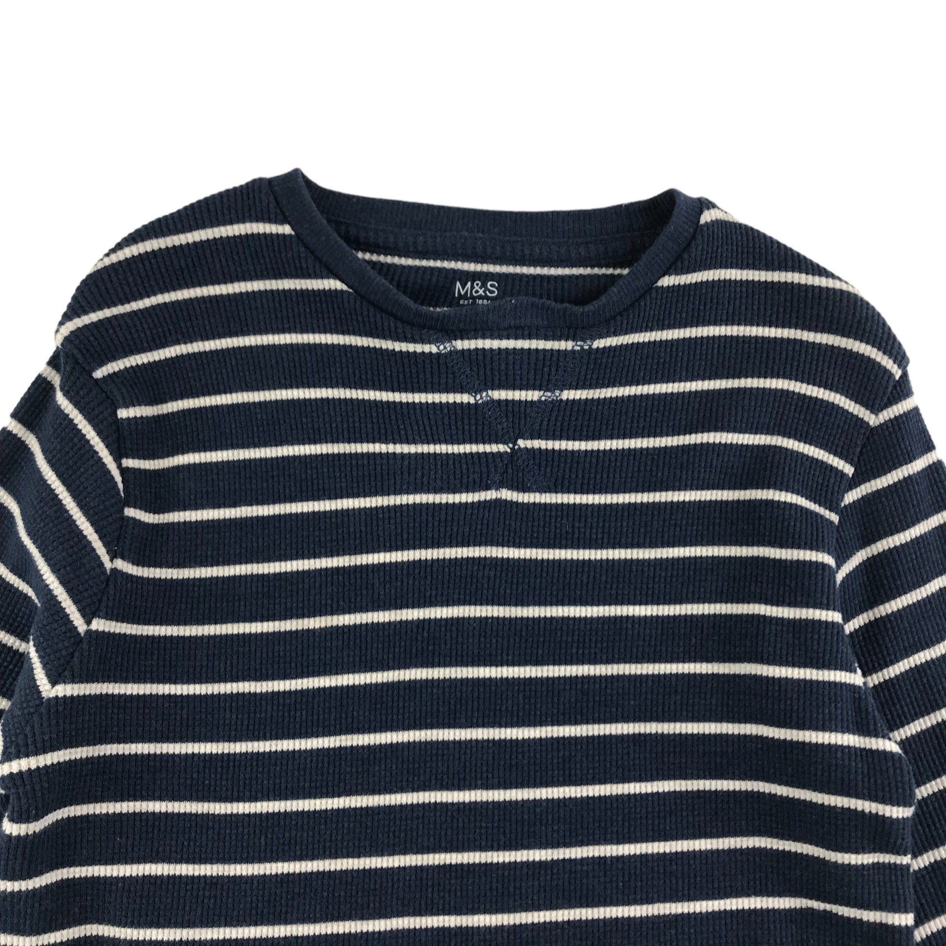 M&S T-shirt Age 6 Navy Blue Long Sleeve Stripy Pattern