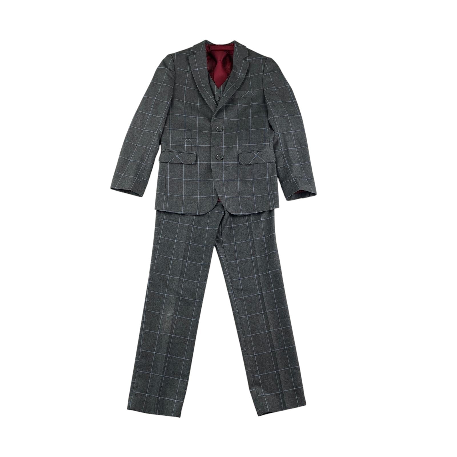 Preloved second hand Romano suit 8-9 years grey check pattern jacket trousers vest and tie