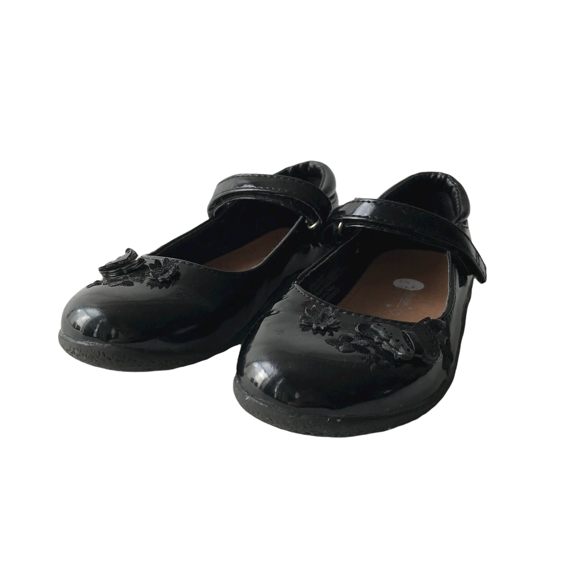 Matalan Black School Pumps with Single Strap and Butterflies Shoe Size 9 (jr)
