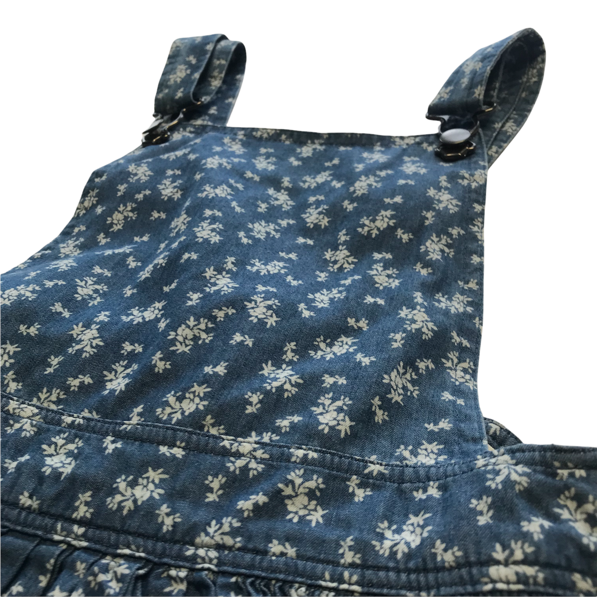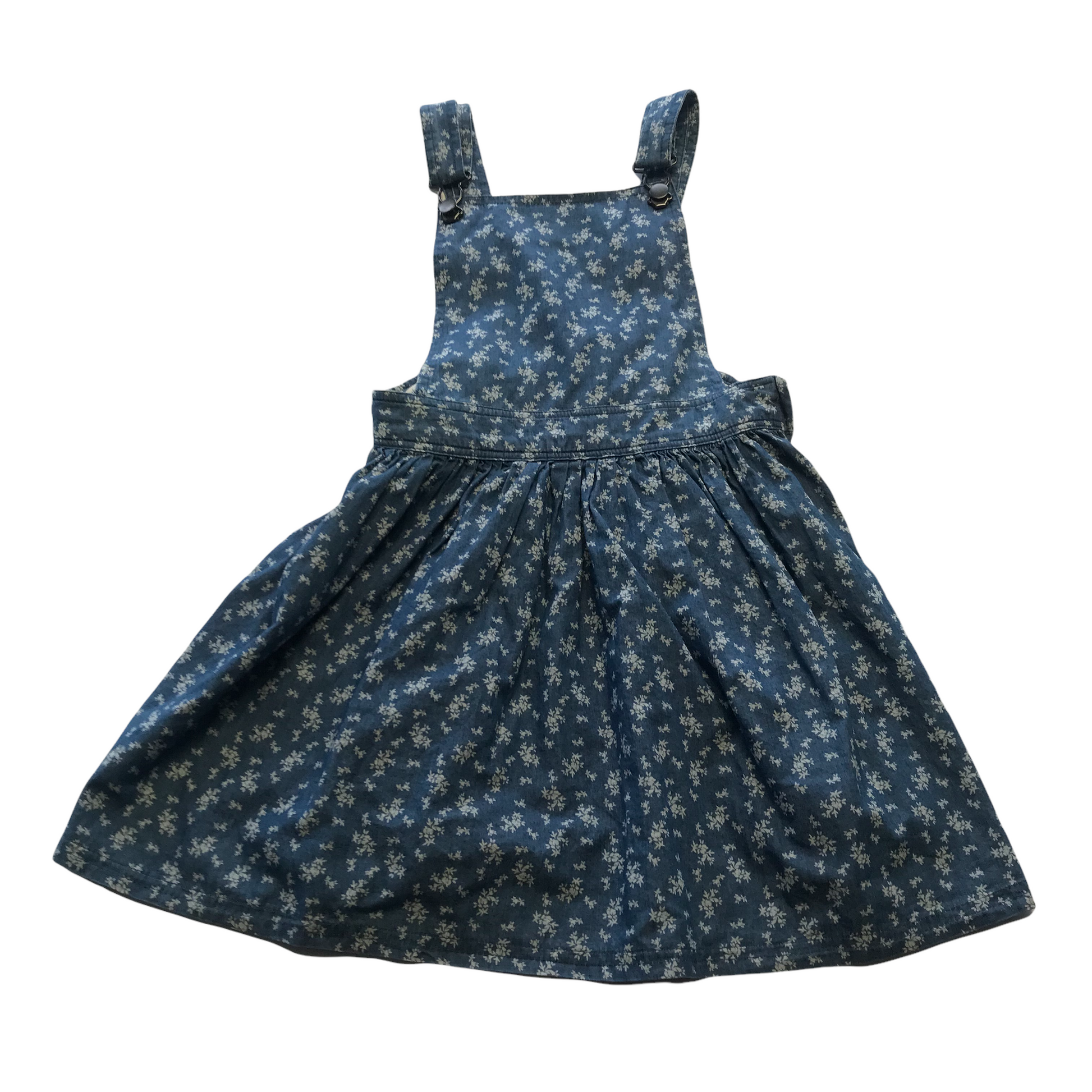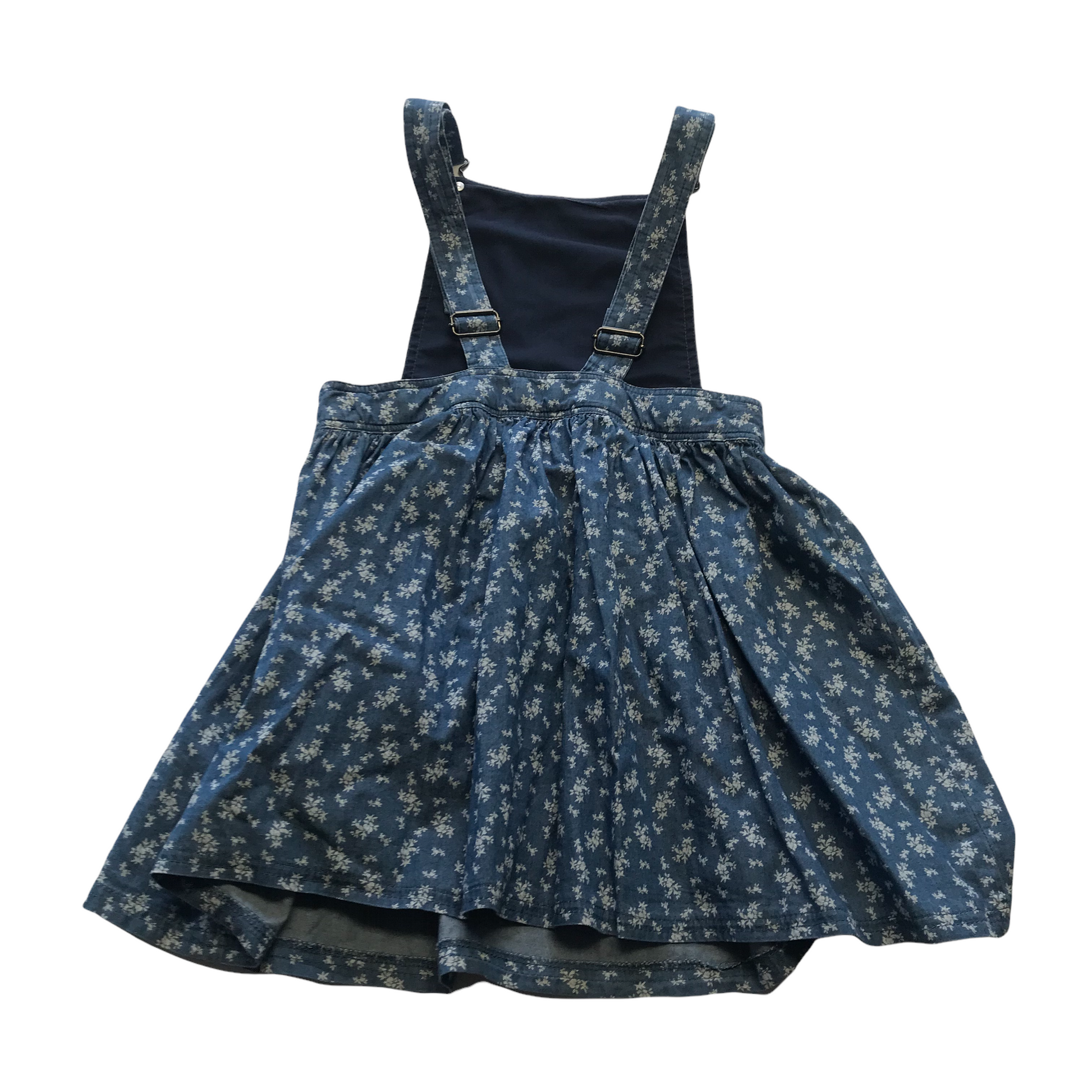 Preloved second hand Matalan Denim-style Floral Dungaree Dress Age 11