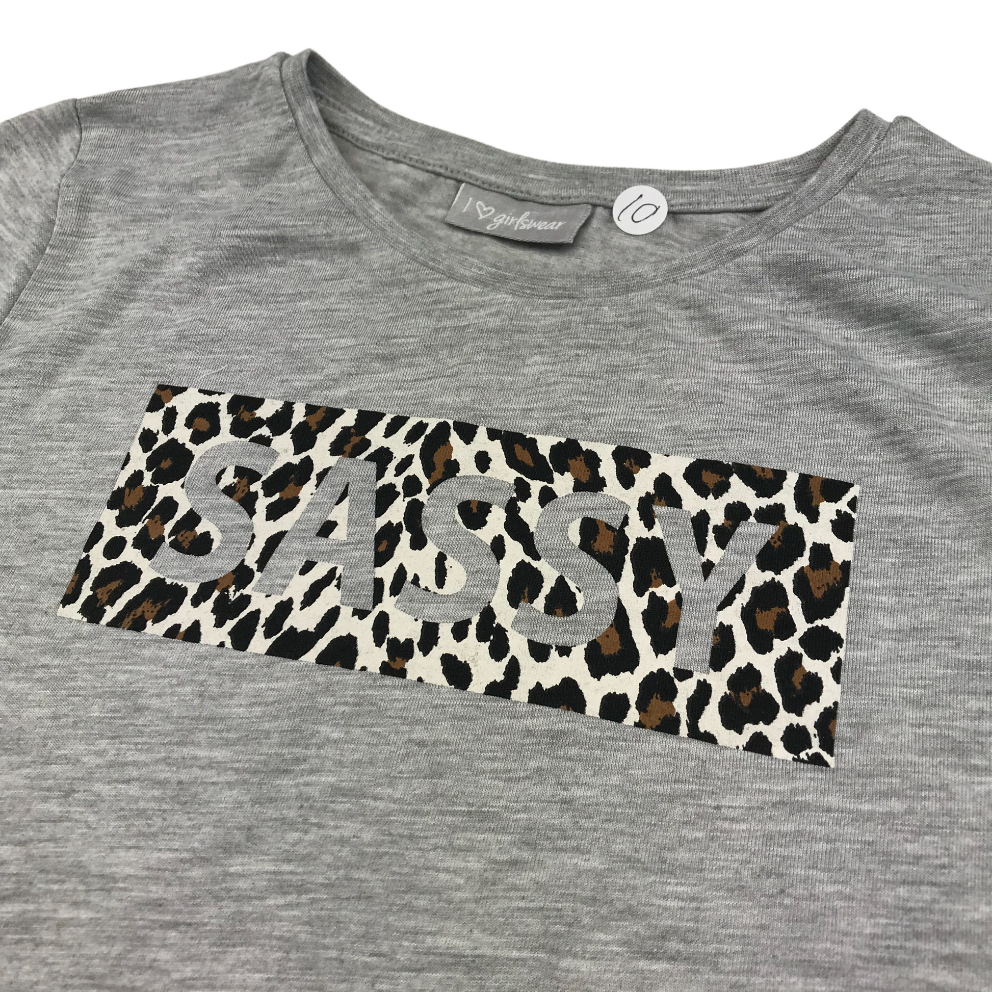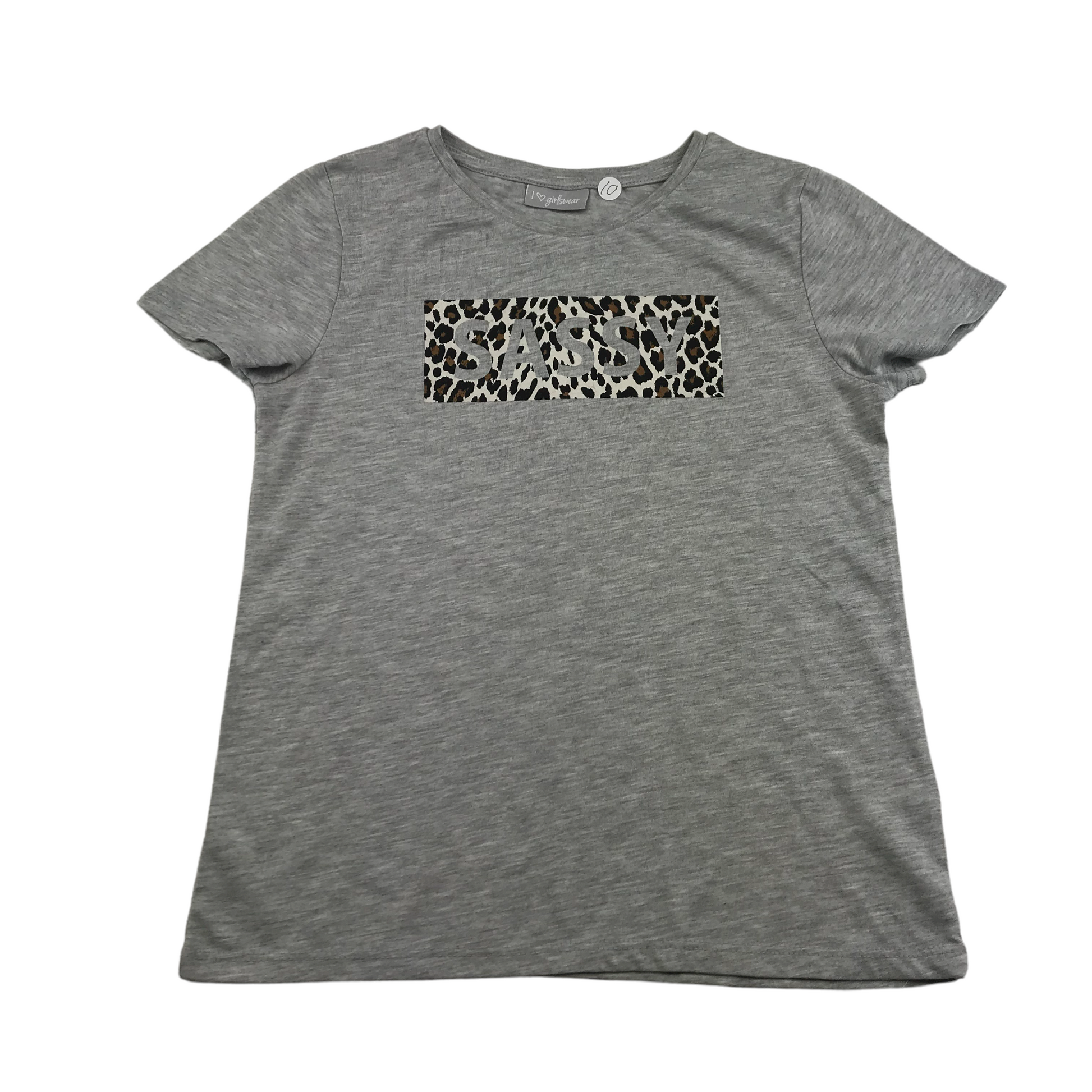 Preloved second hand Matalan Grey "Sassy" Animal Print T-shirt Age 10