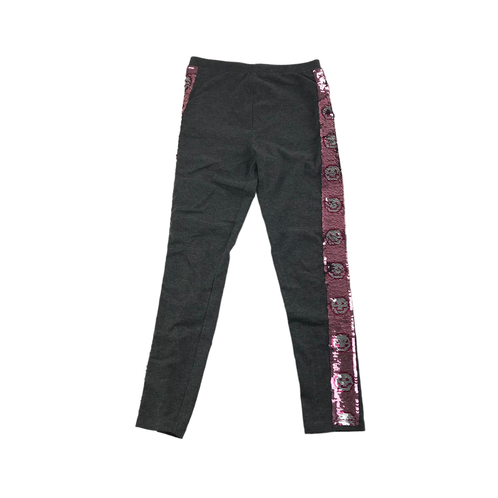 Matalan Leggings Age 9 Grey with Sparkly Pink Sequin Smiley Side Panels
