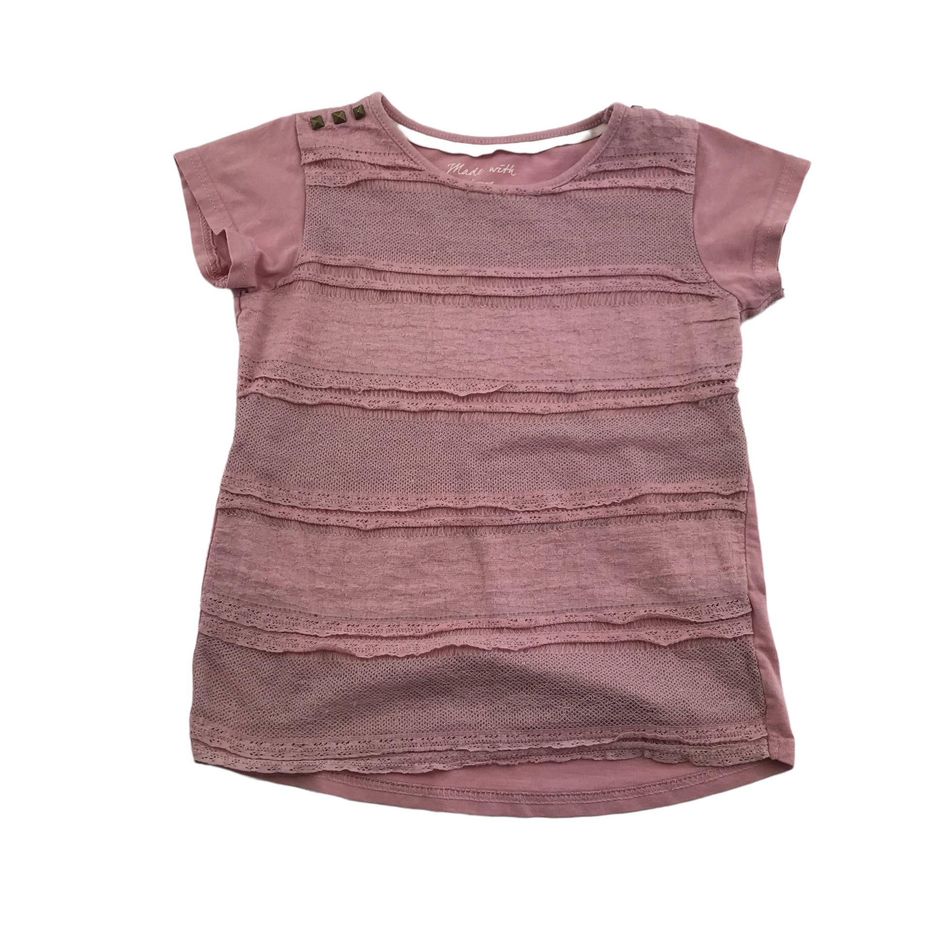 Preloved second hand Matalan Pink Frilled Strippy T-shirt Age 4