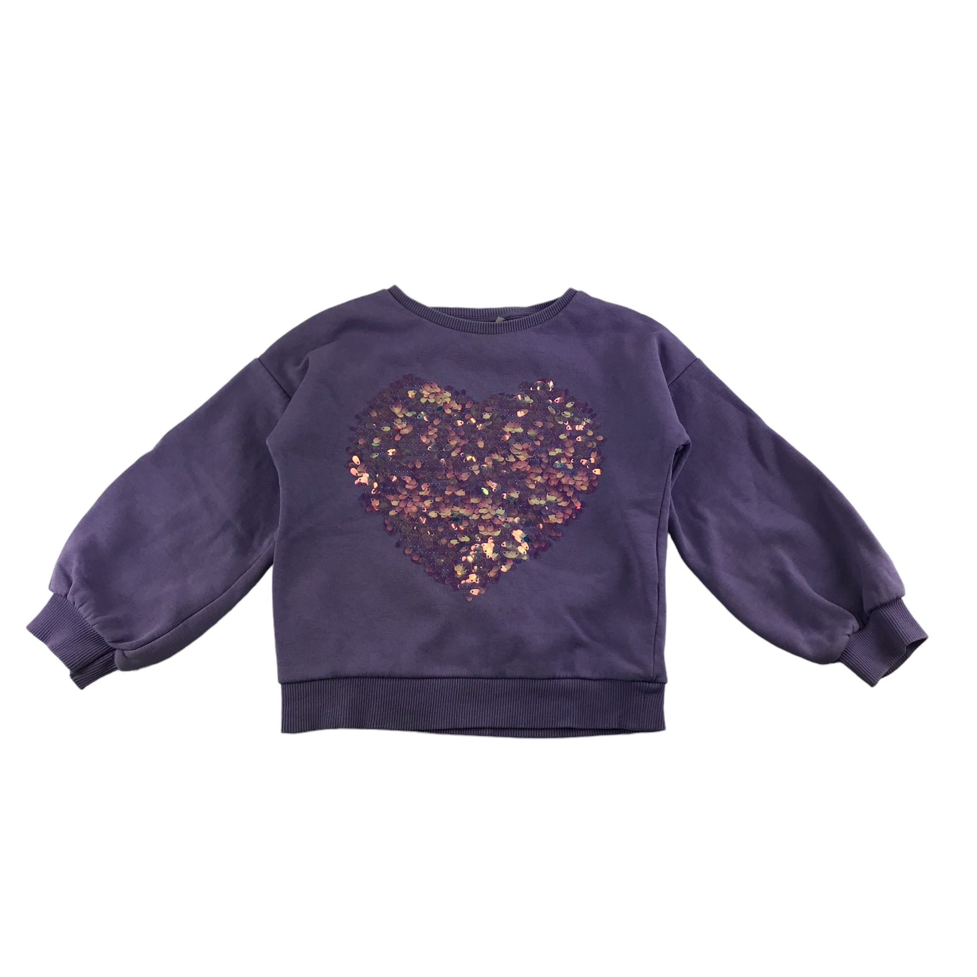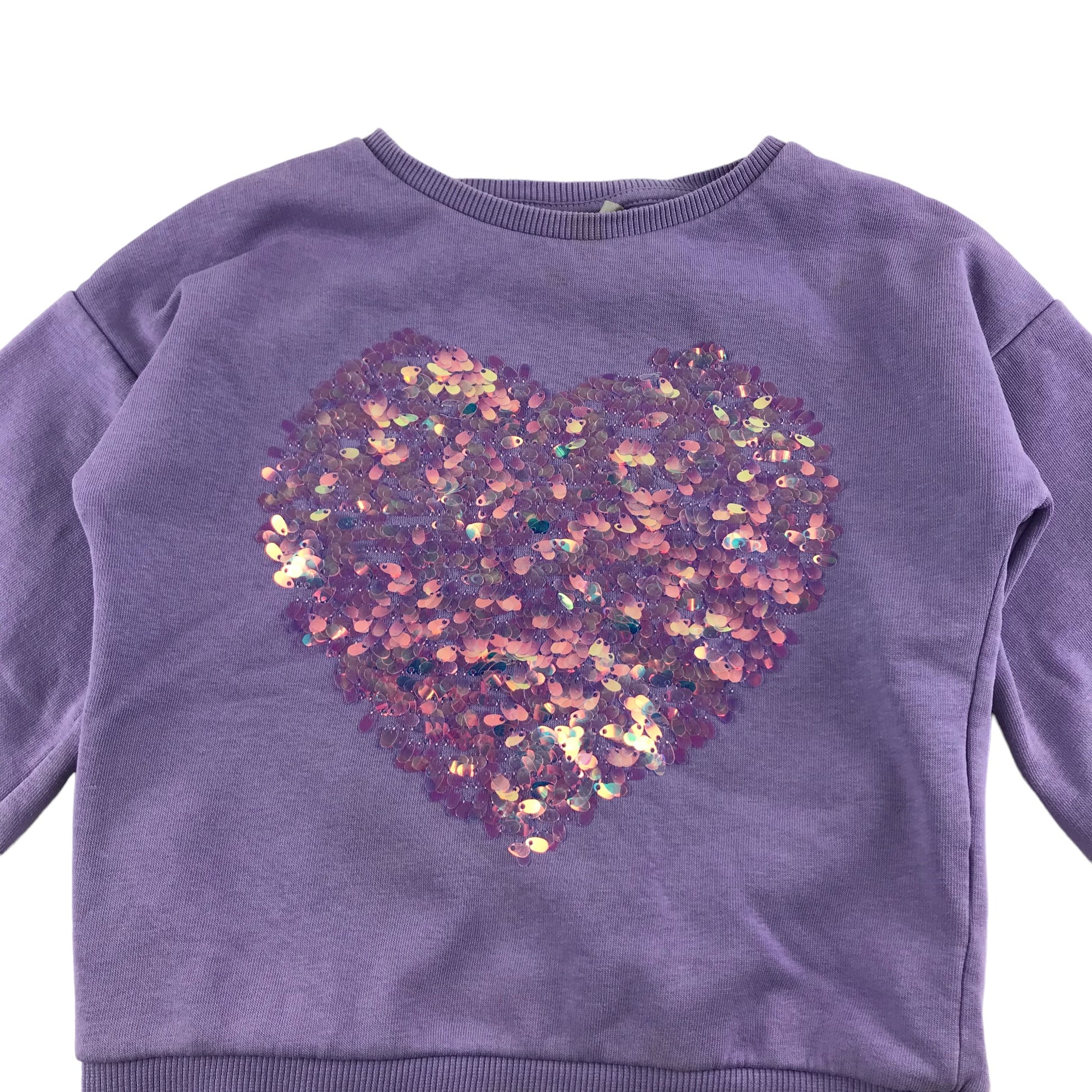 Matalan Sweater Age 6 Purple Sequin Love heart Jersey