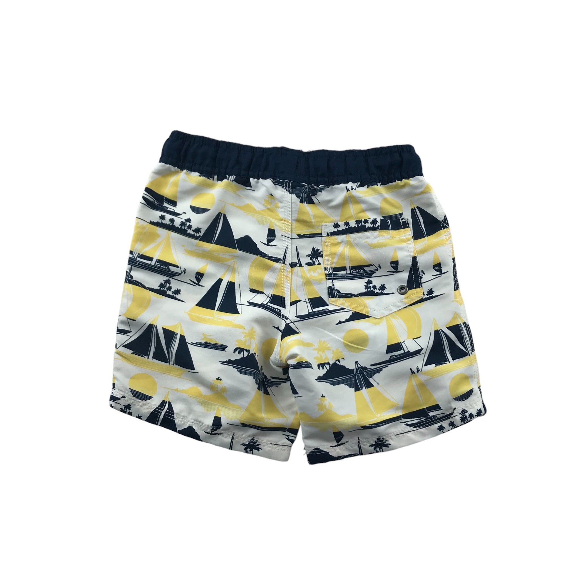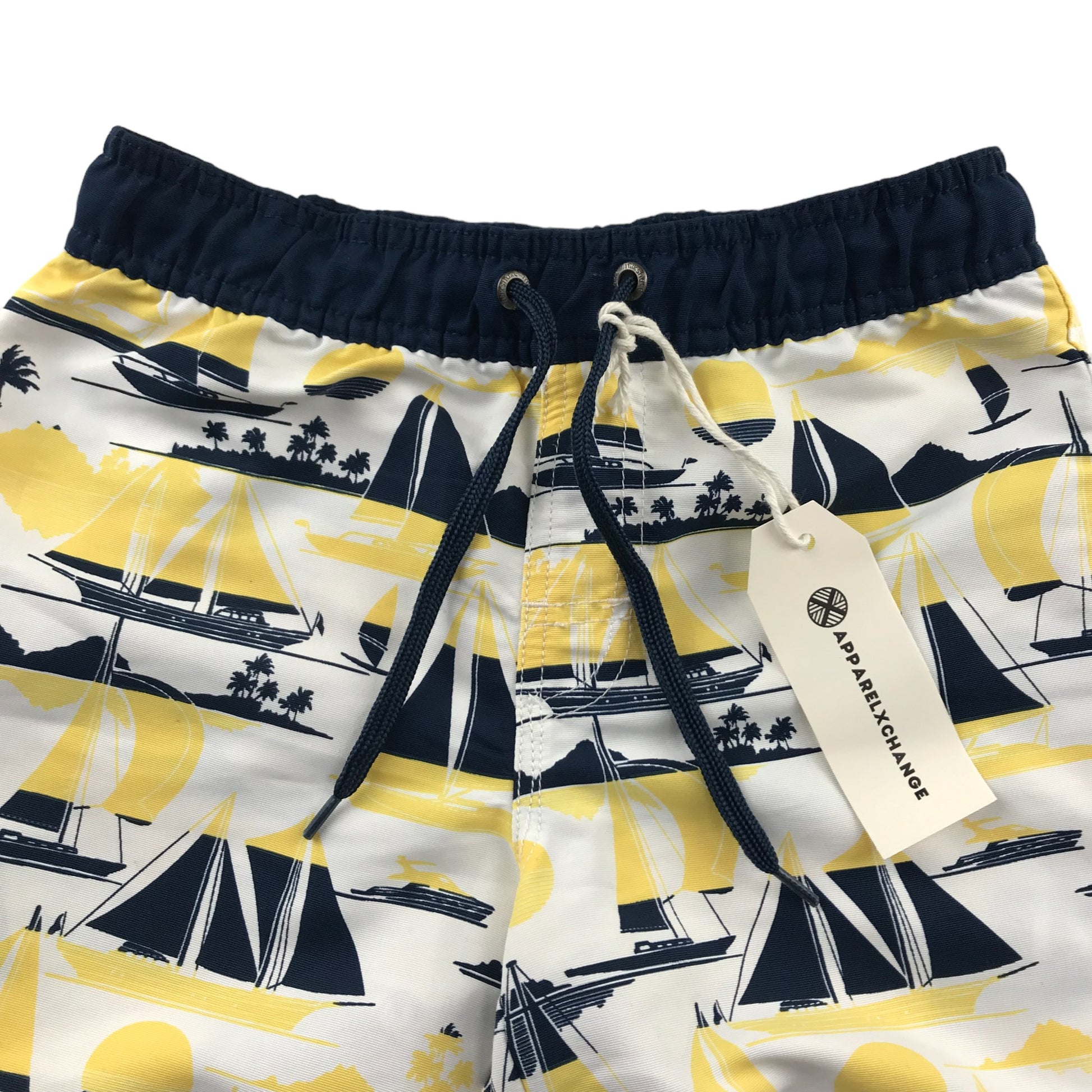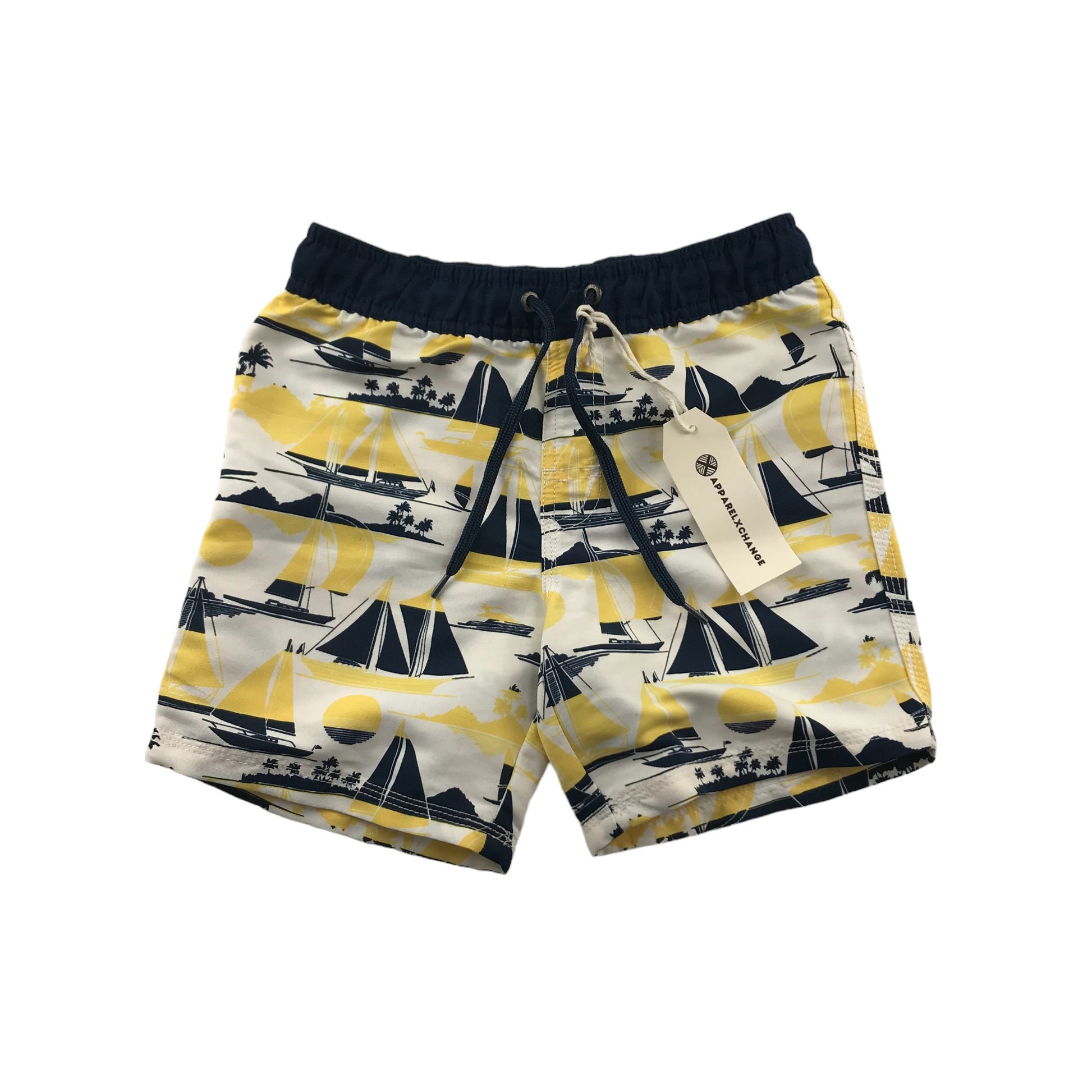 Milkshake Swim Trunks Age 7 White Navy Yellow Sailing Boats Print Shorts