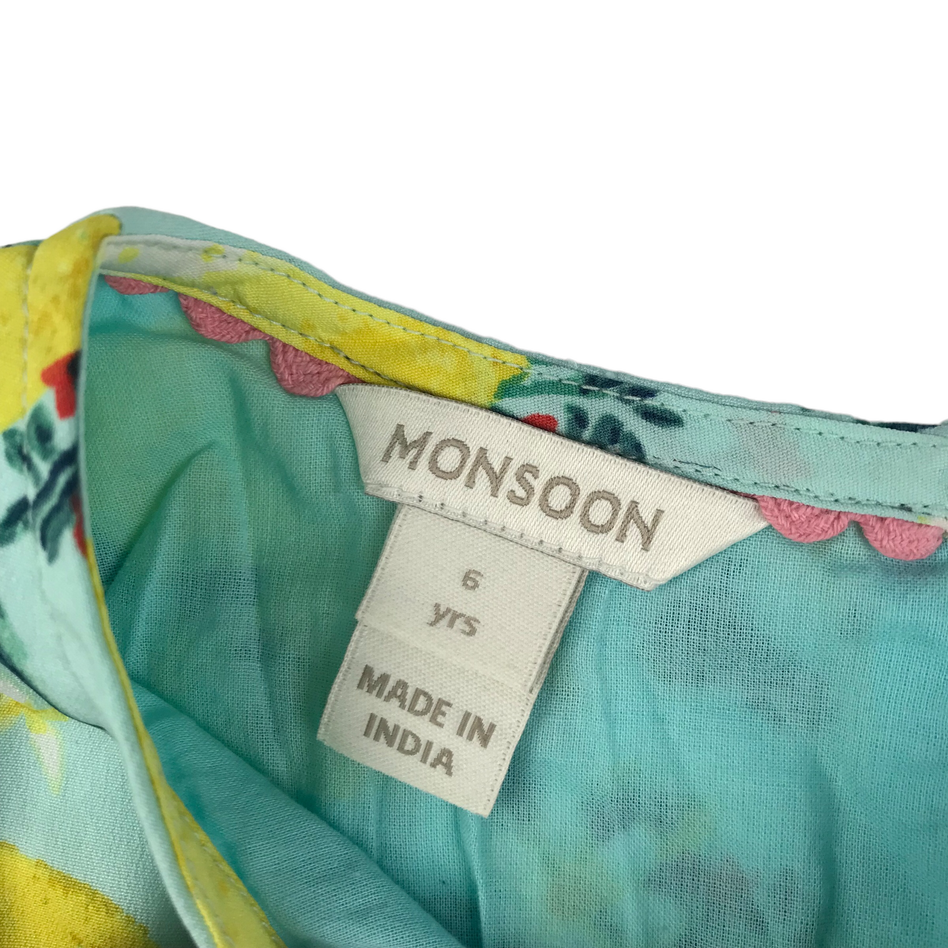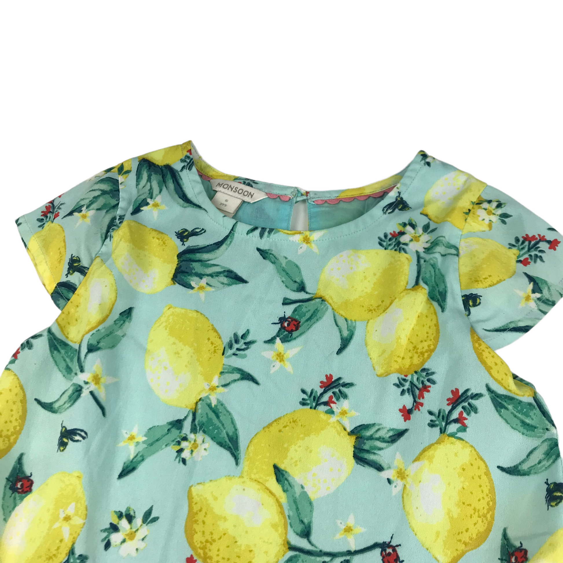 Monsoon Mint Colour Lemon Pattern Dress Age 6