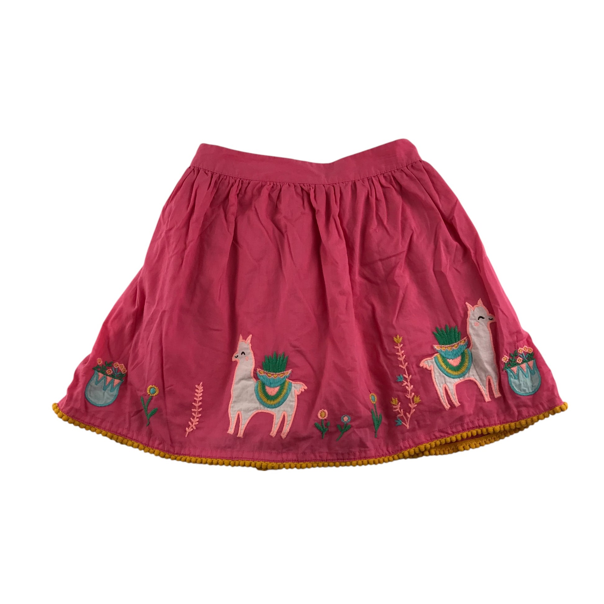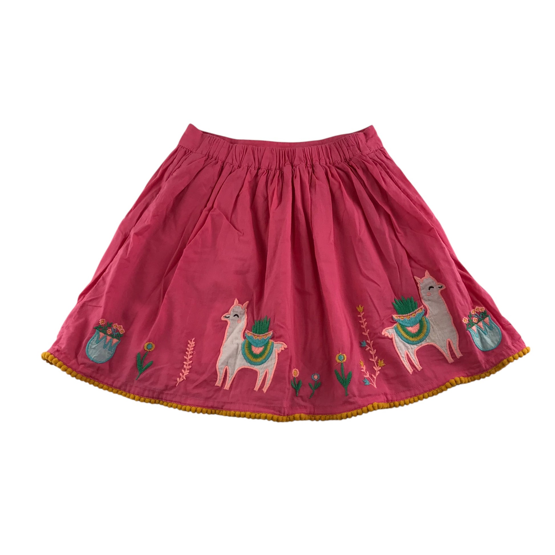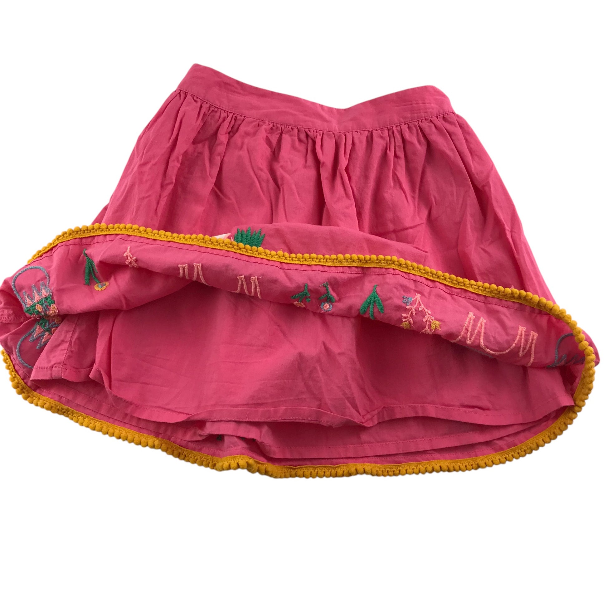 Preloved second hand Nutmeg skirt 5-6 year pink lama and floral embroidery with detailed hem cotton