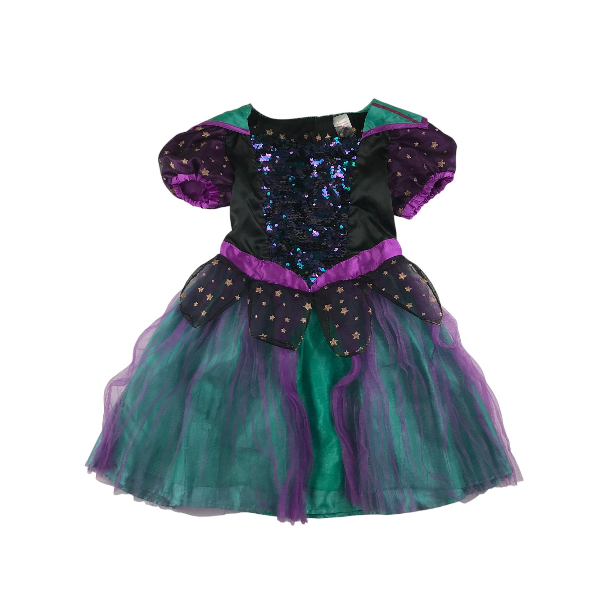 Preloved second hand Morrisons costume dress 5-6 years black turquoise and purple sequin and glitter spooky dress