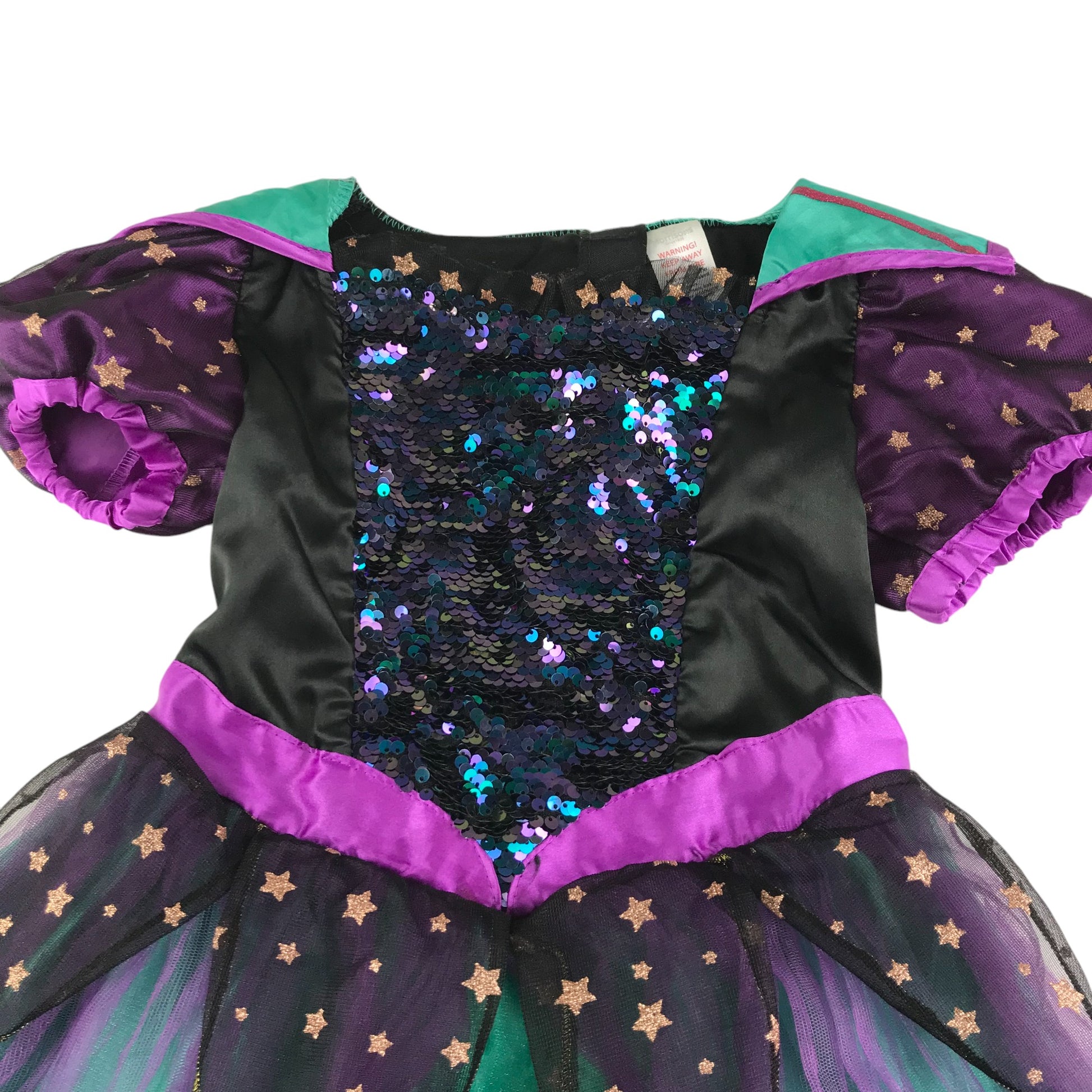 Morrisons costume dress 5-6 years black turquoise and purple sequin and glitter spooky dress