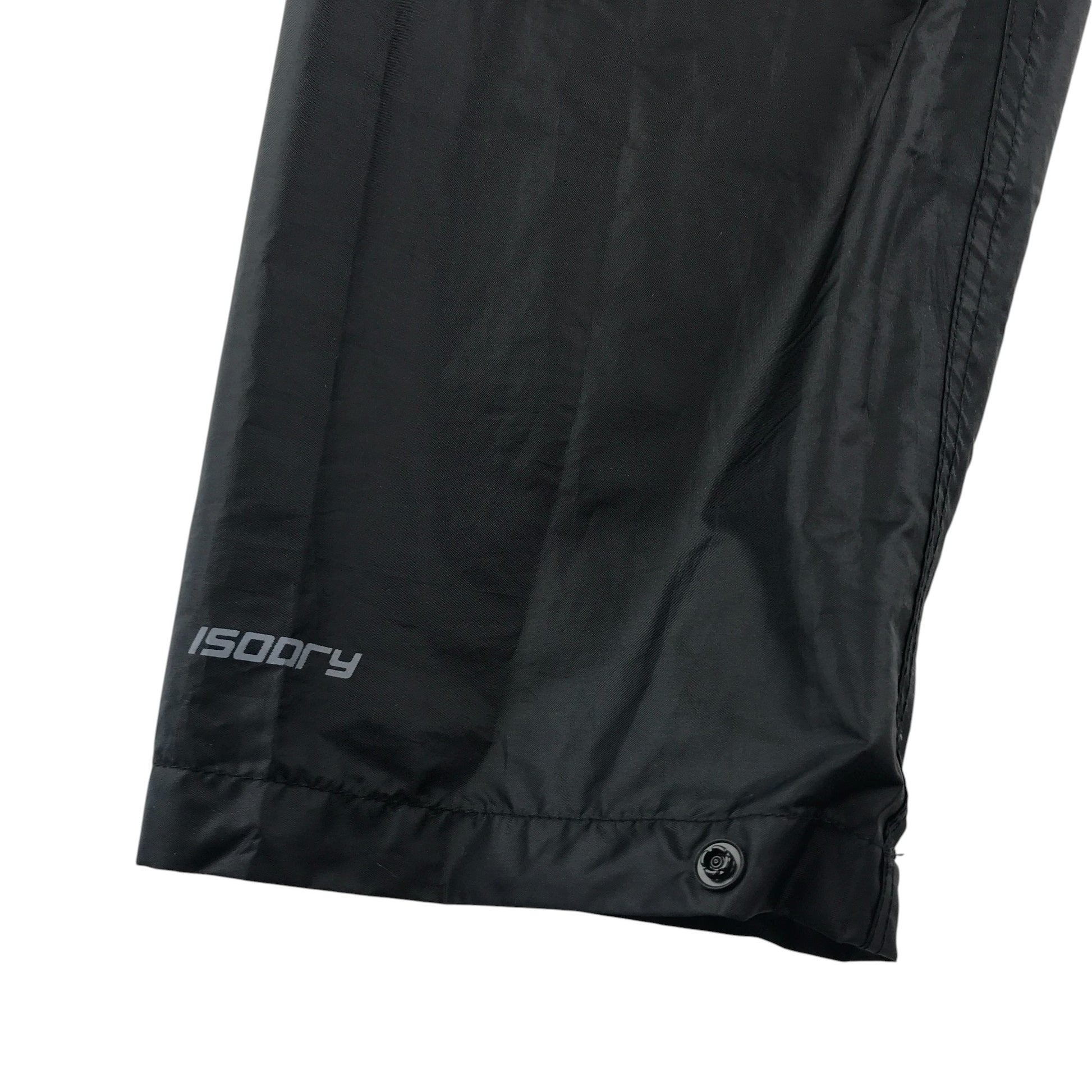 - Description: Black thin lightweight waterproof trousers with elasticated waist and taped seams button adjustable leg at ankles