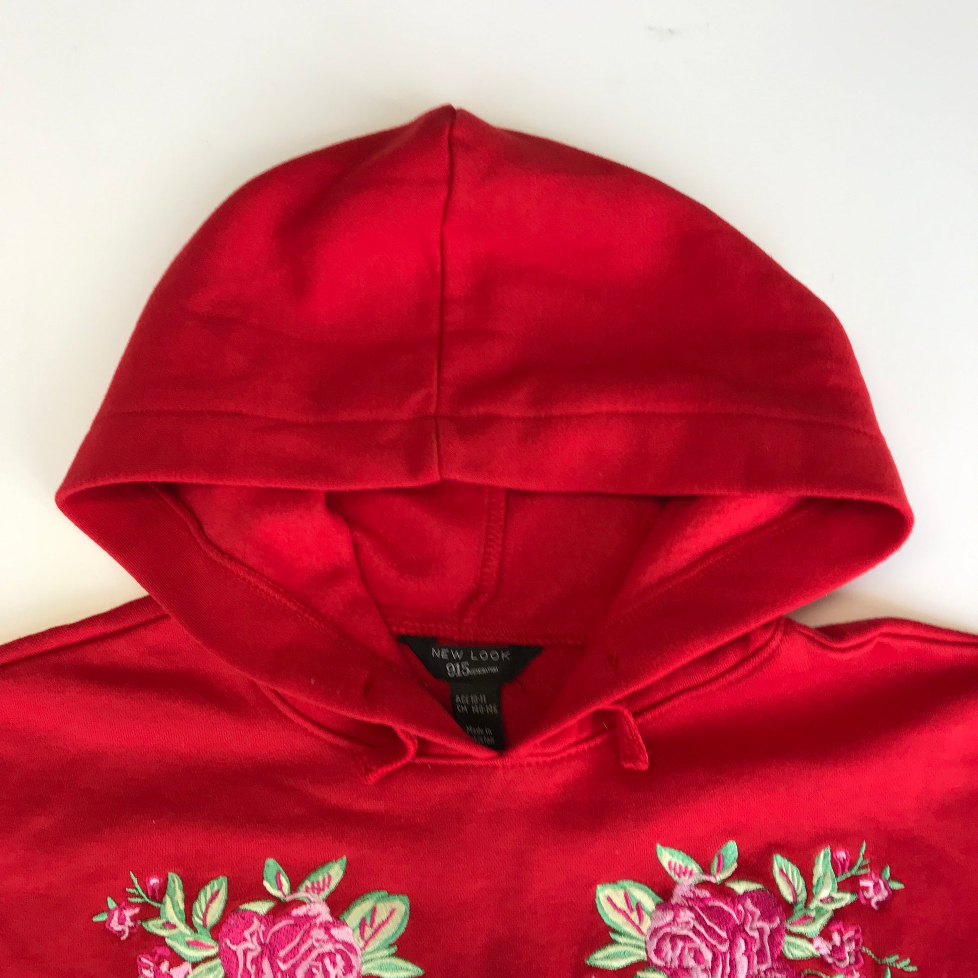Preloved second hand New Look Red Cropped Print Hoodie Age 10