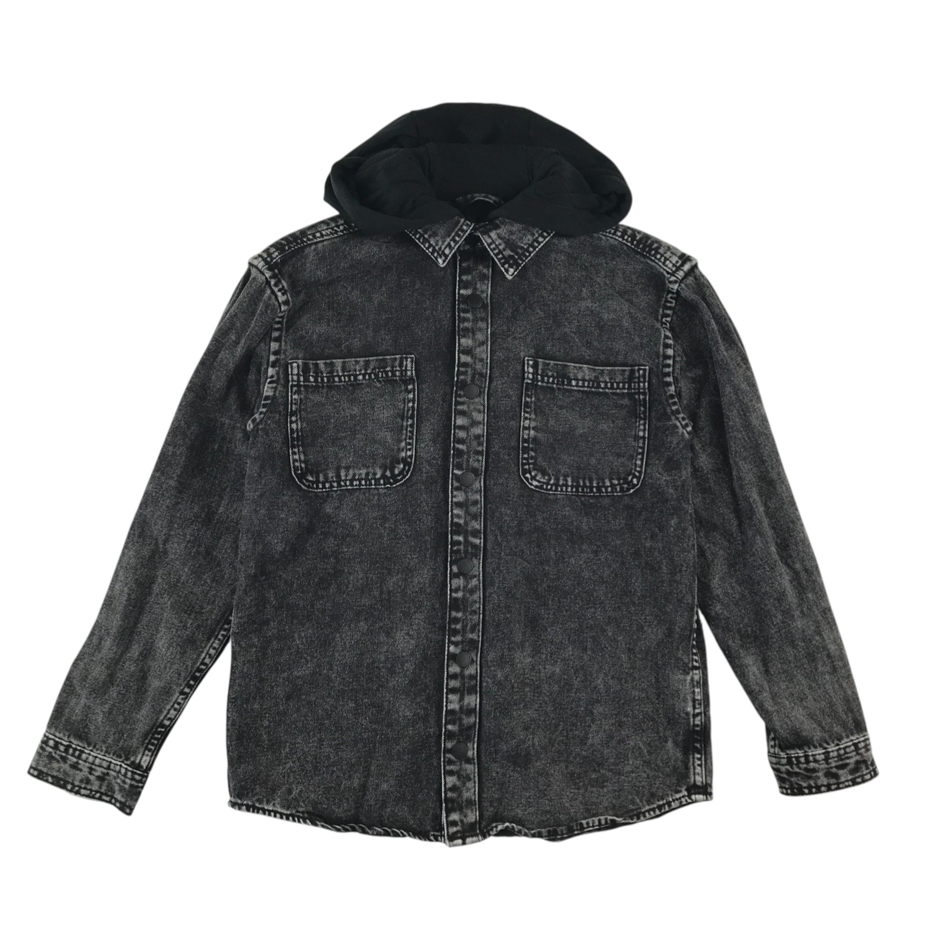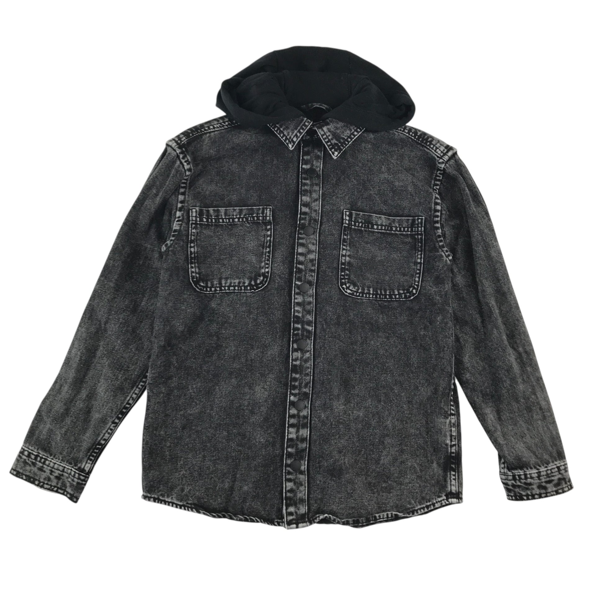 Preloved second hand Next denim jacket 10-11 years black long sleeve with hood cotton