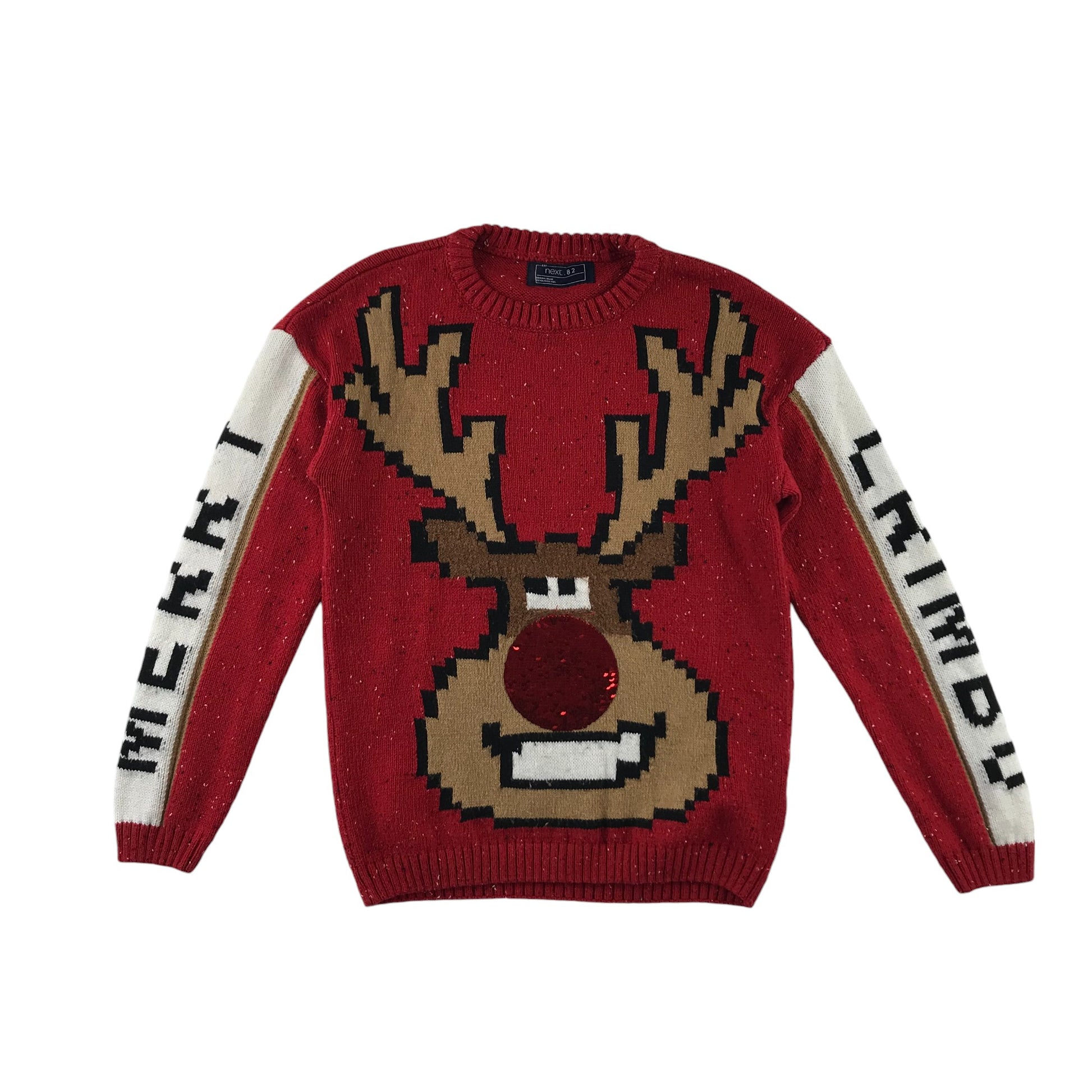 Preloved second hand Next Festive Jumper 7-8 Years Red Rudolph Graphic with Sequin Red Noise
