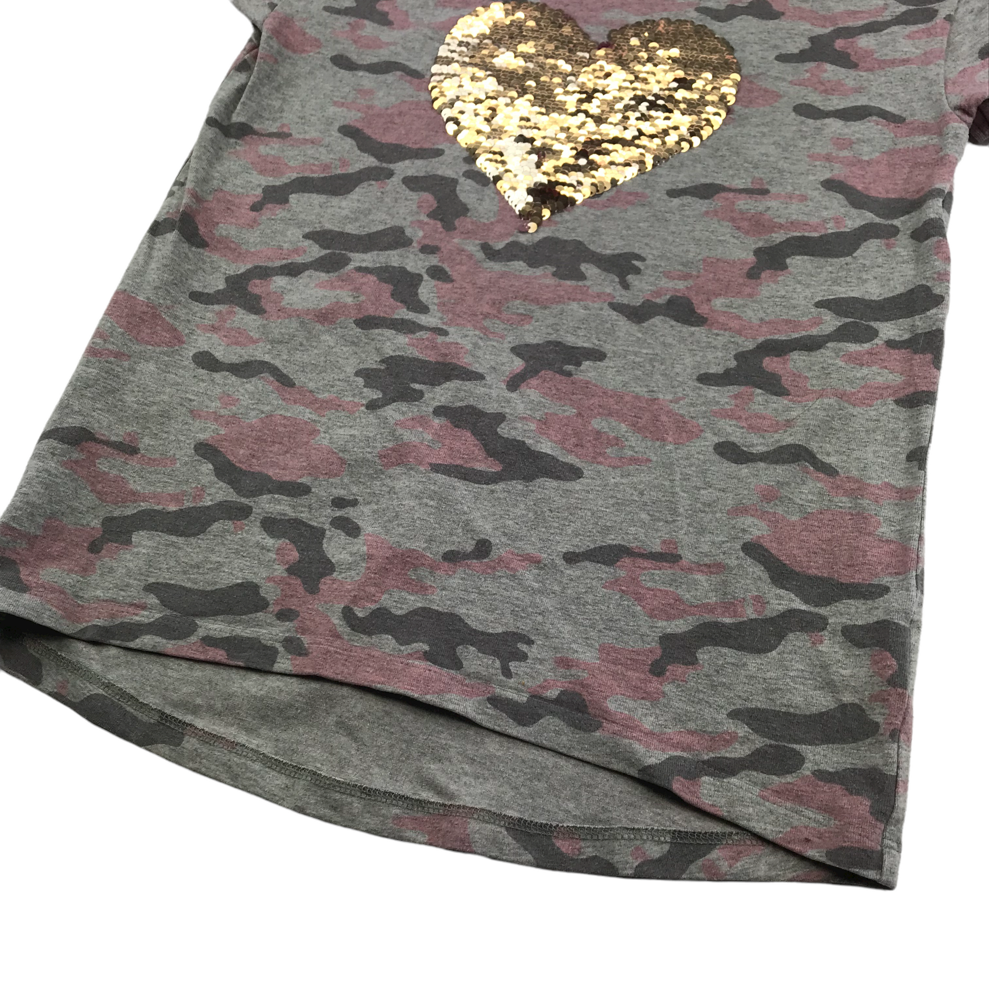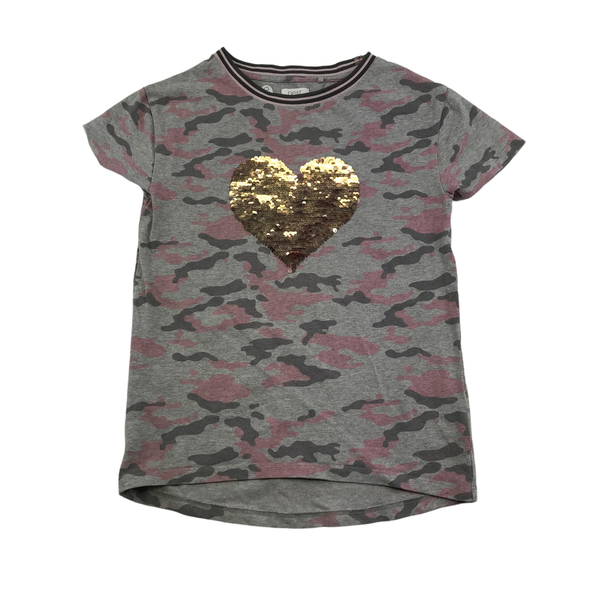 Next Grey Camo Sequin Reverse Love Heart T-shirt Age 8