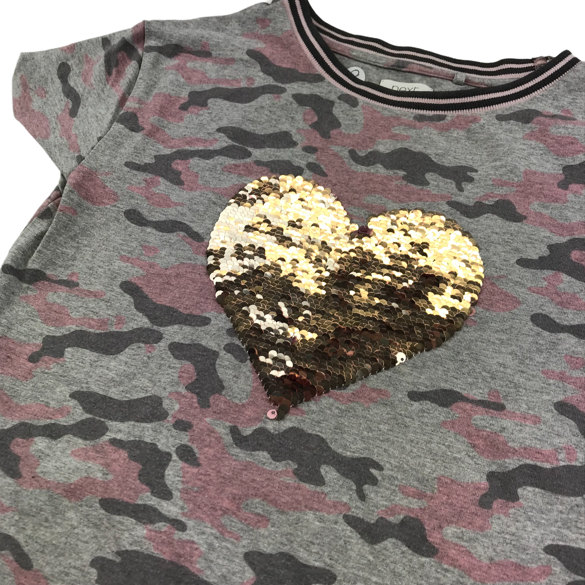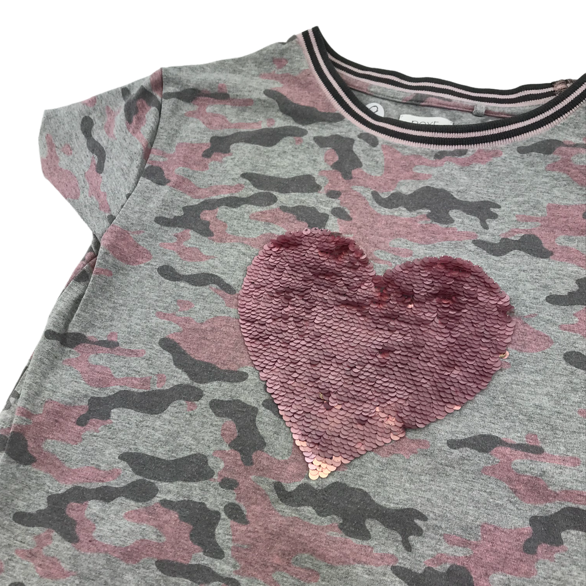 Preloved second hand Next Grey Camo Sequin Reverse Love Heart T-shirt Age 8